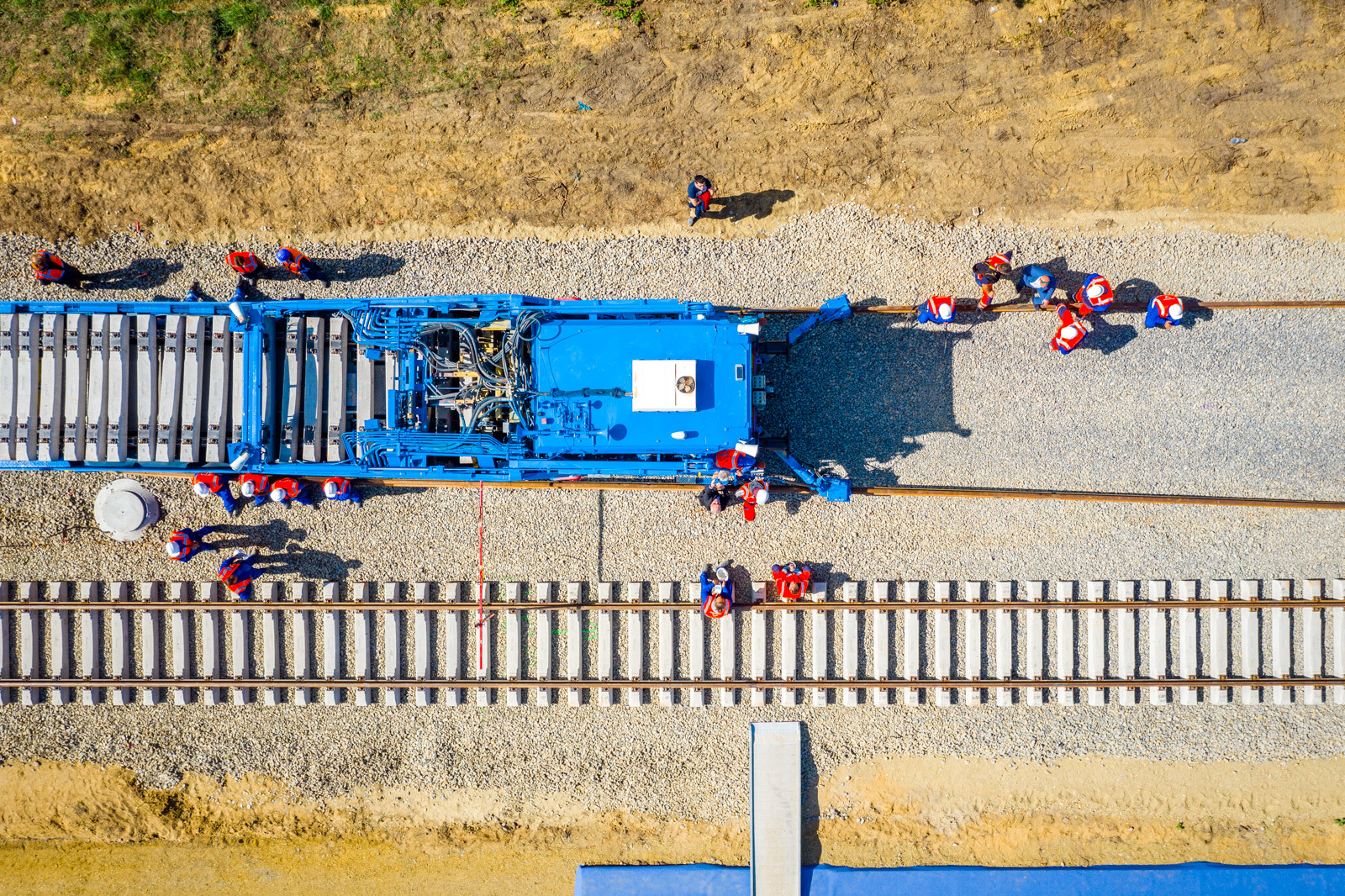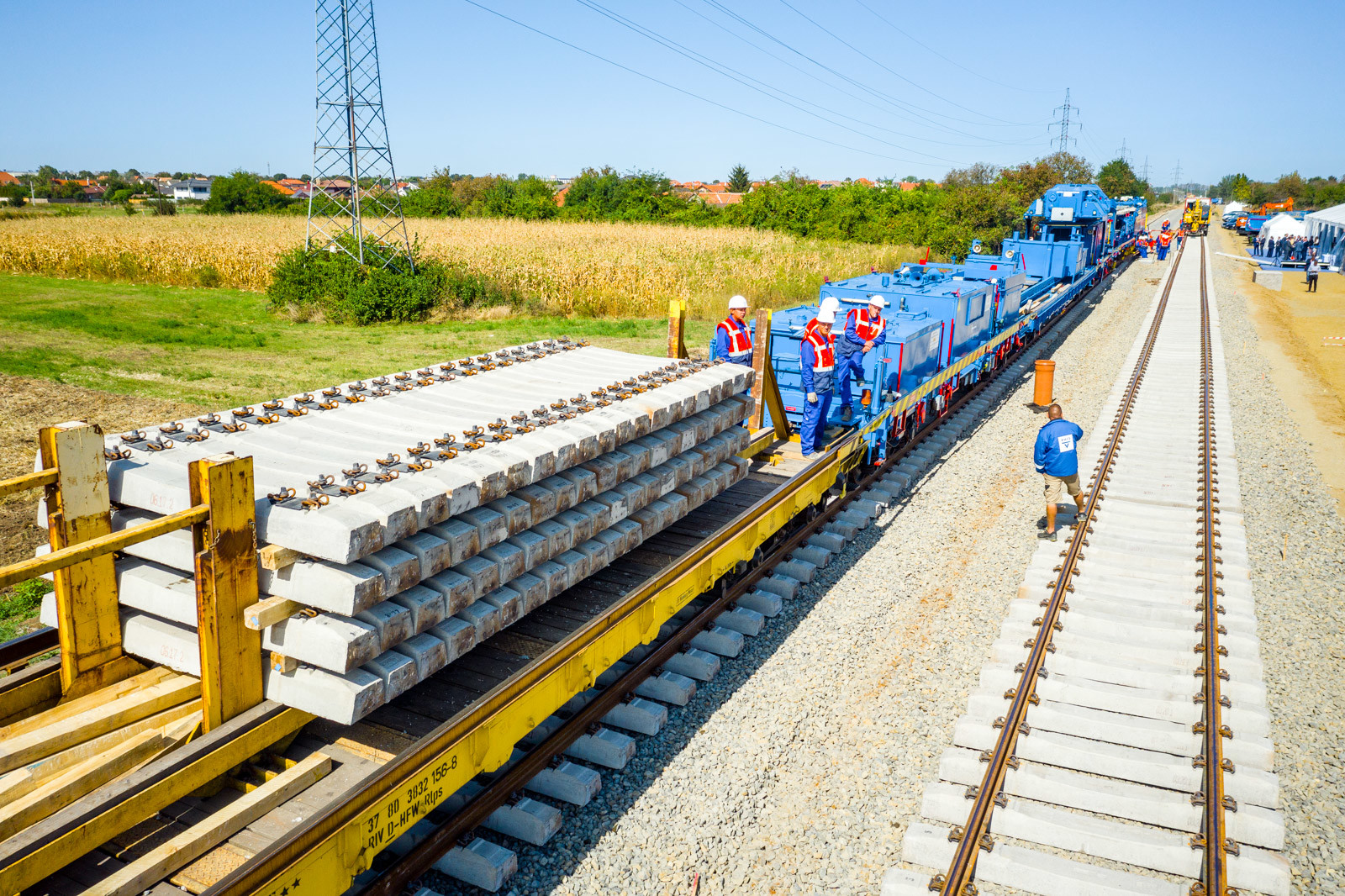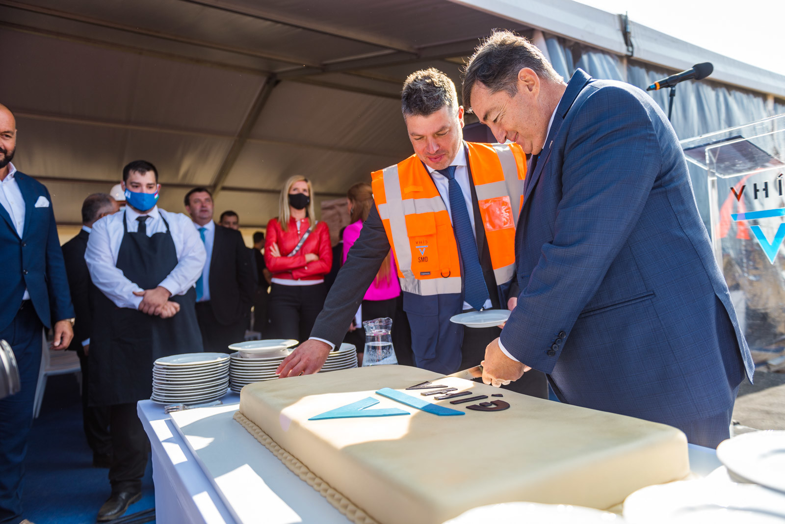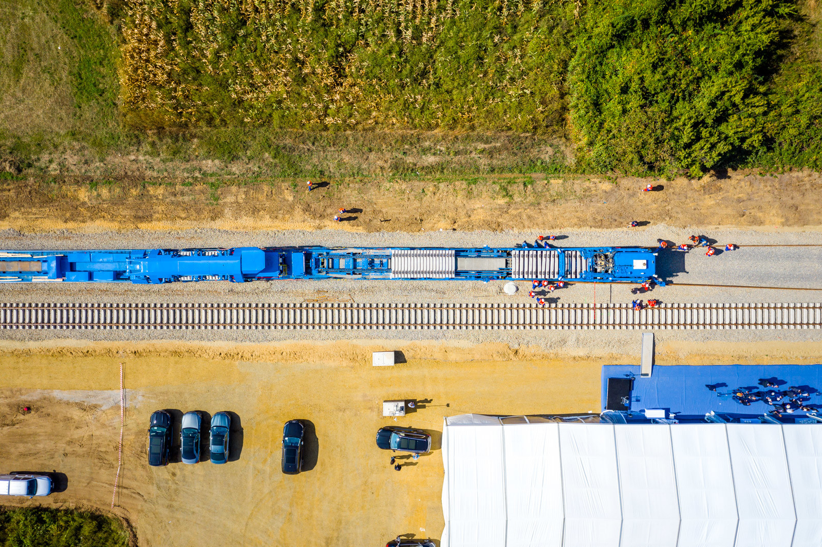 Az ünnepséget közvetlenül a vasúti vágányok mellett tartották meg, ahol működés közben is bemutatták a V-Híd által megvásárolt, SMD-80/UVP 2002-es vágányépítő és -átépítő gépláncot. A több elemből álló szerkezet beszerzésével a vasúti munkák teljes vertikumát el tudja látni immár a V-Híd, a magyar fejlesztések megvalósításához nem lesz szükséges külföldi tulajdonú kapacitások lekötésére.