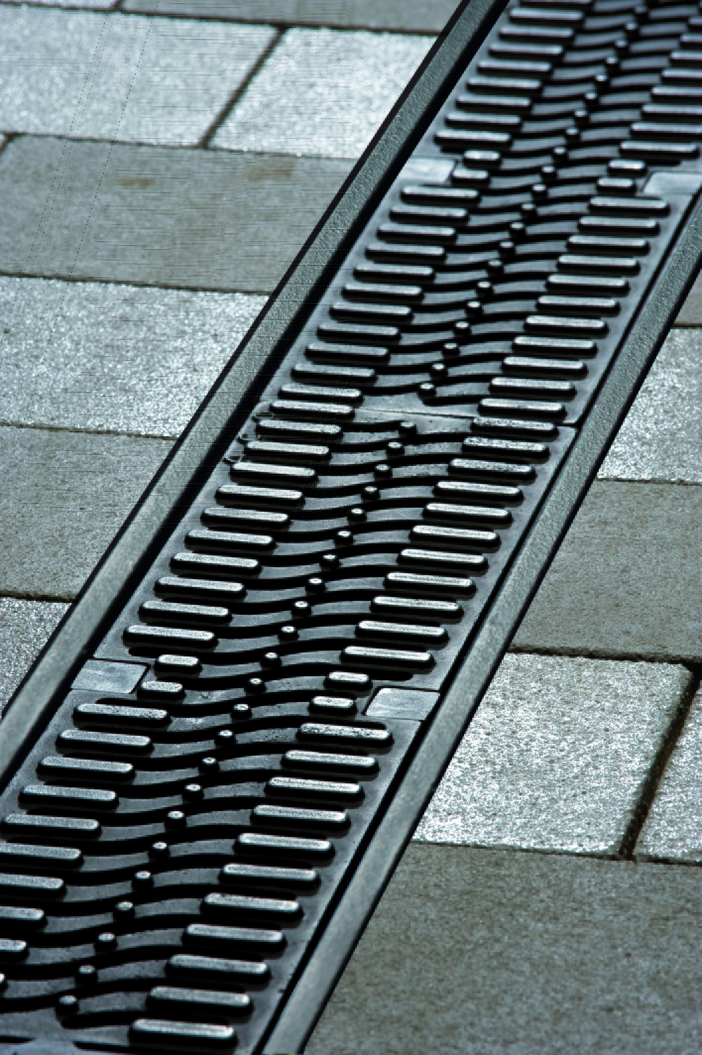 A rácsok mintázatának köszönhetően a vízelvezetési rendszer a környezettel teljes összhangba hozható.