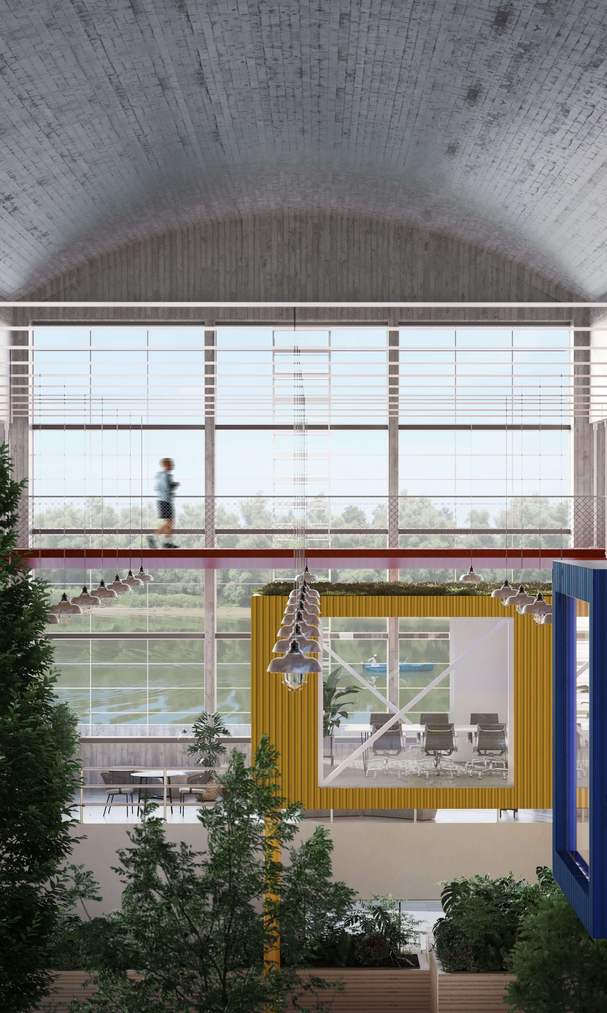 A csarnok melletti hatszintes irodaépület tervei kapcsán pedig a bírálók hangsúlyozták, hogy műemléki szempontból a legelegánsabb megoldás született, a nyertes elképzelés minden korábbi építészeti értéket megtart, illetve újat is tesz hozzá. Itt alakítják ki a menzát, ami a park felől is megközelíthető lesz.