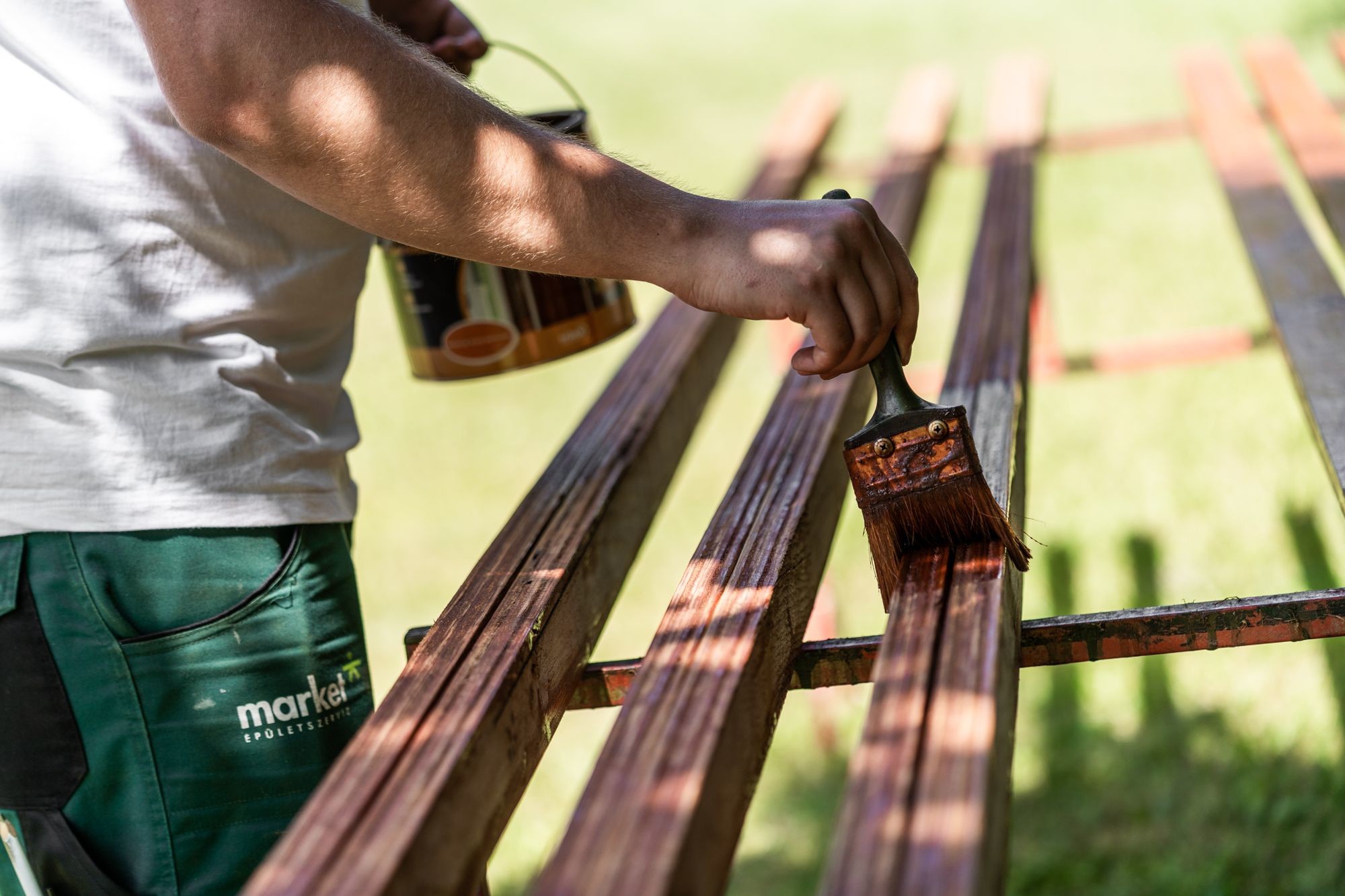 A stratégiai partnerség I. ütemének látványos munkavégzései a napokban kezdődtek meg a táborhelyen található épületek fafelületeinek csiszolásával, mázolásával, valamint a menthetetlen állágú elemek komplex cseréjével.
