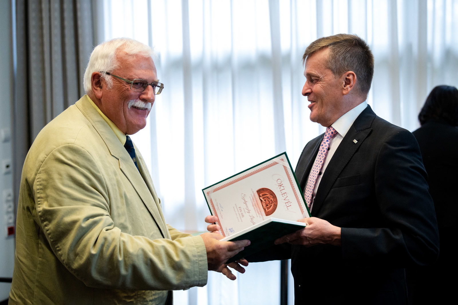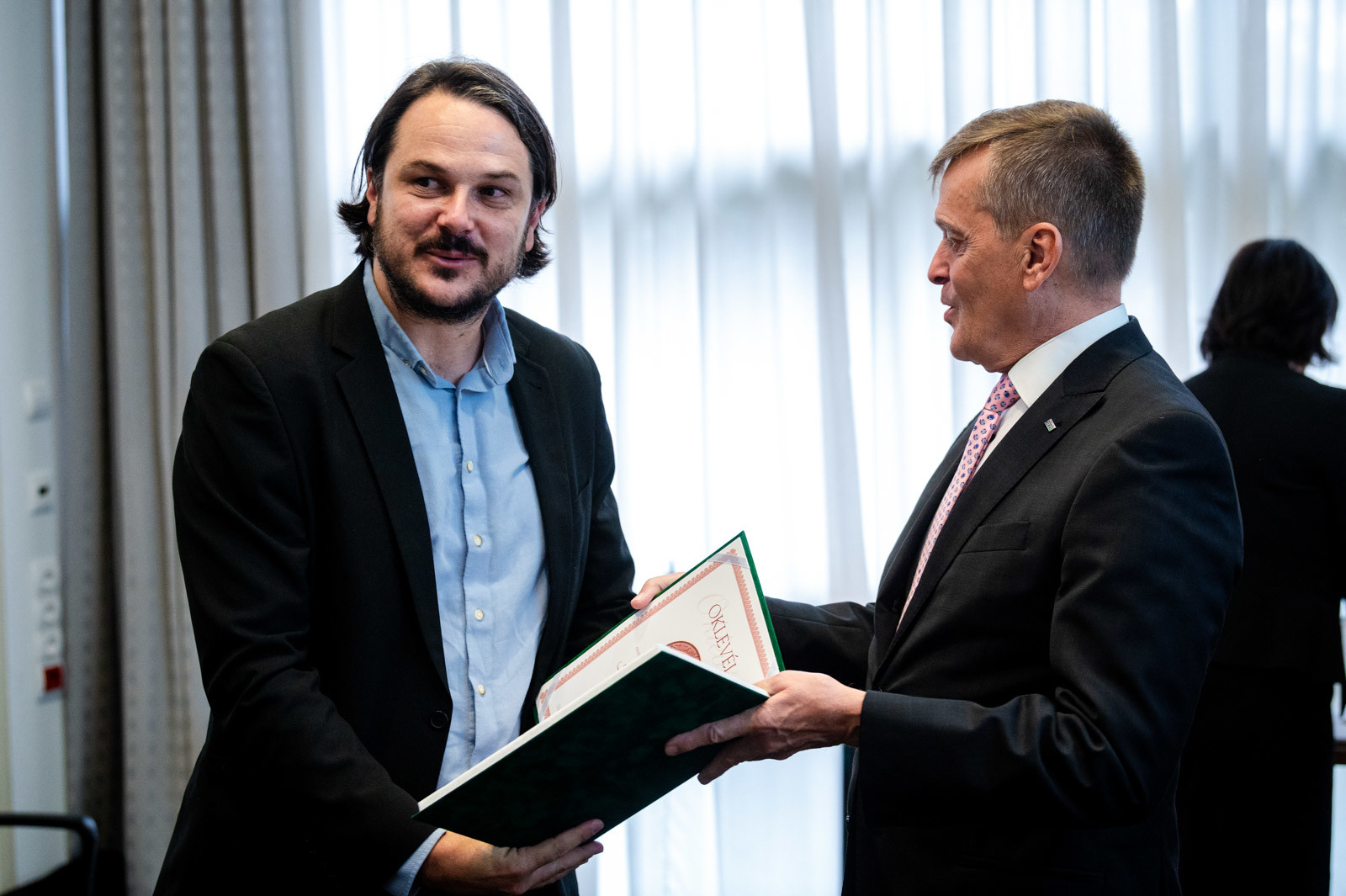 Dr. Palkovics László, innovációs és technológiai miniszter nevében Gyutai Csaba miniszteri elismerő oklevelet adott át: