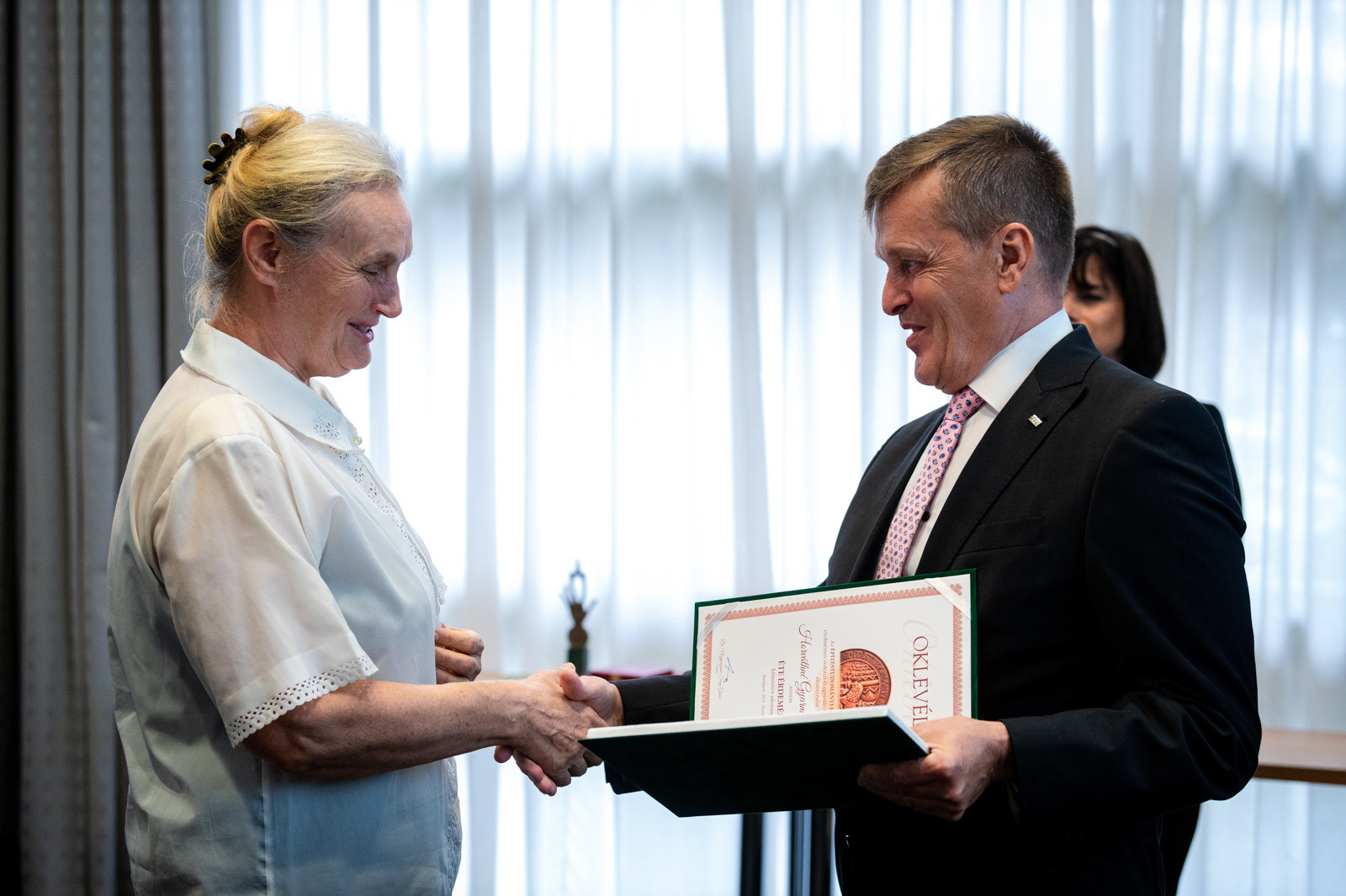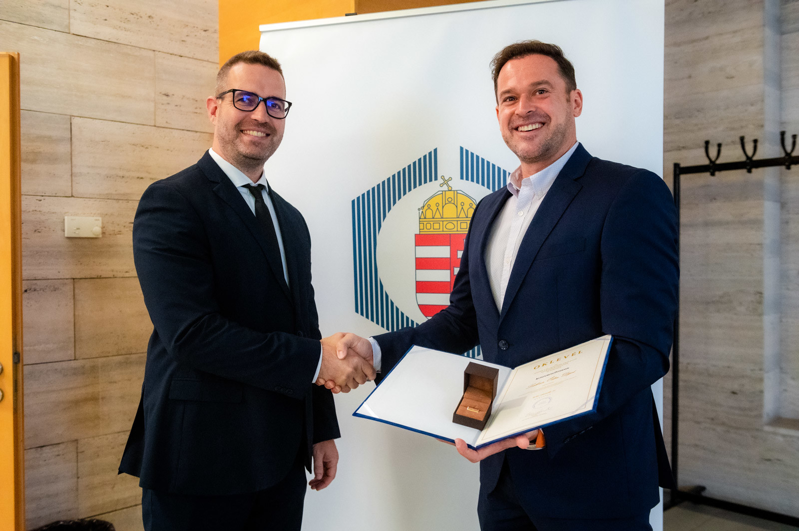 Dr. Pintér Sándor, Magyarország belügyminisztere nevében elismerő oklevelet adományoztak: