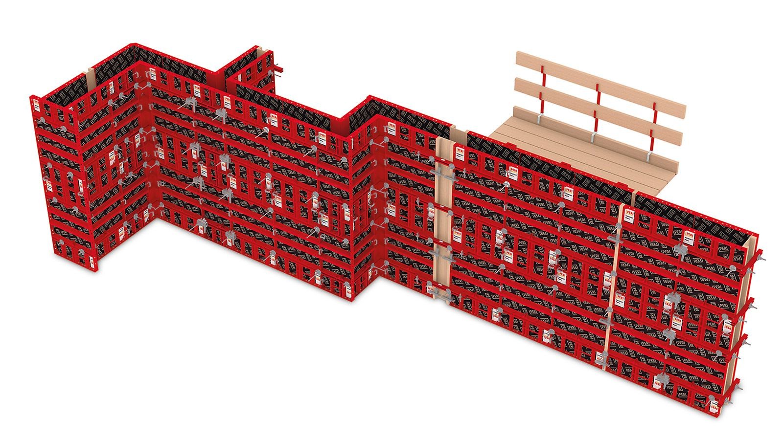 Az 5 centiméteres távolságra kiosztott átkötési lyukakkal rendelkező variálható panelek rugalmasan alkalmazhatóak, a helyszínen tartandó anyagmennyiséget és kihasználtságot könnyű optimalizálni. A faltámasz kapcsolókat és fogási pontokat beépítették a zsaluba, így még attól sem kell tartani, hogy elvesznek ezek az alkatrészek.