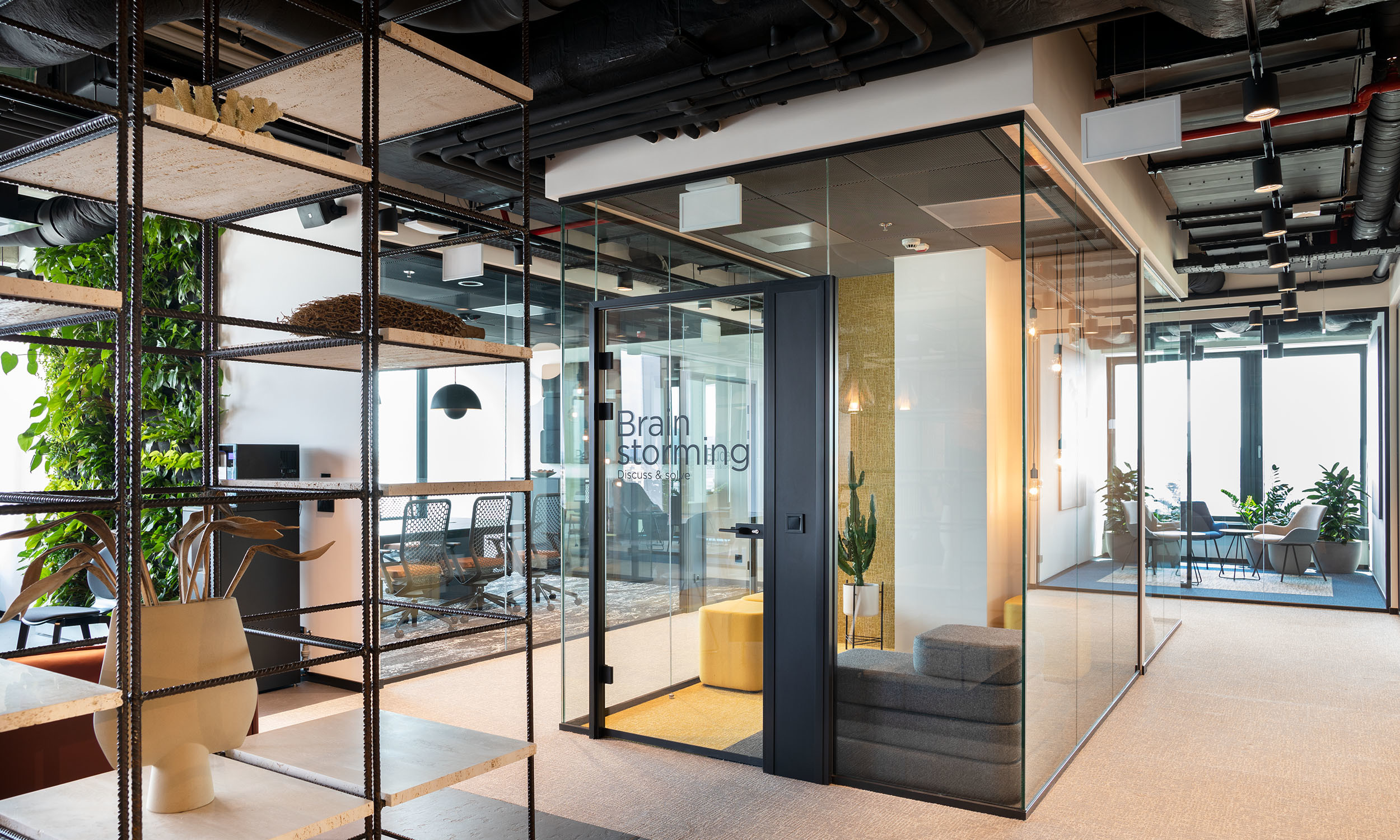 „Egy irodaterület elrendezésekor gyakran szembesülünk azzal a dilemmával hogyan lehet a funkcionalitást és a designt egyensúlyba hozni úgy, hogy közben az iroda izgalmas, figyelemfelkeltő legyen, és maradandó benyomást alakítson ki a cégedről” – mondta el Marcin Magier, a budapesti bemutatóterem belsőépítészeti koncepciójának megalkotója, a Nowy Styl tervezője és fit-out mérnöke.