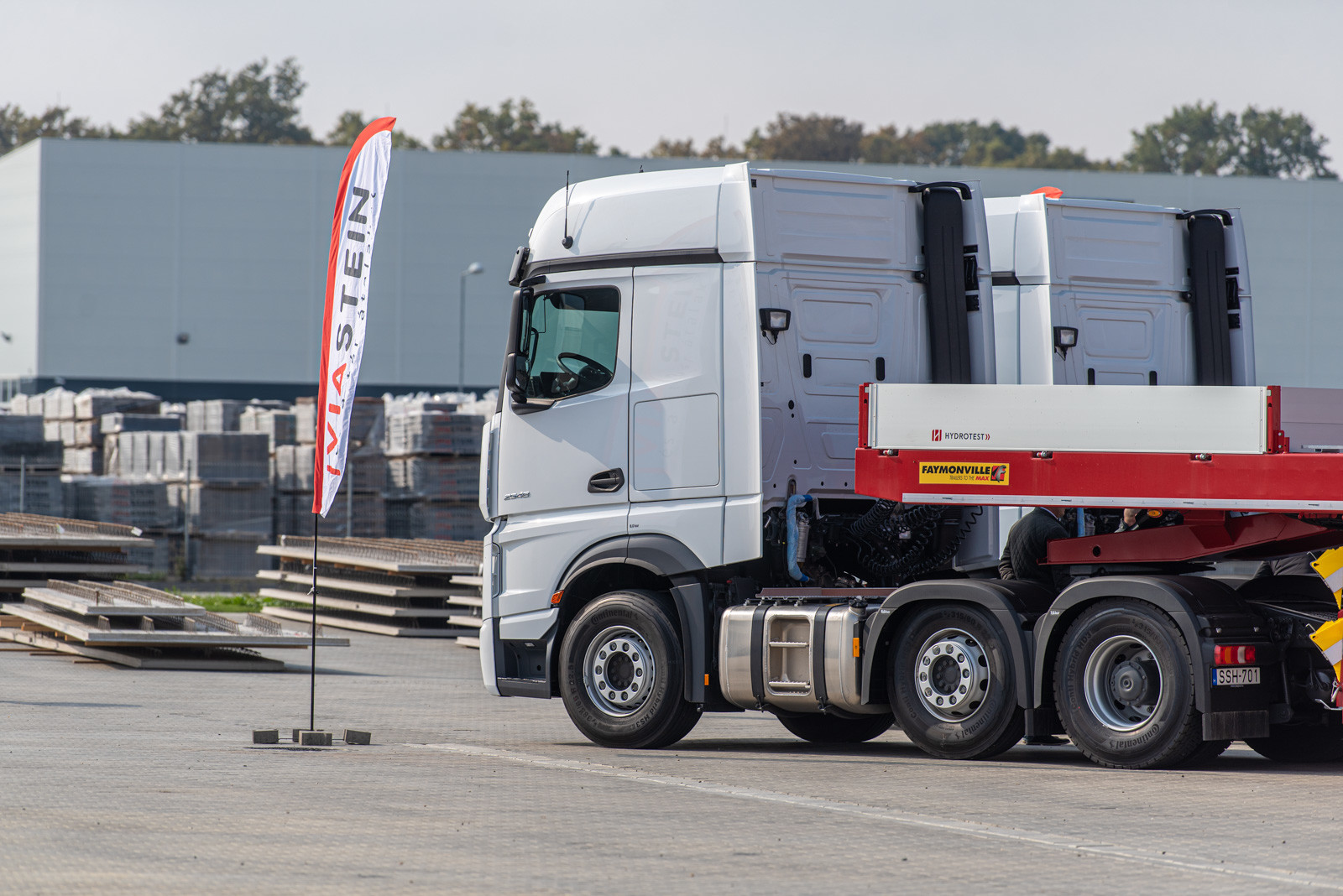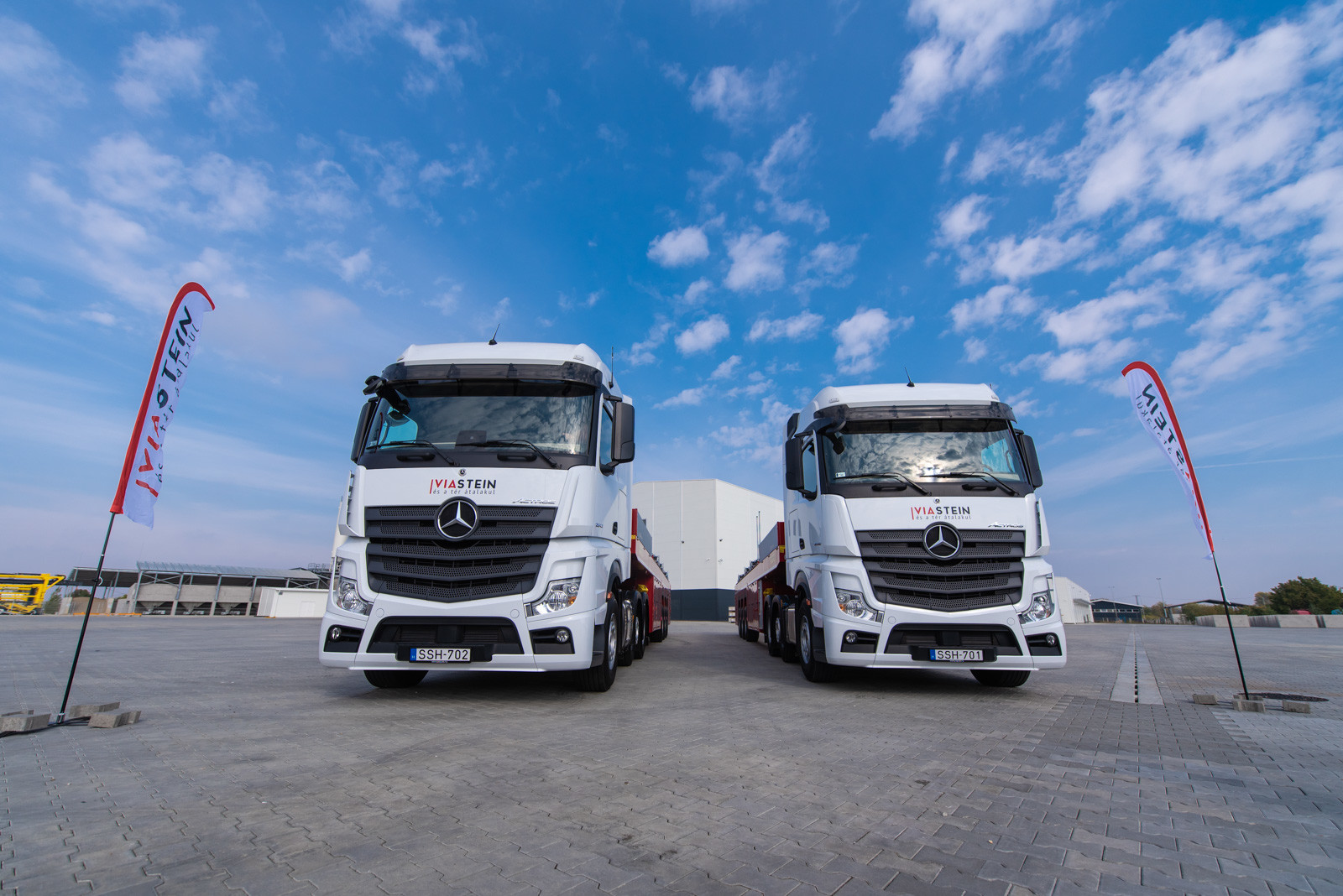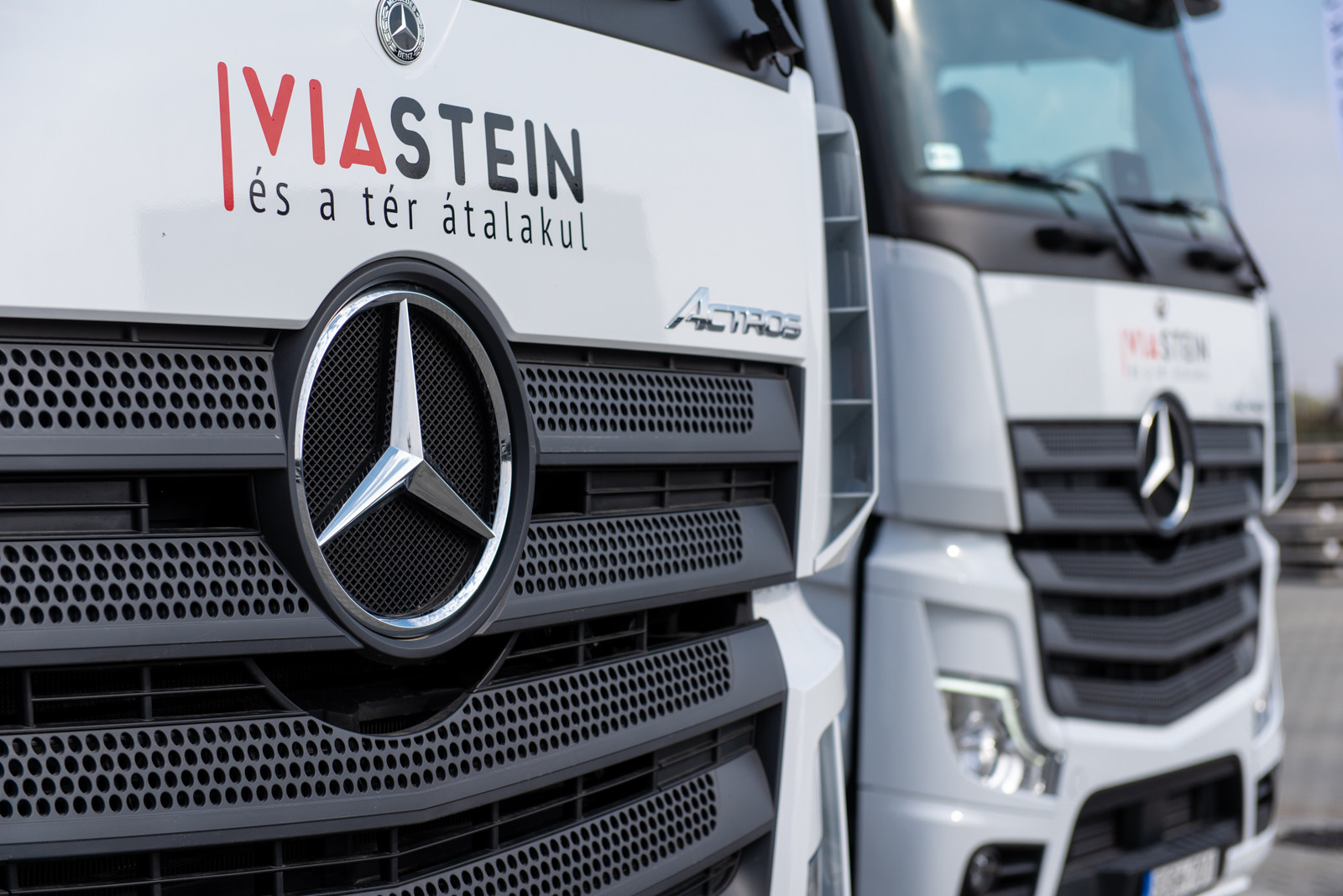 A Viastein Kft. nagy méretű termékei kiszállításához a Mercedes-Benz extra paraméterekkel bíró járműveit alkalmazza.