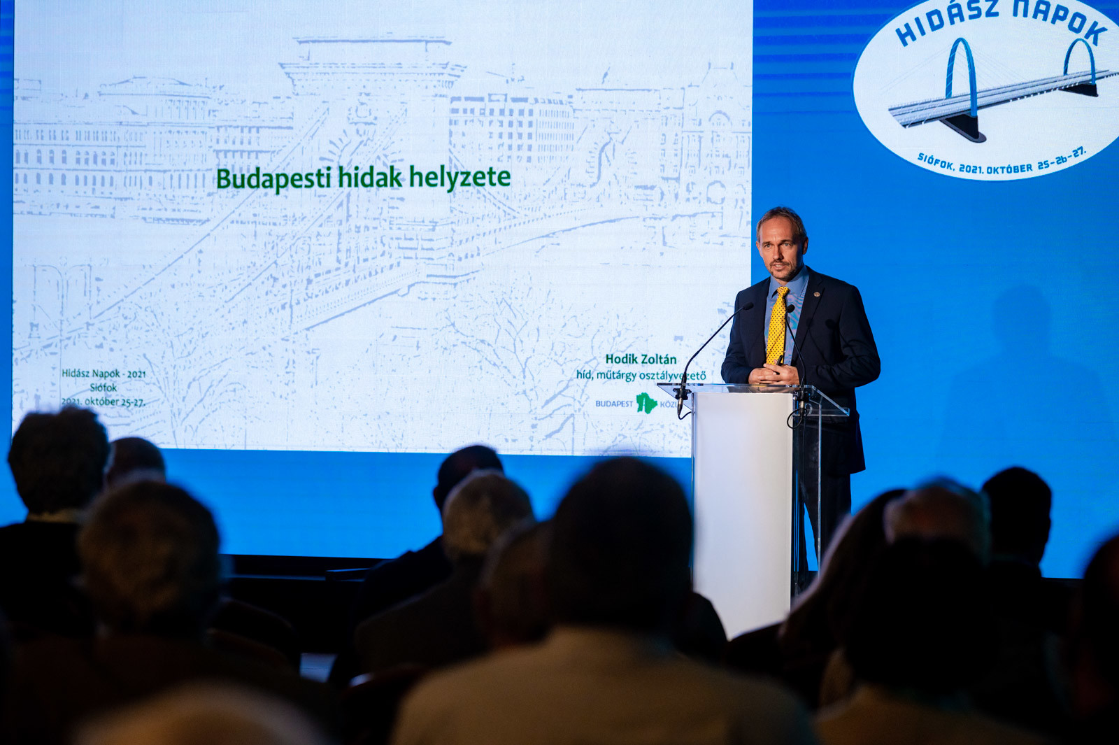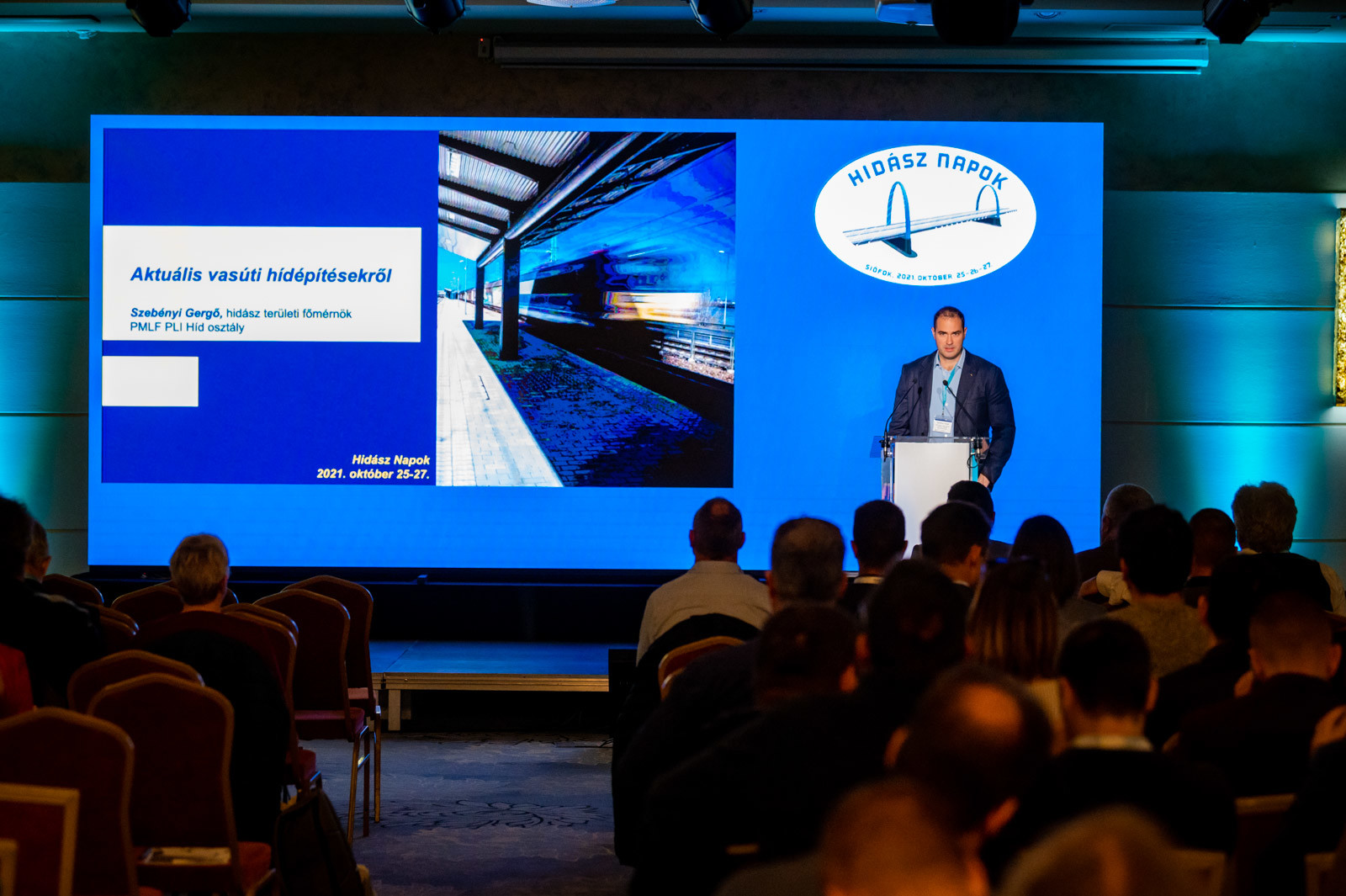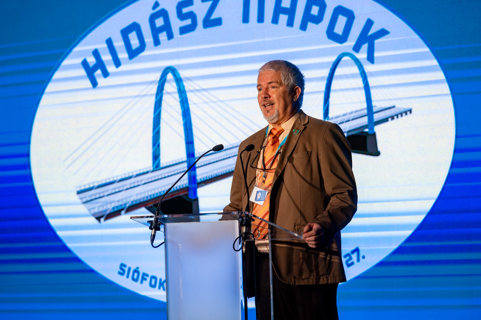 A konferencia első előadója Nyul Zoltán, a NIF Zrt. beruházási vezérigazgató-helyettese volt, aki a vállalat beruházásában zajló hídépítésekről tartott ismertetőt. Előadásának elején betekintés adott a NIF Zrt. műszaki szervezetének felépítésébe, ahol, mint hangsúlyozta,