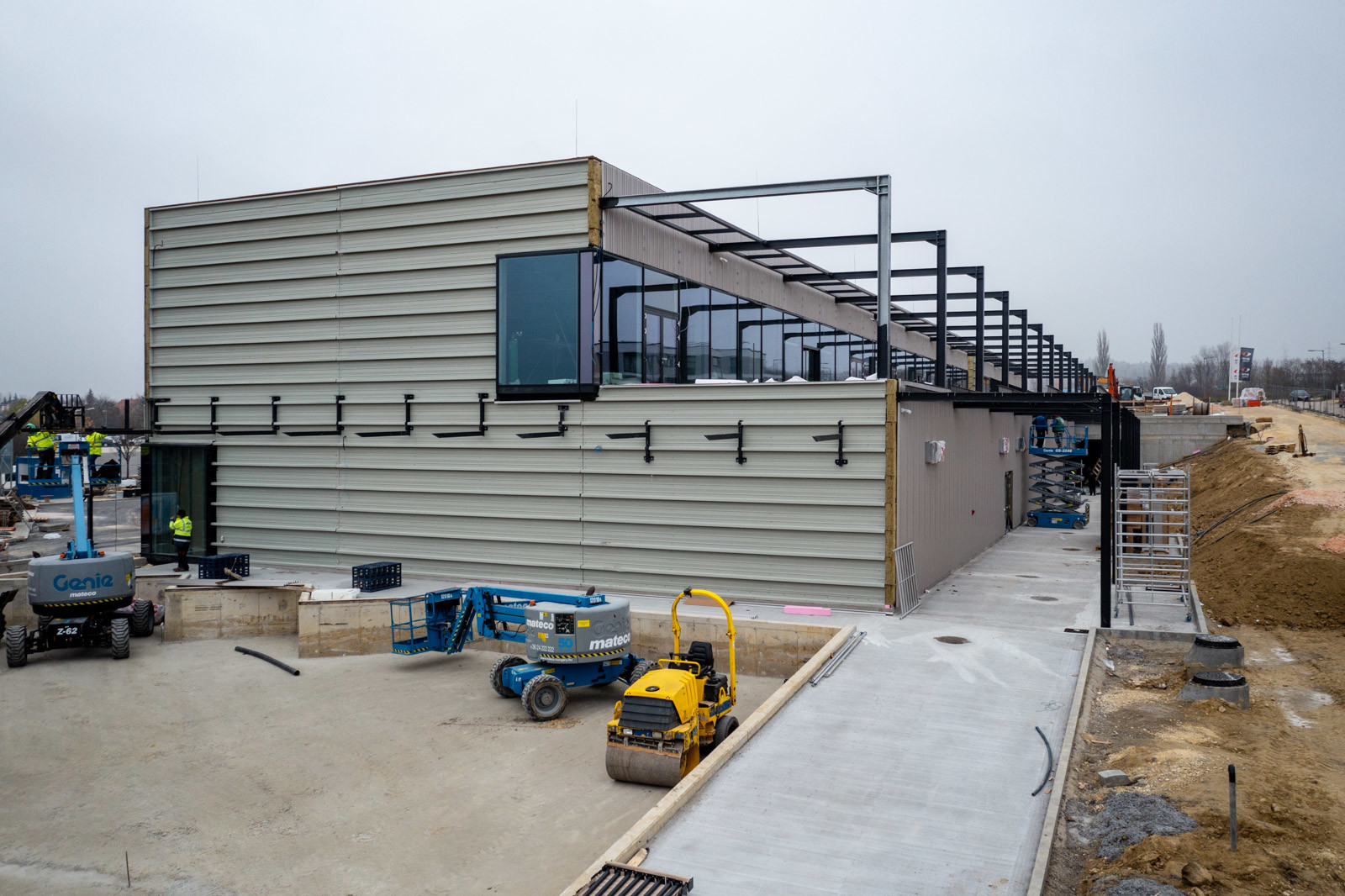 A projekt státuszával kapcsolatban a területi igazgató elmondta, hogy elkészült az előregyártott vasbeton szerkezetek gyártása és összeállítása, és jelenleg az ezekhez a szerkezetekhez kapcsolódó épületrészek kivitelezése zajlik, továbbá előreláthatólag a monolit vasbeton szerkezetek kivitelezése november végére elkészül.