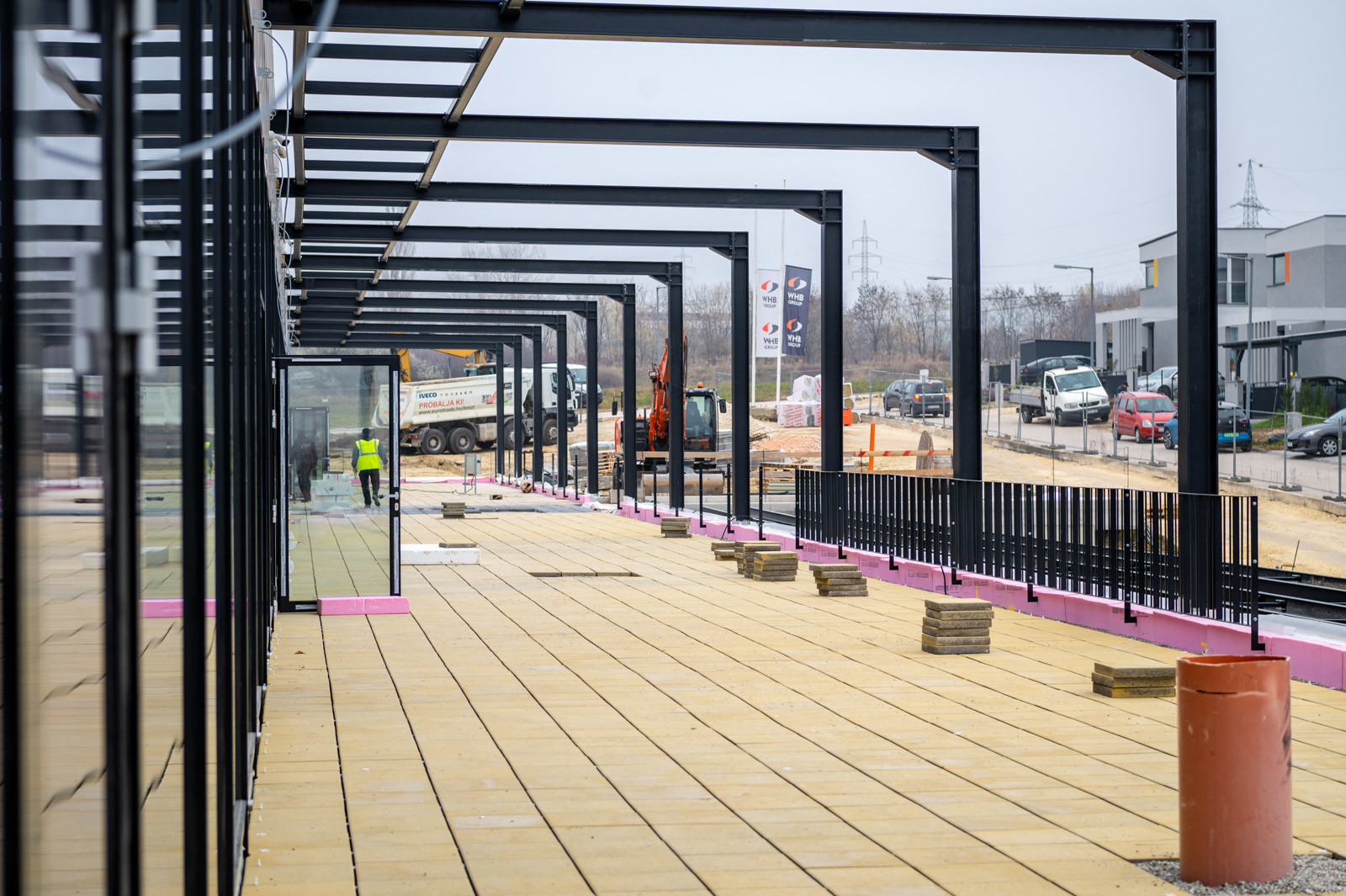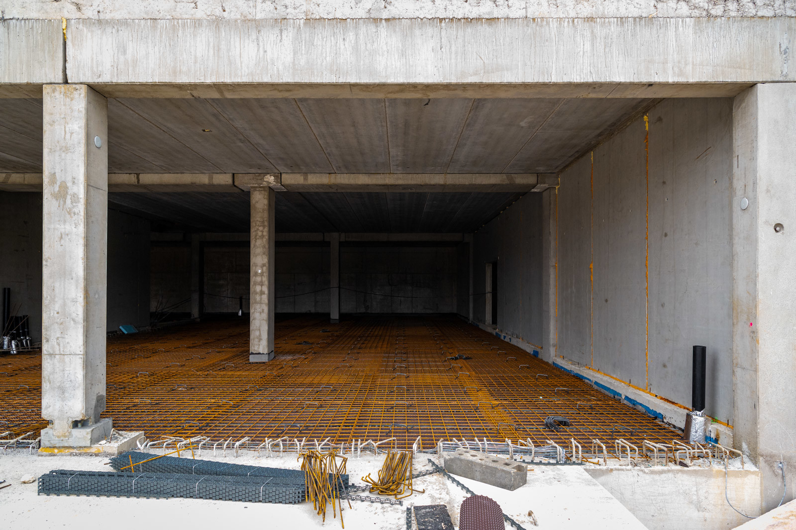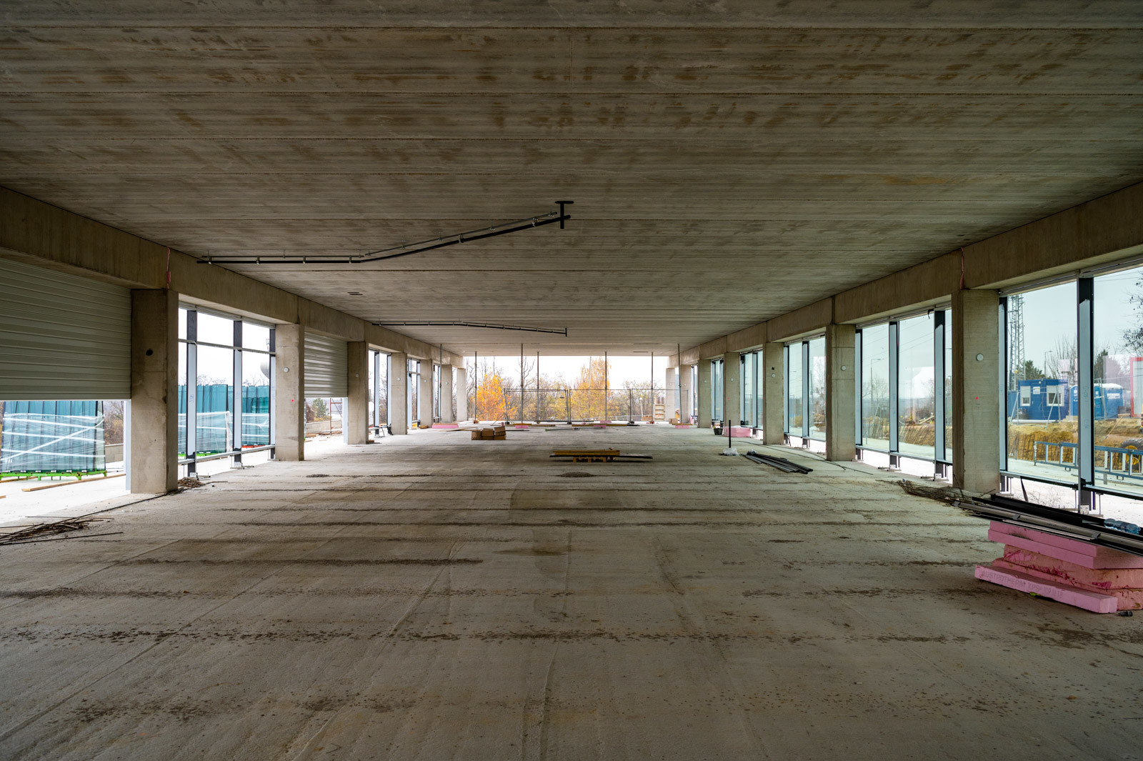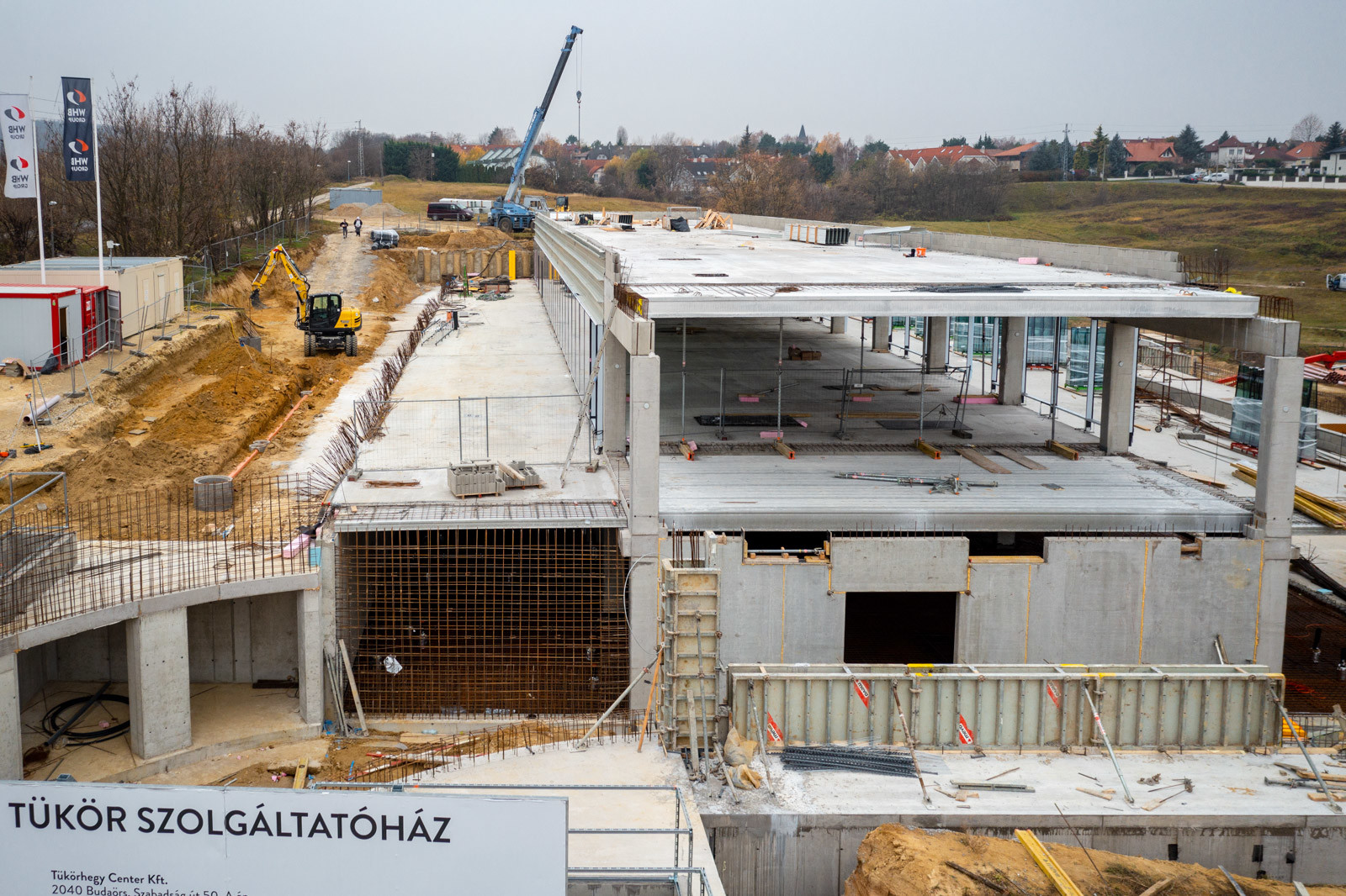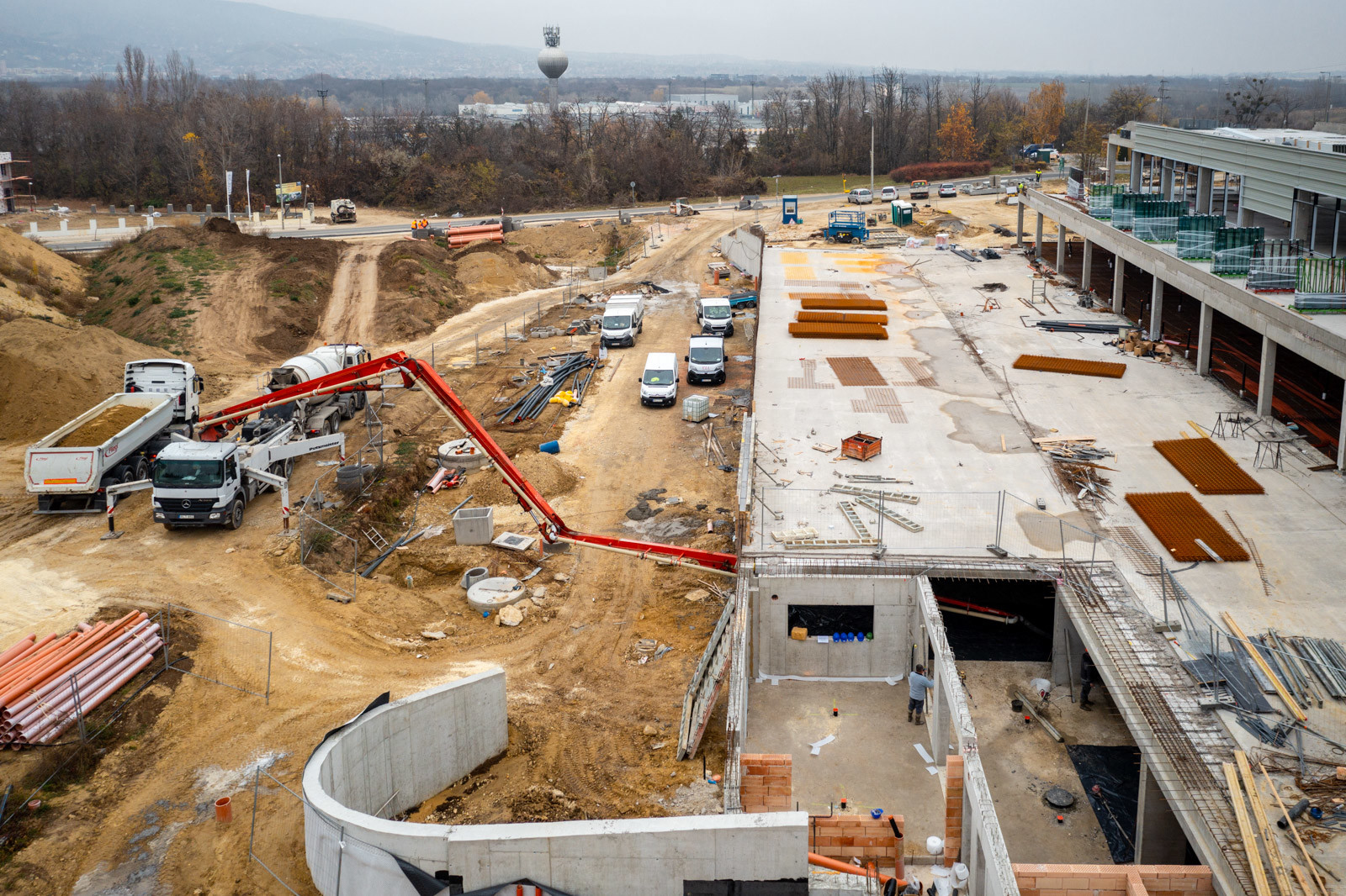 Folyamatosan zajlik a gépész, villamos alapszerelés a földszinti térben. A homlokzat építési és tetőszigetelési munkák október második felében indultak. A projektben egy 143 parkolóból álló kétszintes parkolóházat is kialakítanak.