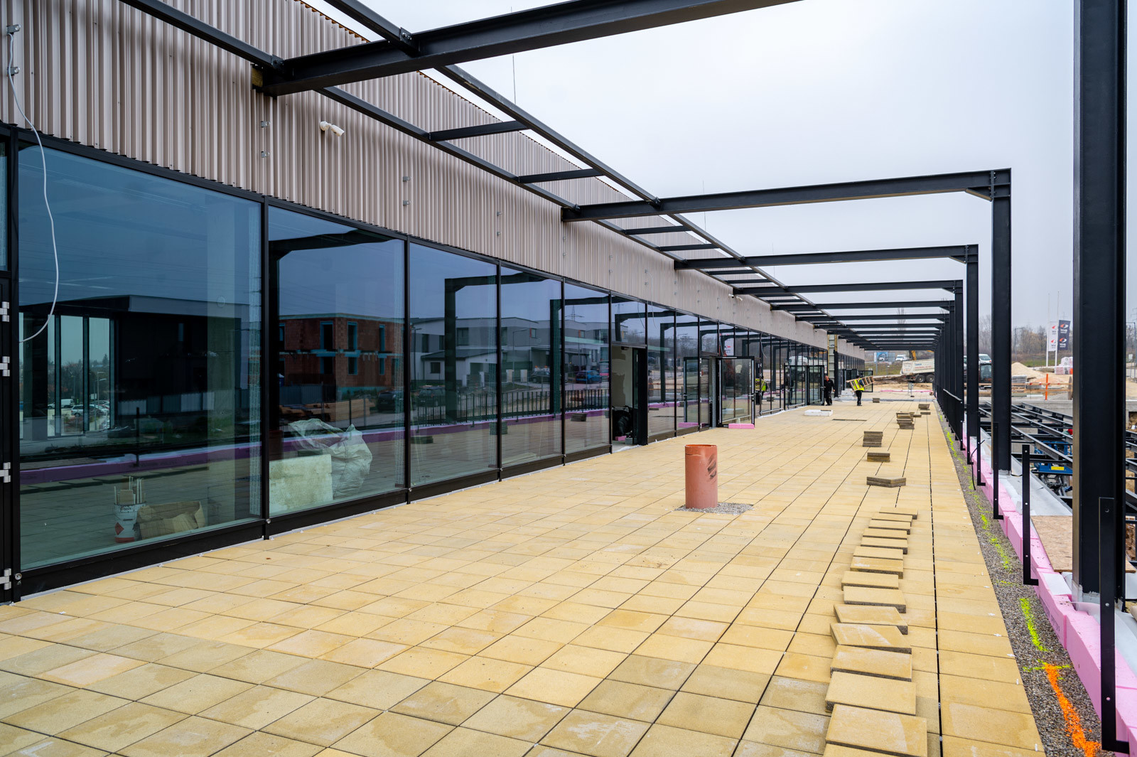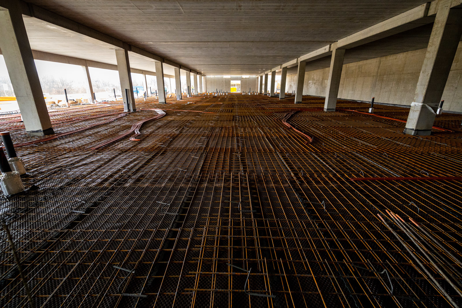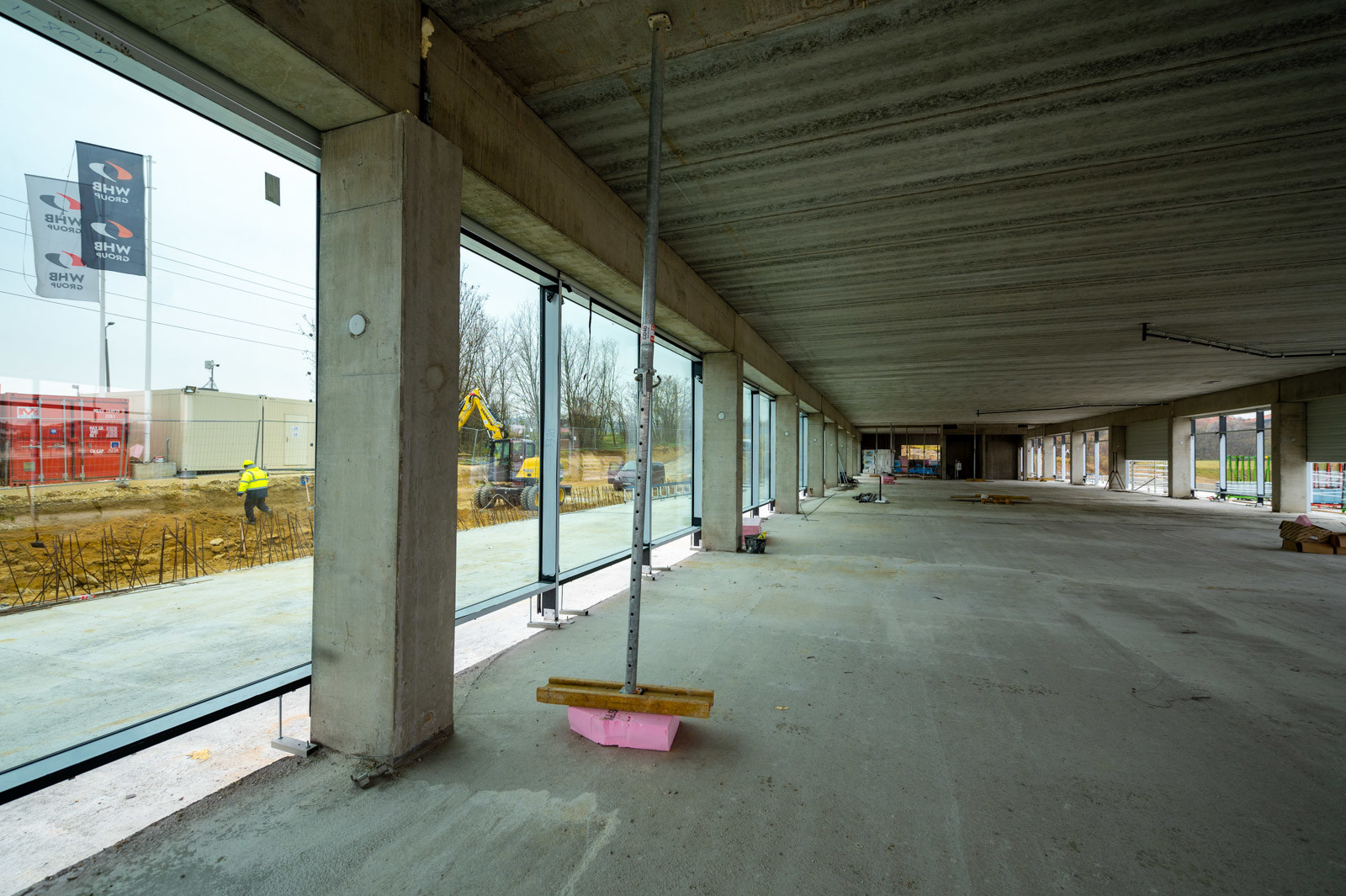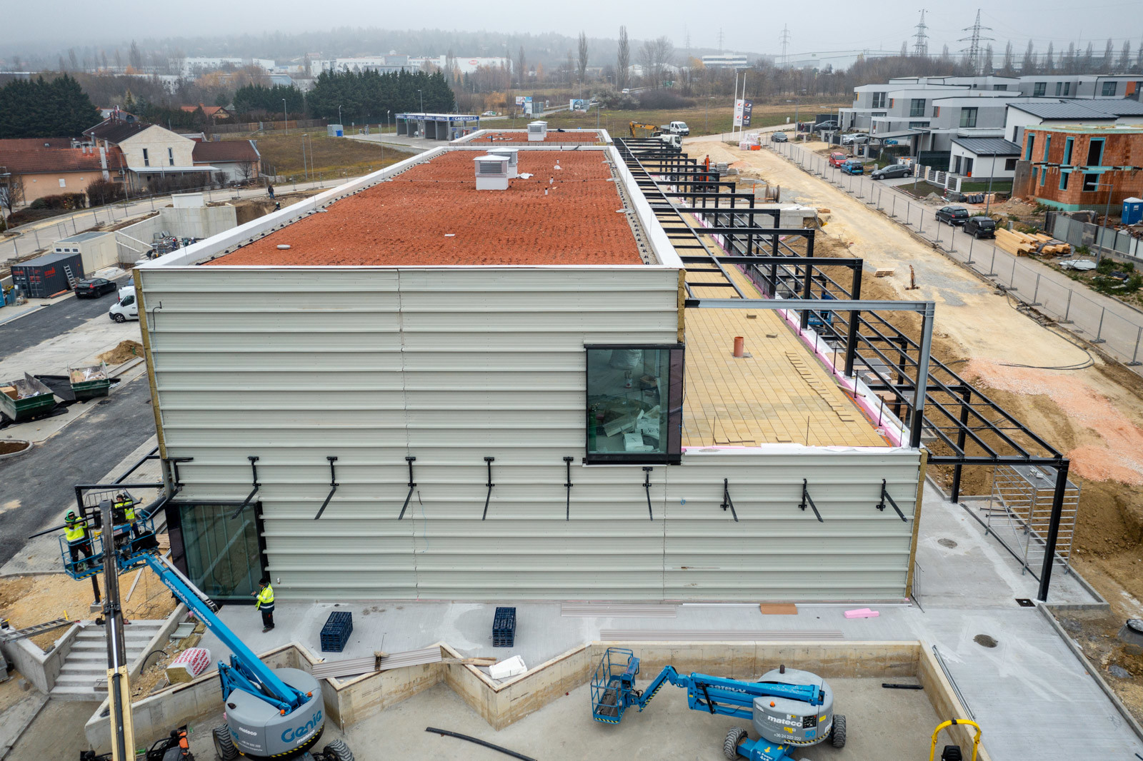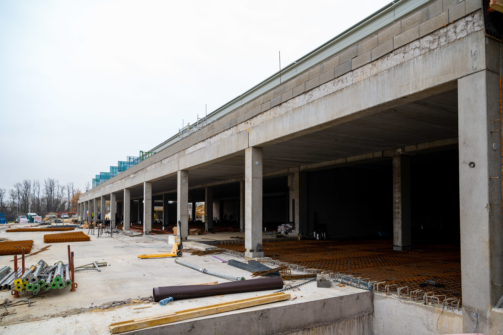 Folyamatosan zajlik a gépész, villamos alapszerelés a földszinti térben. A homlokzat építési és tetőszigetelési munkák október második felében indultak. A projektben egy 143 parkolóból álló kétszintes parkolóházat is kialakítanak.