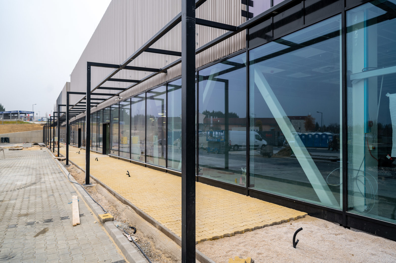 Az interjú készítésénének idején a főépületnél elkészültek a függönyfalak, és folyamatosan dolgoztak a homlokzat burkolásán. A bérlemények kialakítása a gipszkarton válaszfalakkal megtörtént, ezzel párhuzamosan folytak a belső gépészeti és villamos munkák, valamint a lift szerelése. Az üzlethelyiségek belső kialakítását az üzletet profiljának, kialakult arculatának megfelelően a bérlők saját maguk készítik el.