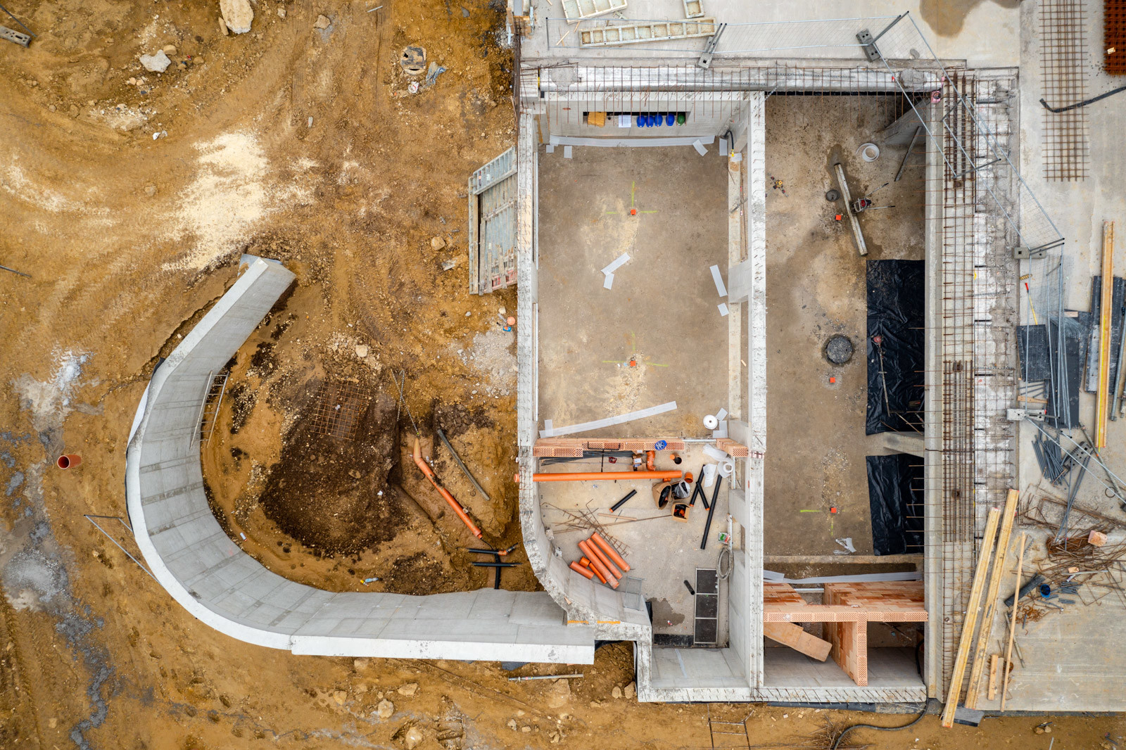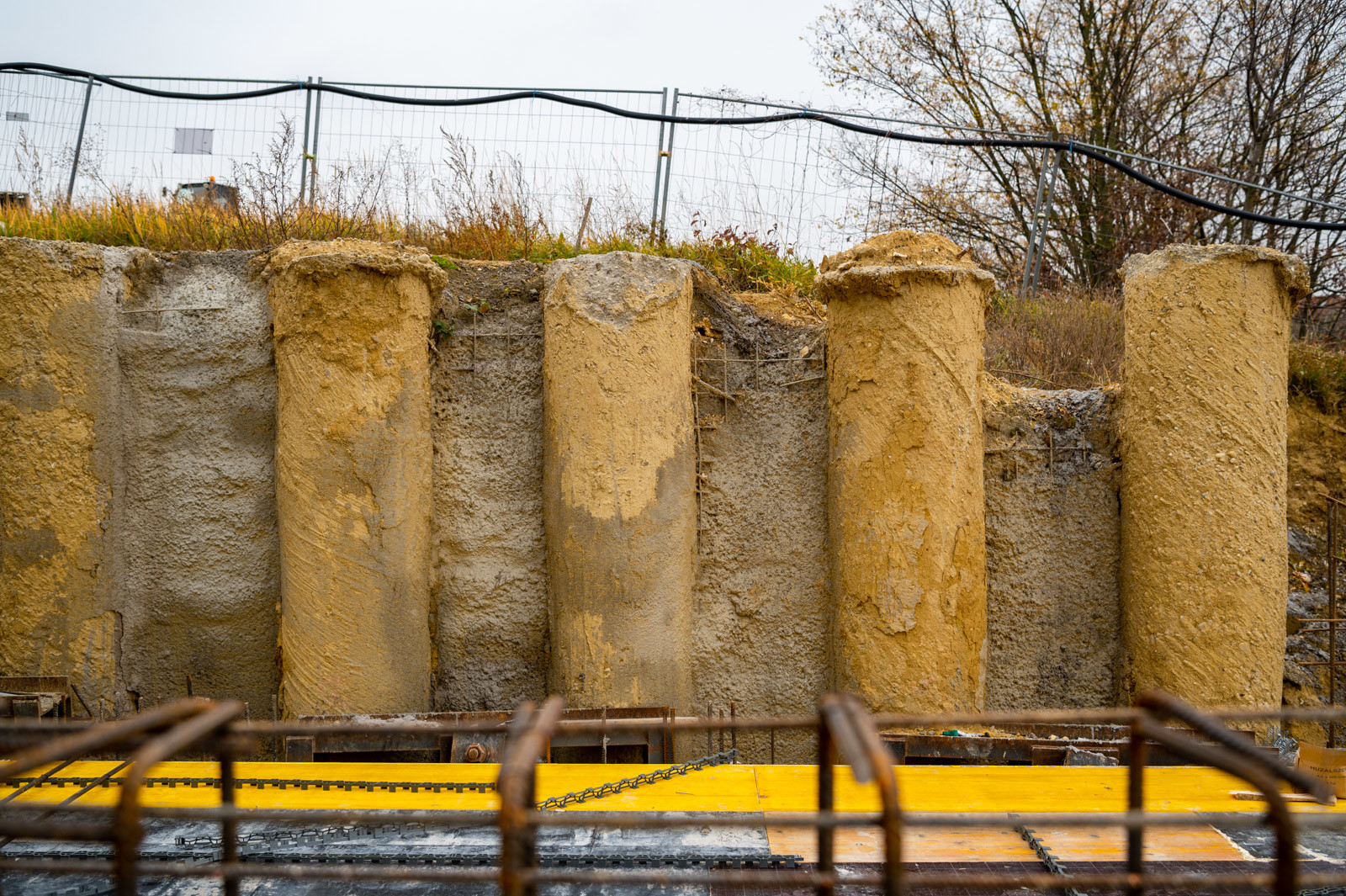 „A beépítési terület itt lényegében egy kráter, a legmagasabb és legalacsonyabb pontja között 13-15 méter a szintkülönbség, melynek áthidalása rengeteg földmunkát jelent. A hatalmas mennyiségű földet cölöpfallal kellett megfognunk. A szintkülönbségből és a terület méretéből adódóan itt is az organizáció okozta az egyik nagy kihívást”