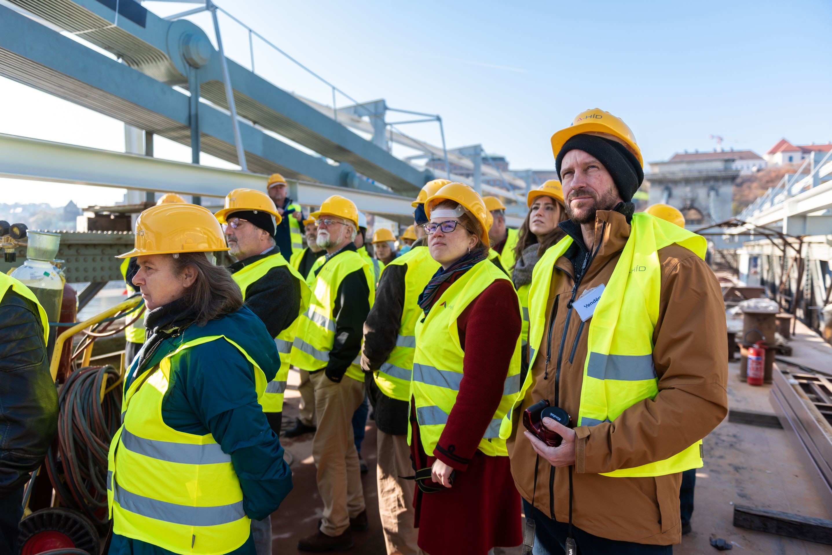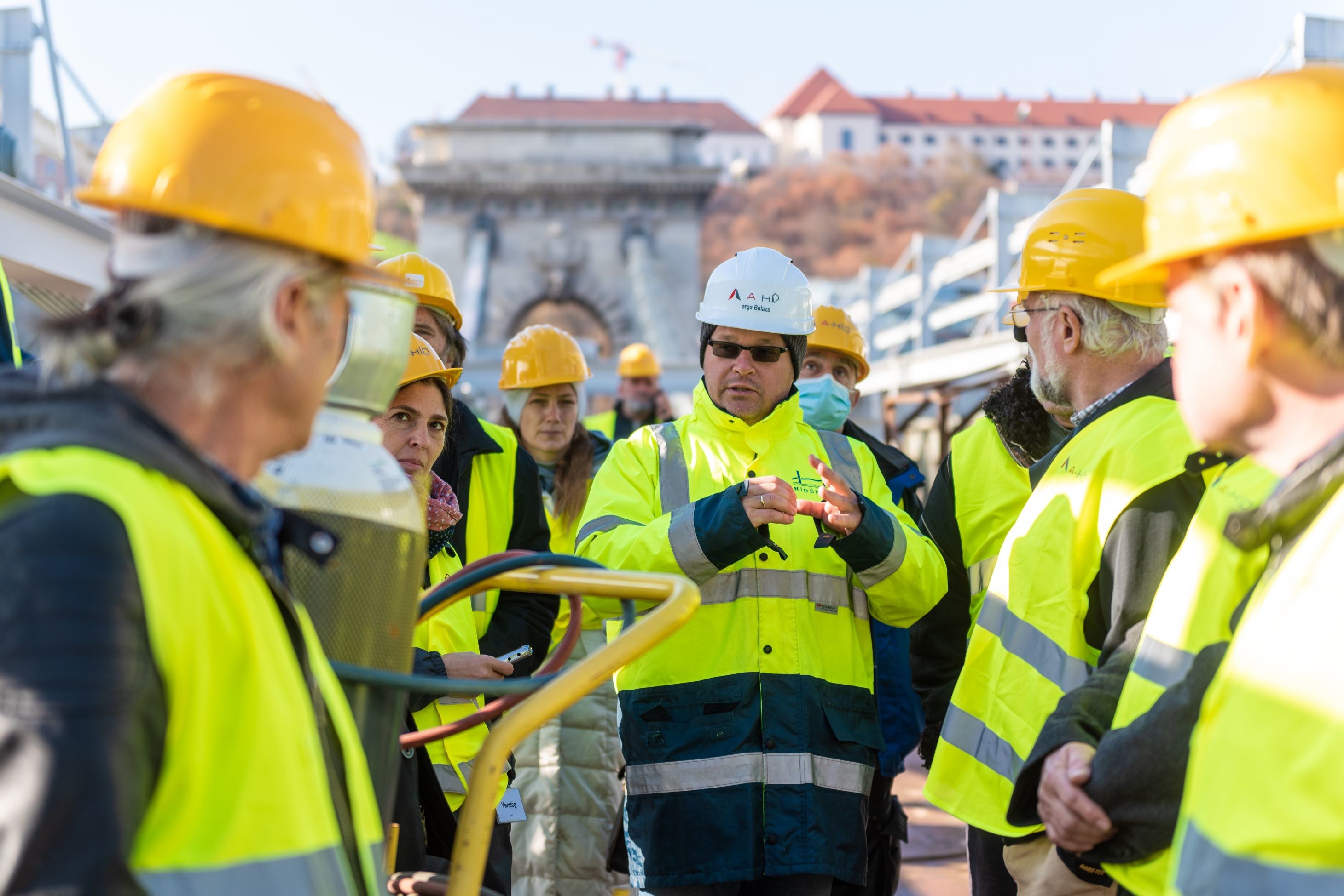 A cégvezető a bejáráson is részt vett, a látogatókat viszont – egy, a híd történetéről és a mostani rekonstrukcióról szóló előadás megtartása után – már Varga Balázs projektvezető kalauzolta a Lánchídon, közvetlen betekintést adva a munkálatokba. A művészeknek lehetőségük nyílt arra is, hogy a munkálatok sűrűjébe, a híd közepére besétálva vagy a függesztett állványzatra lemászva gyűjtsenek inspirációt, közvetlen közelről is megtekintsék a szerkezetet, és választ kapjanak felmerülő kérdéseikre.