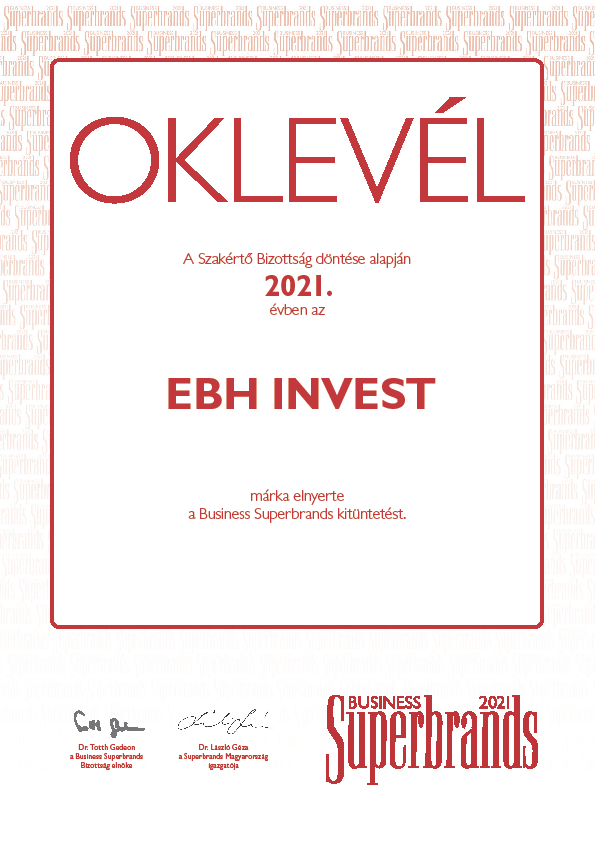 EBH „AAA” Gold Bisnode Tanúsítvánnyal rendelkezik, mely igazolja, hogy a vállalattal való üzleti kapcsolat kialakításának pénzügyi kockázata rendkívül alacsony. Hazánkban a cégek csupán 0,63 %-a rendelkezik, ilyen minősítésű Bisnode Tanúsítvánnyal, így rendkívül büszkék az elismerésre.