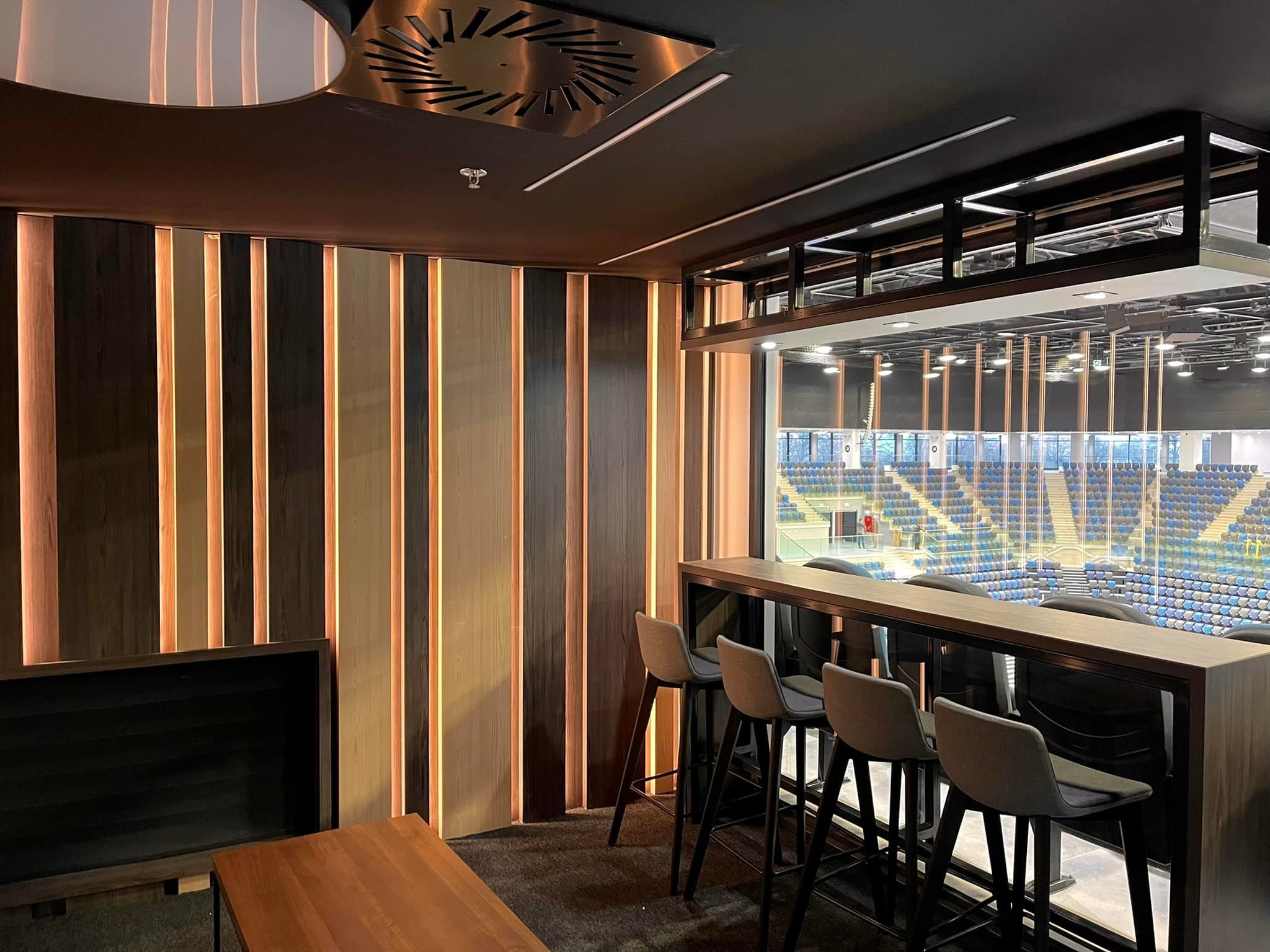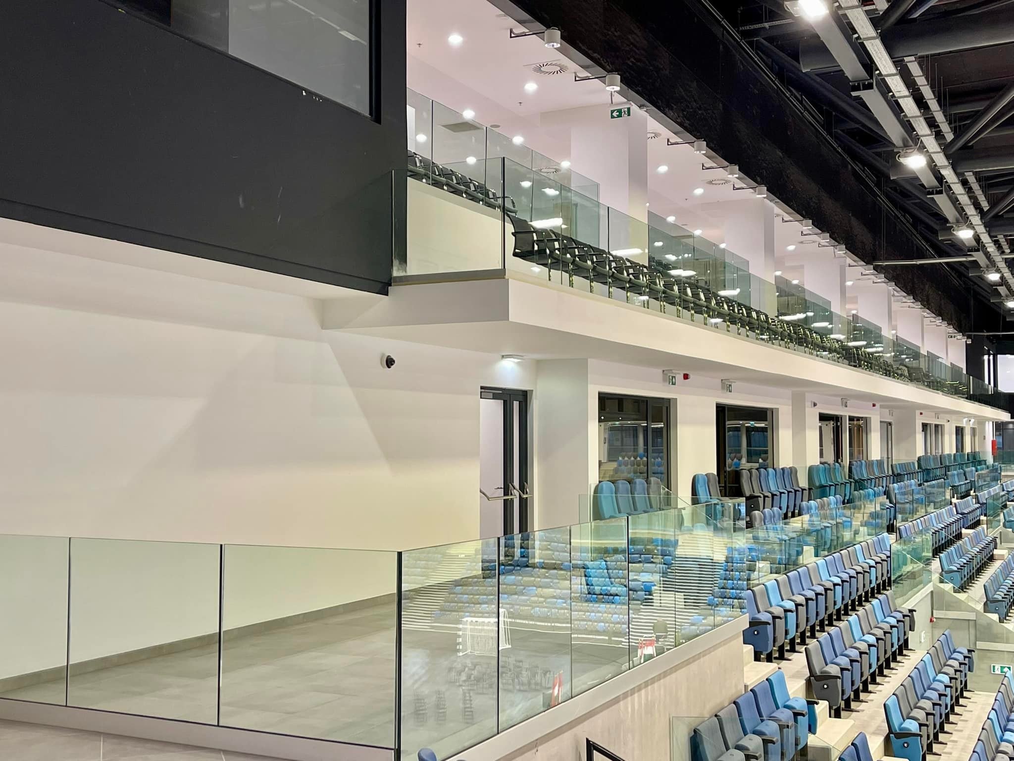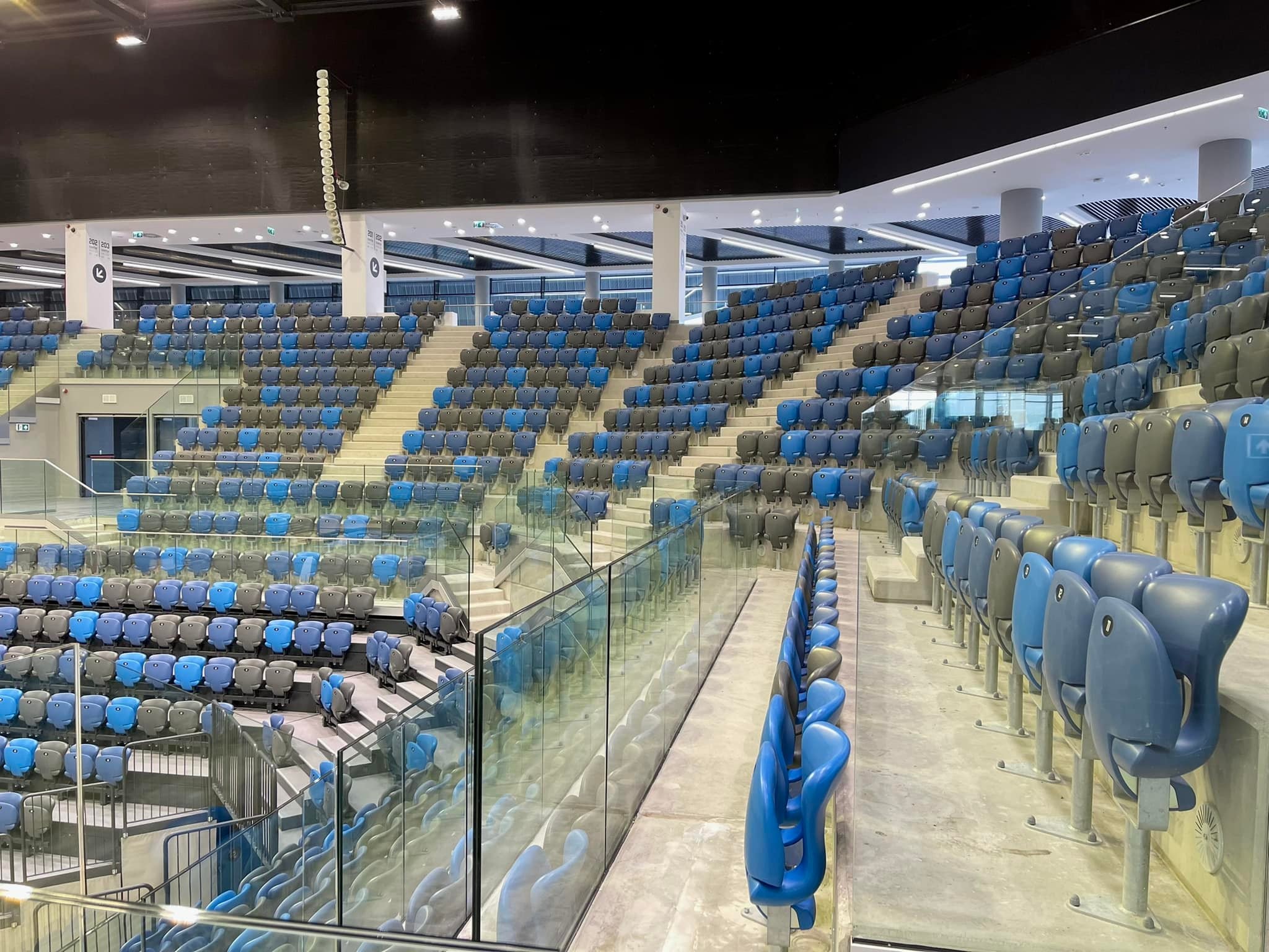 A közel húszezer négyzetméteres sportarénában több mint 6000 férőhelyet alakítottak ki, fele-fele arányban fix és mozgatható lelátókon az alábbi elrendezés szerint: