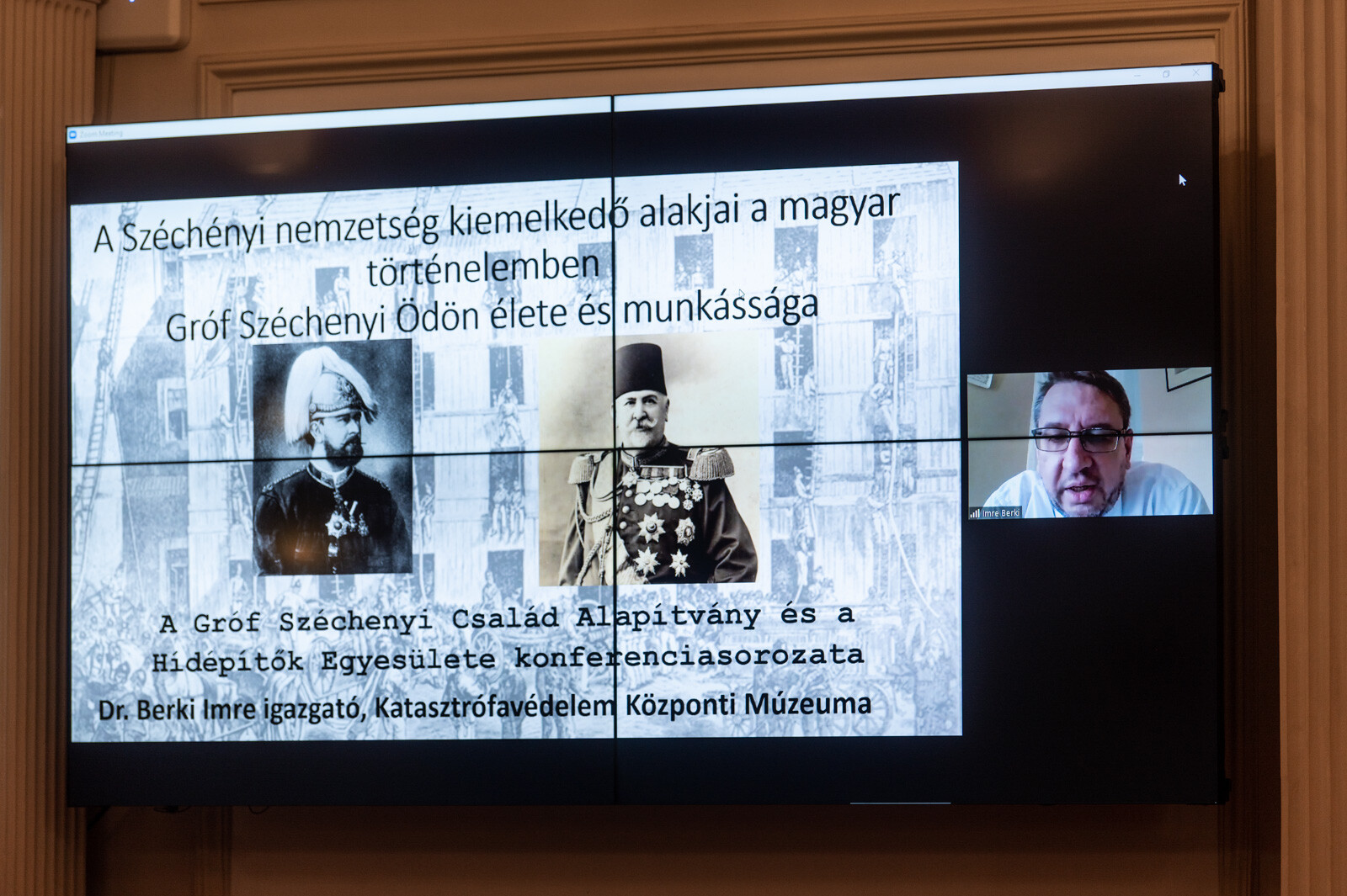 Gróf Széchenyi Ödönről, a magyar és oszmán hivatásos tűzoltóság megteremtőjéről és Széchenyi István fiáról Dr. Berki Imre, a Katasztrófavédelem Központi Múzeumának igazgatója tartott előadást, aki részletesen beszélt a nemcsak számos teljesítményt elért, de kifejezetten érdekfeszítő életpályát is befutott arisztokratáról.