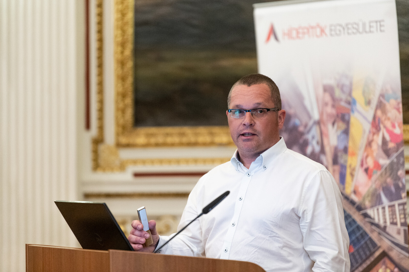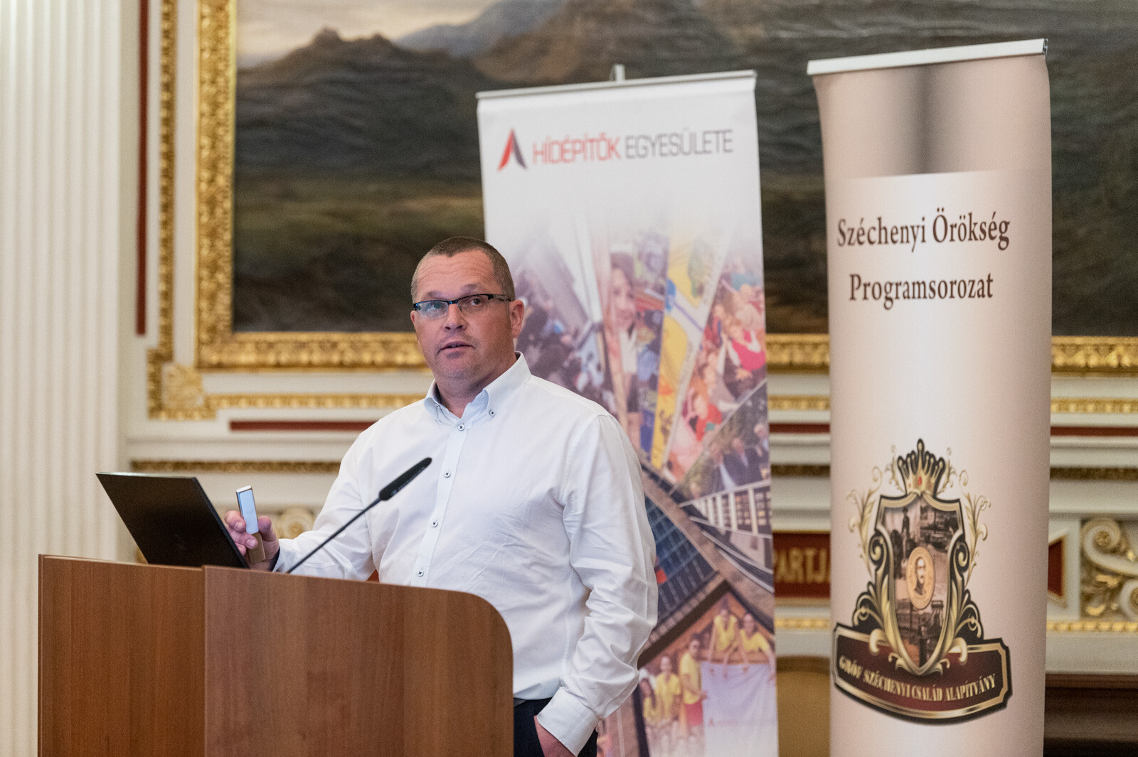 Ezt követően Sal László, az A-Híd Zrt. vezérigazgatója szólalt fel, aki kifejtette: a több mint 70 éves cég a kezdetektől támogatja az alapítvány munkáját és közös elképzeléseik vannak a jövőre nézve is, mint ahogy a Hídépítők Egyesülete és a Széchenyi Alapítvány együttműködése is jelentős. A vezérigazgató a magyar történelem egyik legkiemelkedőbb alakjaként méltatta gróf Széchenyi Istvánt, majd kifejtette: nagyon örül, hogy az akadémia épületében tarthatják a konferenciát - többek között azért is, mert az közvetlenül a híd mellett található.