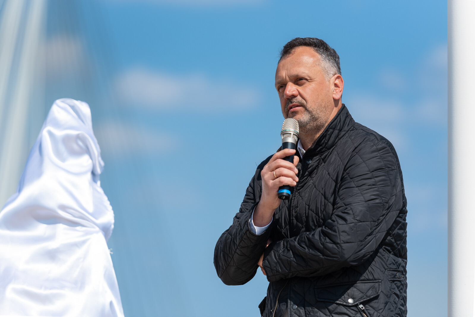 Az eseményen felszólalt dr. Molnár Attila polgármester, aki külön megköszönte mindenkinek a munkát, akik a híd felépítésében részt vettek. Hangsúlyozta a híd turisztika jelentőségét, illetve kiemelte: Komárom az egyetlen olyan város az egész folyam vonalán, amely nem főváros, és mégis három híd is összeköti a Duna túlpartjával. Gazdasági szempontból is jelentősnek nevezte a fejlesztést és elmondta: napi háromezer teherautó halad át a hídon.