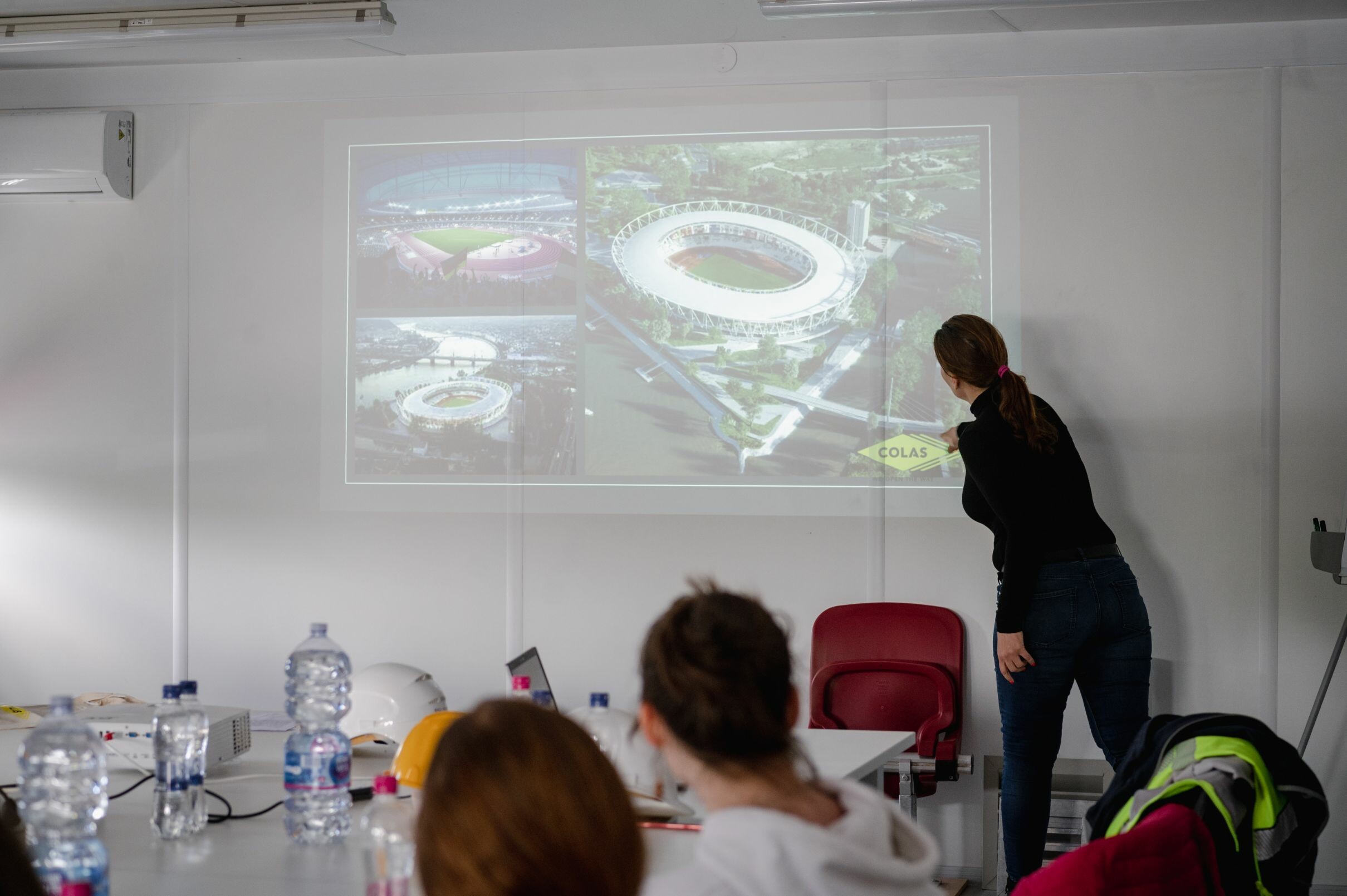 A Nemzeti Atlétikai Stadion területén Major Szilvia, területi főmérnök tartott szakmai előadást, és levetítették az előkészítési és az eddigi munkafázisokat.