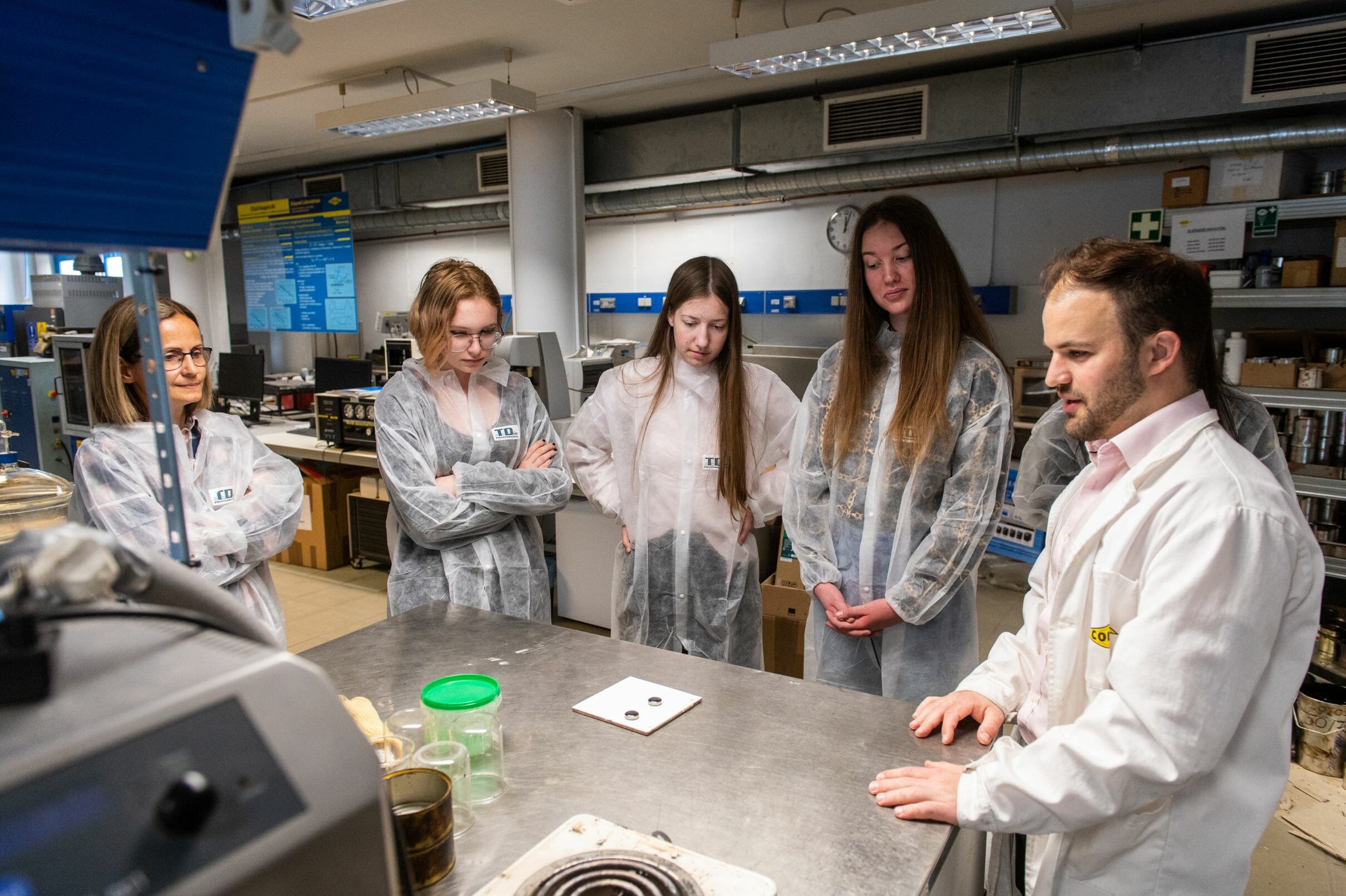 A program a nap második része az óbudai Bécsi úton található központi technológiai laboratóriumban folytatódott, ahol Szvoboda Krisztián, regionális laborvezető vezette körbe a diákokat, és mutatta be azokat az Európa szinten is kiemelt minőségű, modern berendezéseket, melyeknek köszönhetően a Colas a magas színvonalat biztosítani tudja az aszfaltgyártás területén.
