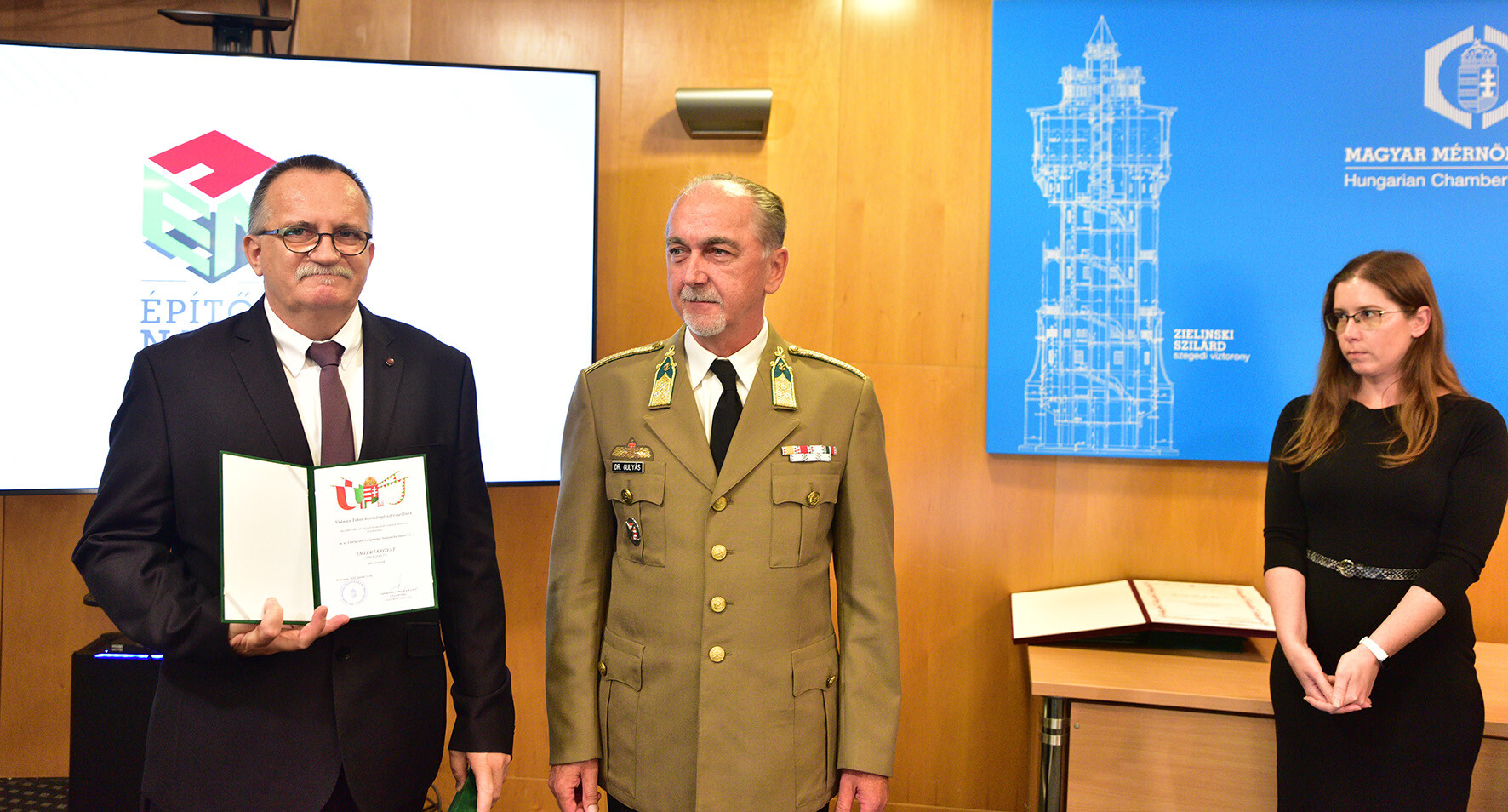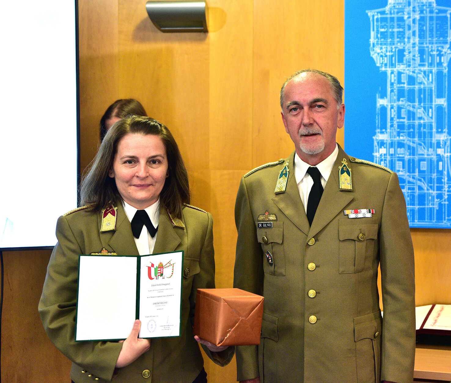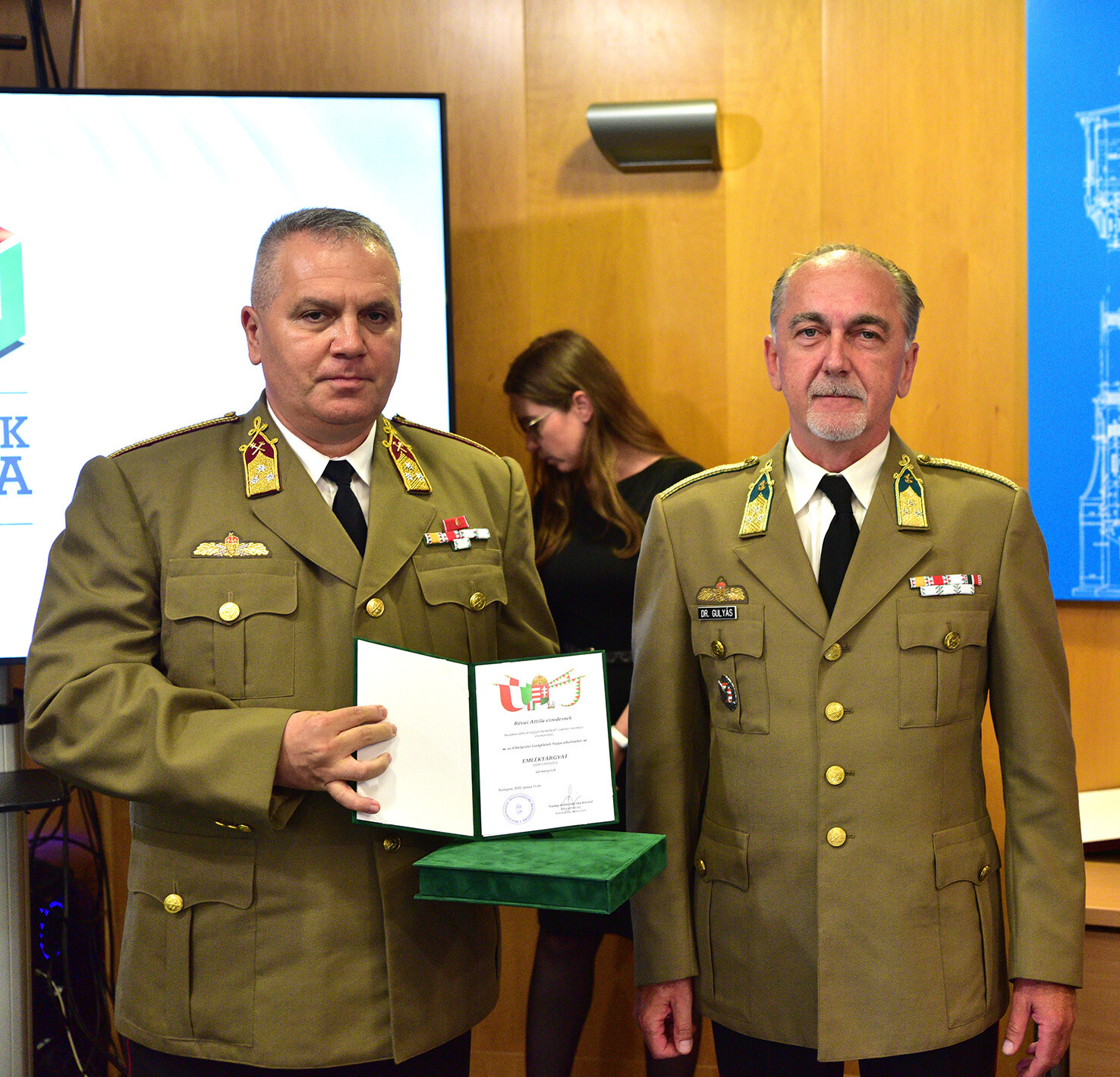 A Honvédelmi Minisztérium elismerő oklevelét Fekete Enikő őrnagy, a HM Védelemgazdasági Főosztály BEFKI NATO Biztonság Beruházási Osztály főtisztje, illetve Rávai Attila ezredes, a Hatósági Főosztály Munkafelügyeleti és Sugárvédelmi Hatósági Osztály osztályvezetője vehette át.