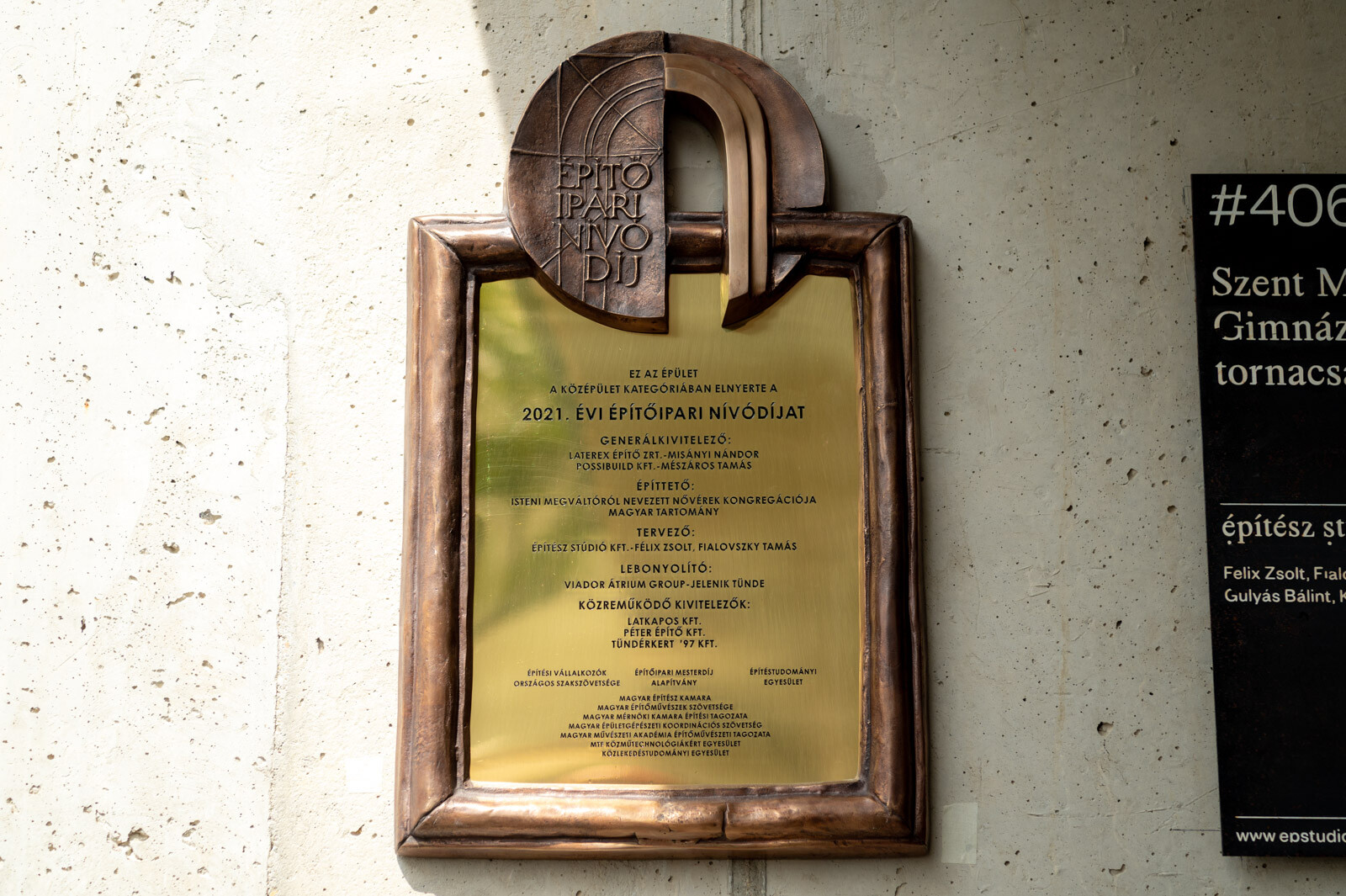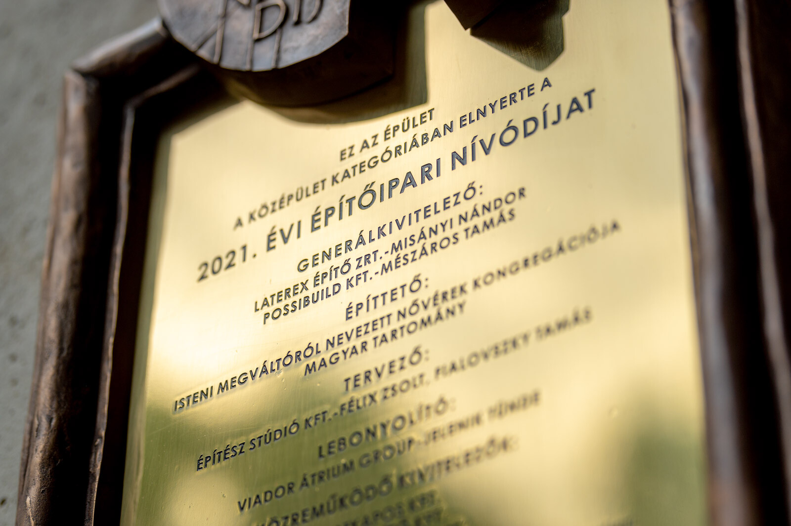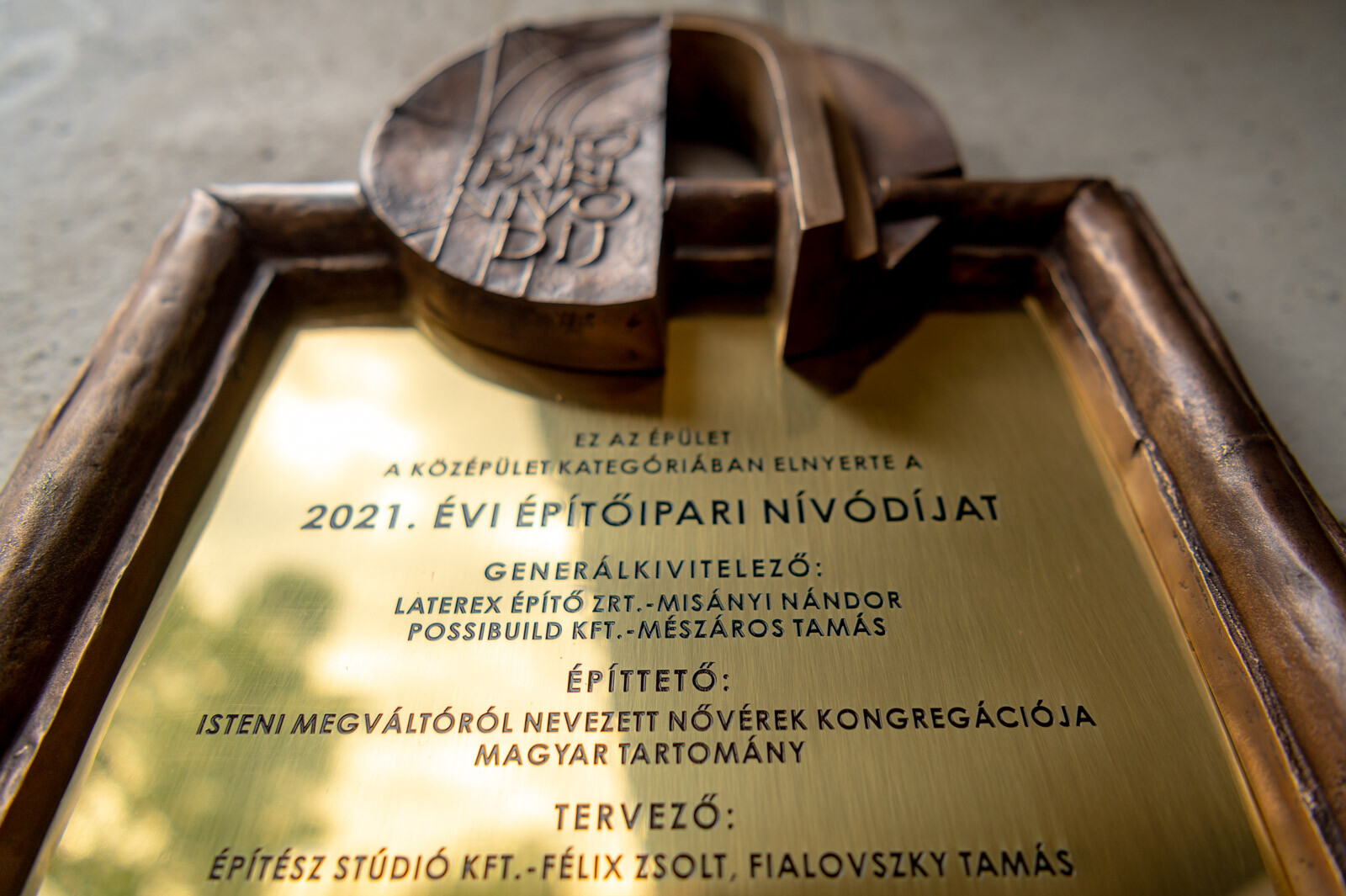 A rendezvények megtartására is alkalmas épület a Középület/oktatás kategóriában nyerte el az Építőipari Nívódíjat, amelynek mostani táblaavatóján Dr. Simicskó István, a Kereszténydemokrata Néppárt frakcióvezetője; Gerencsér András, a LATEREX Építő Zrt. elnöke; Sztankov Attila, a LATEREX Építő Zrt. vezérigazgatója; Nitti-Pálffy Zsuzsanna Klára, a Possibuild Kft. ügyvezetője valamint Frey Lajos, az Építéstudományi Egyesület kivitelezési szakosztályának elnöke is részt vett.