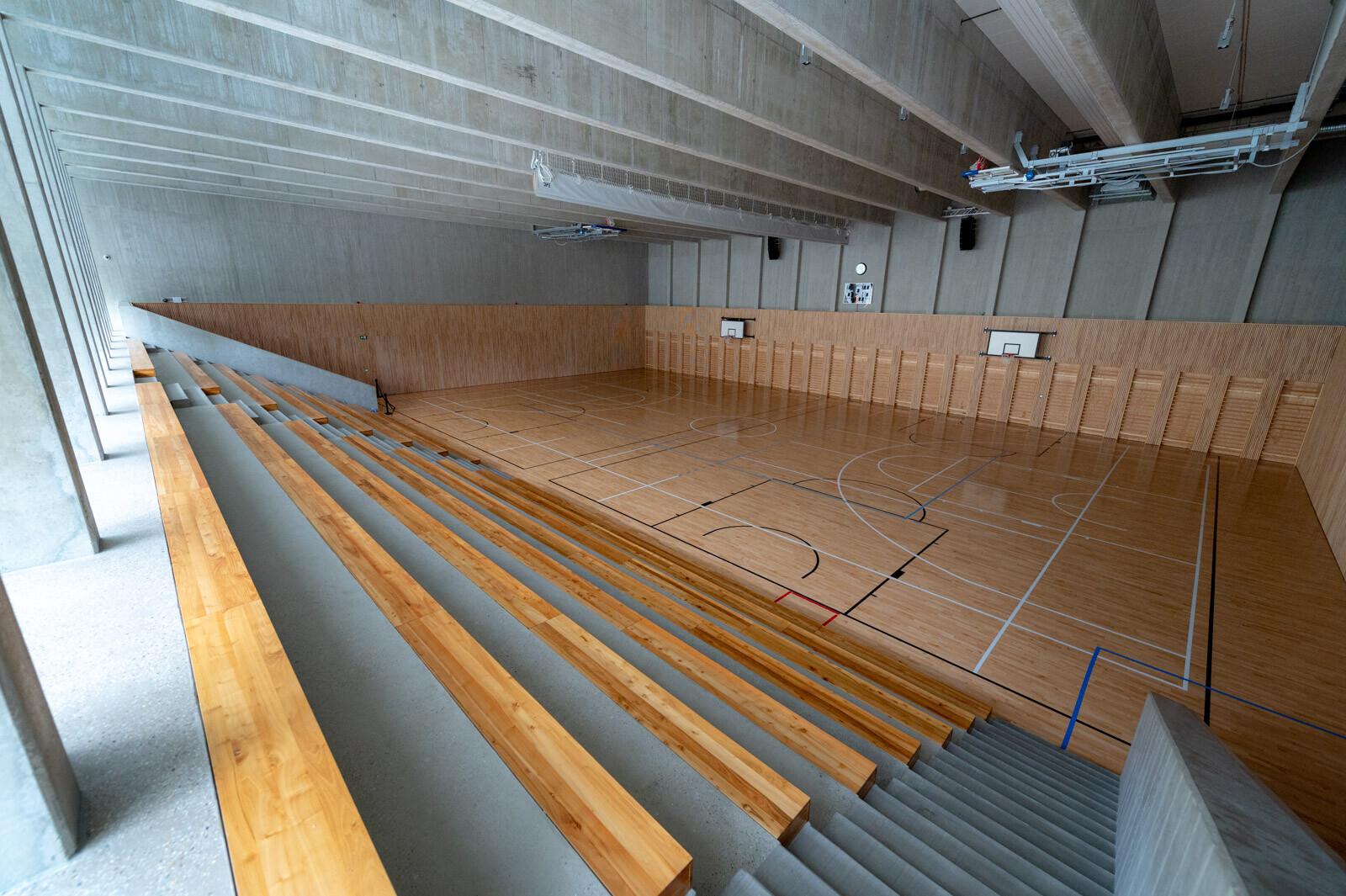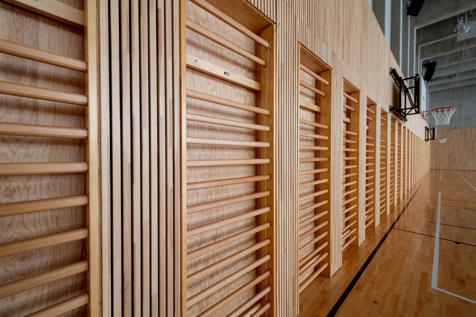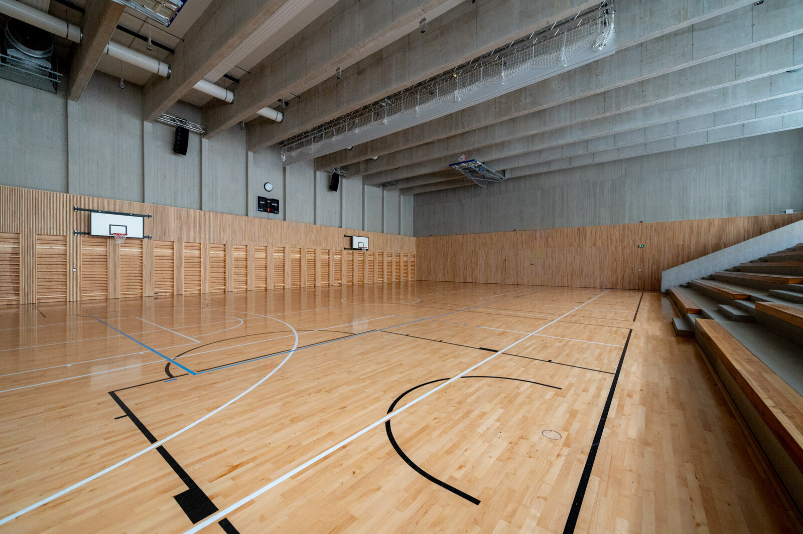 A lapostetős épület a tetején kültéri sportpályákkal jött létre, amelyeket a csarnok raszteréhez igazodó, finoman áttört felületi megjelenést biztosító acél oszlopok határolnak. Az épület déli oldalán transzparens üveghomlokzatot kapott. Az összegzés ugyanakkor azt is méltatta, hogy az építmény kivitelezése általánosan magas minőségű: „A naturális burkolatok, a látszóbeton szerkezetek különösen igényesen kerültek megvalósításra.”