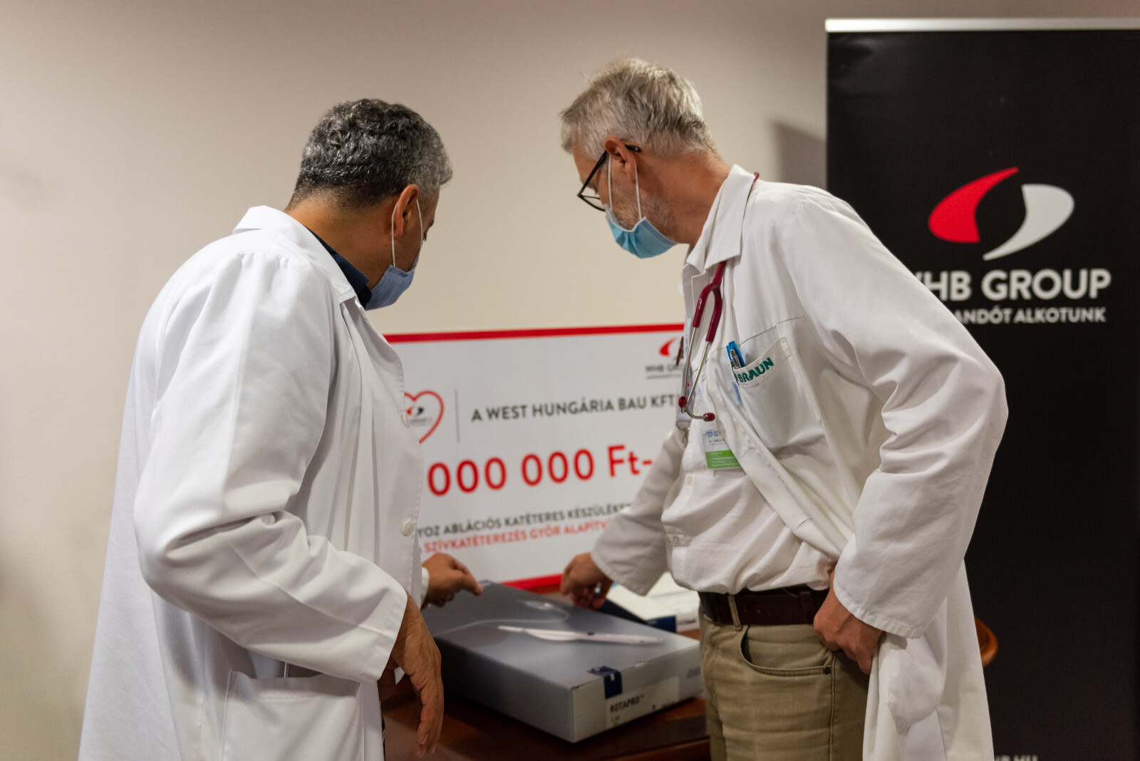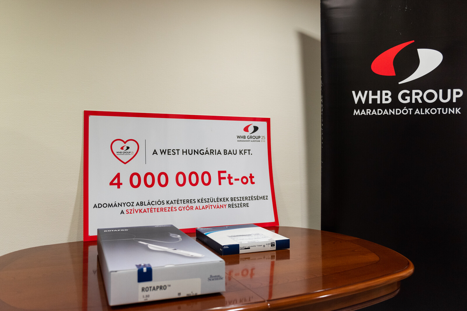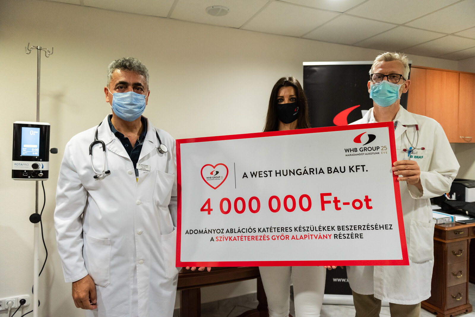 A cégcsoport ezúttal a Petz Aladár Megyei Oktató Kórház és a Szívkatéterezés Győr Alapítvány számára biztosított adományt. Melynek köszönhetően egy tizennyolc millió forintos életmentő eszközzel - a súlyos állapotban lévő betegek kezelésében használható, ablációs katéteres készülékkel - bővült a Petz Aladár Egyetemi Oktató Kórház szívkatéteres laboratóriuma. Ehhez a WEST HUNGÁRIA BAU Kft. 4 millió forinttal járult hozzá.
