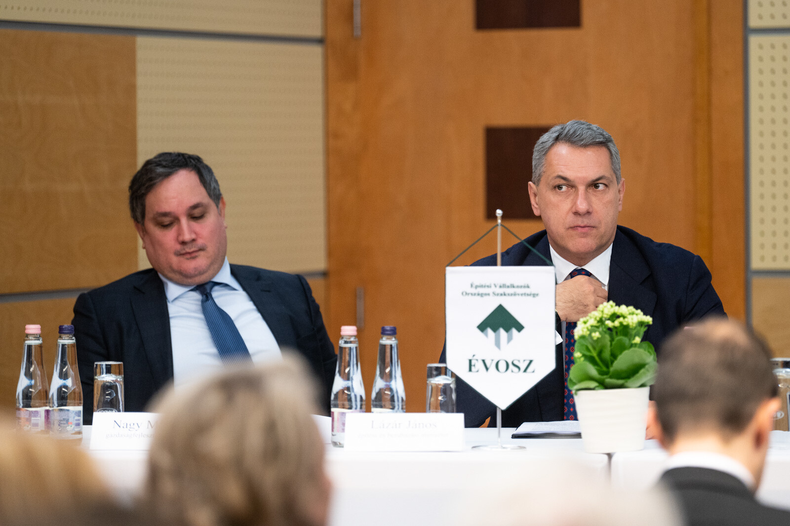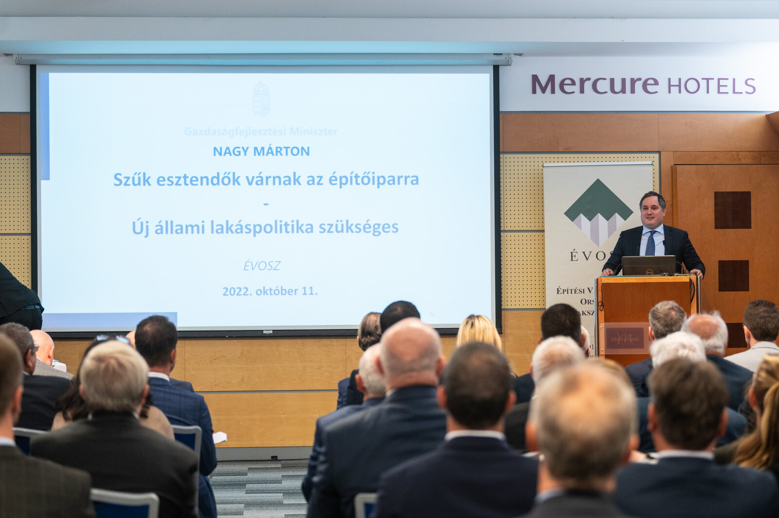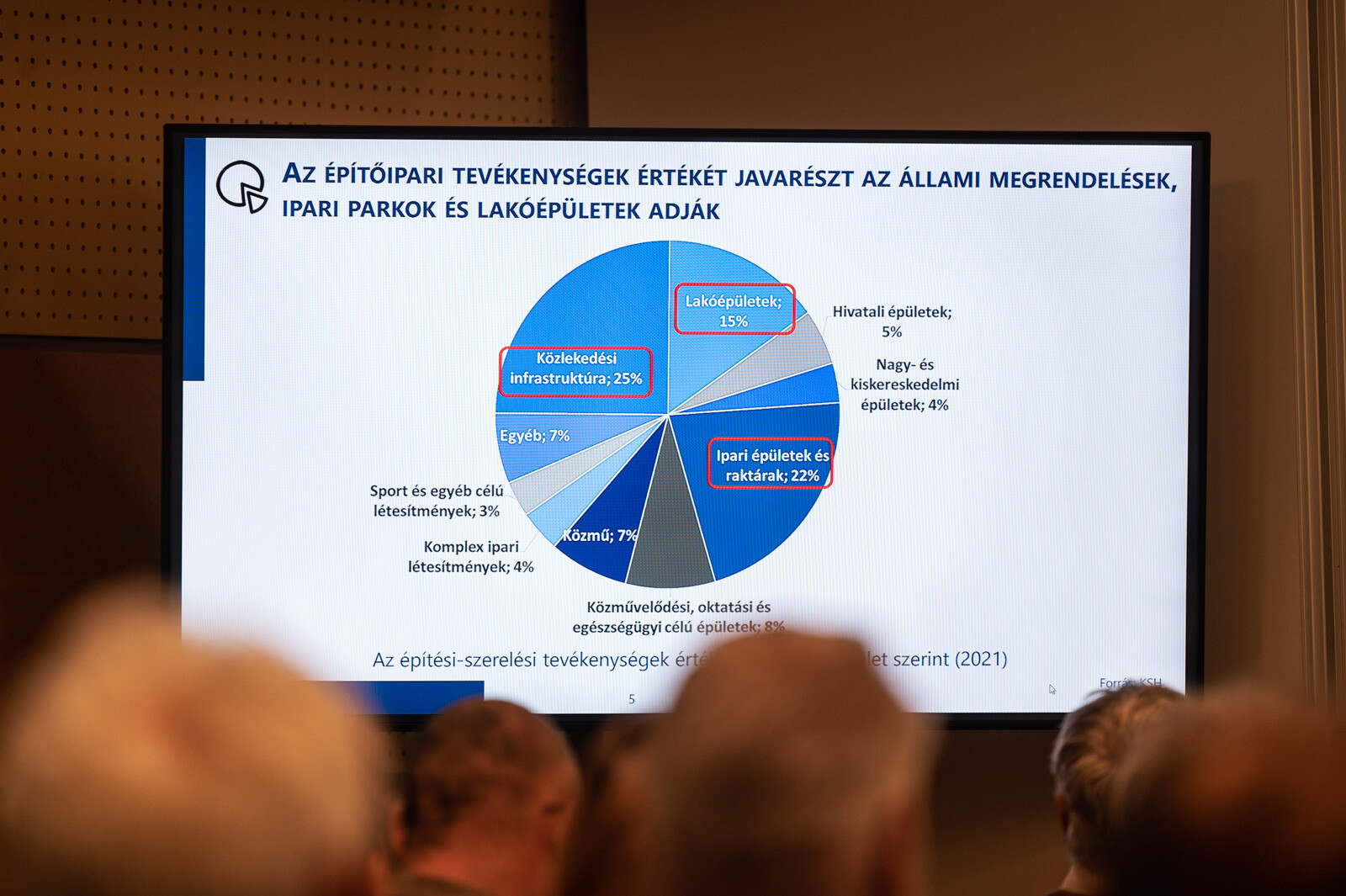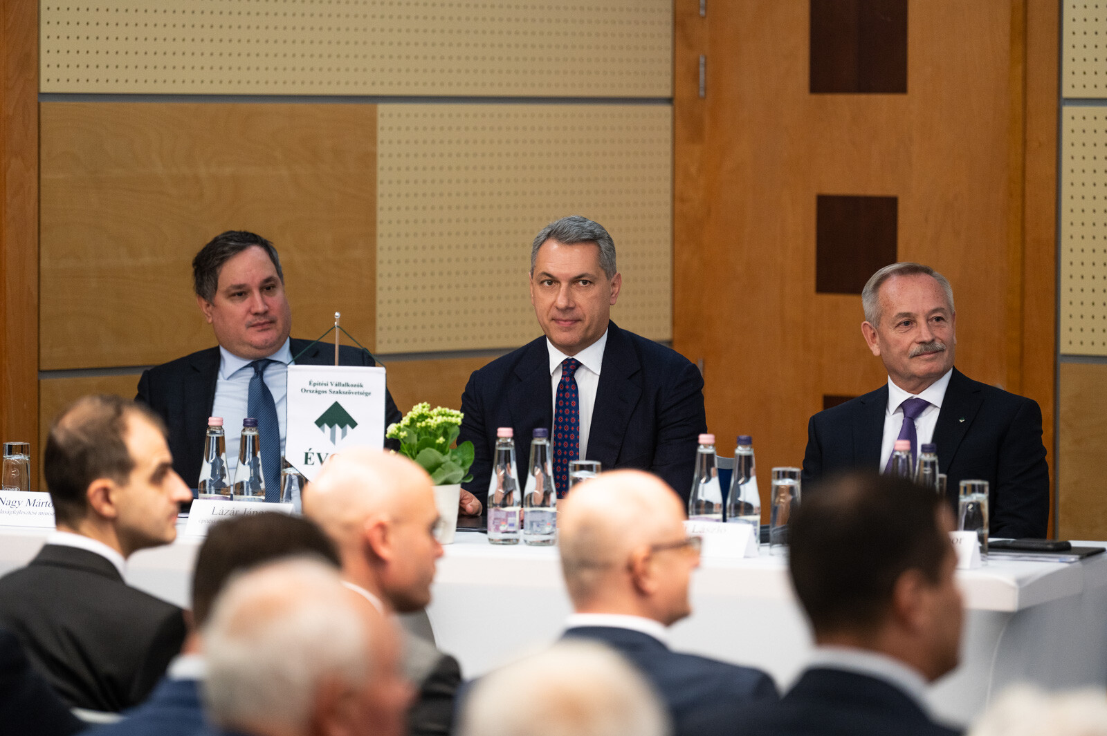A keddi esményen Nagy Márton gazdasági miniszter hosszasan kitért az építőipar helyzetére, hangsúlyozva, hogy az ágazat hármas szorításban van az emelkedő energia-, munkabér- és alapanyagköltségek, a dráguló finanszírozás, valamint az elhalasztott állami beruházások és a mérséklődő lakossági kereslet miatt.