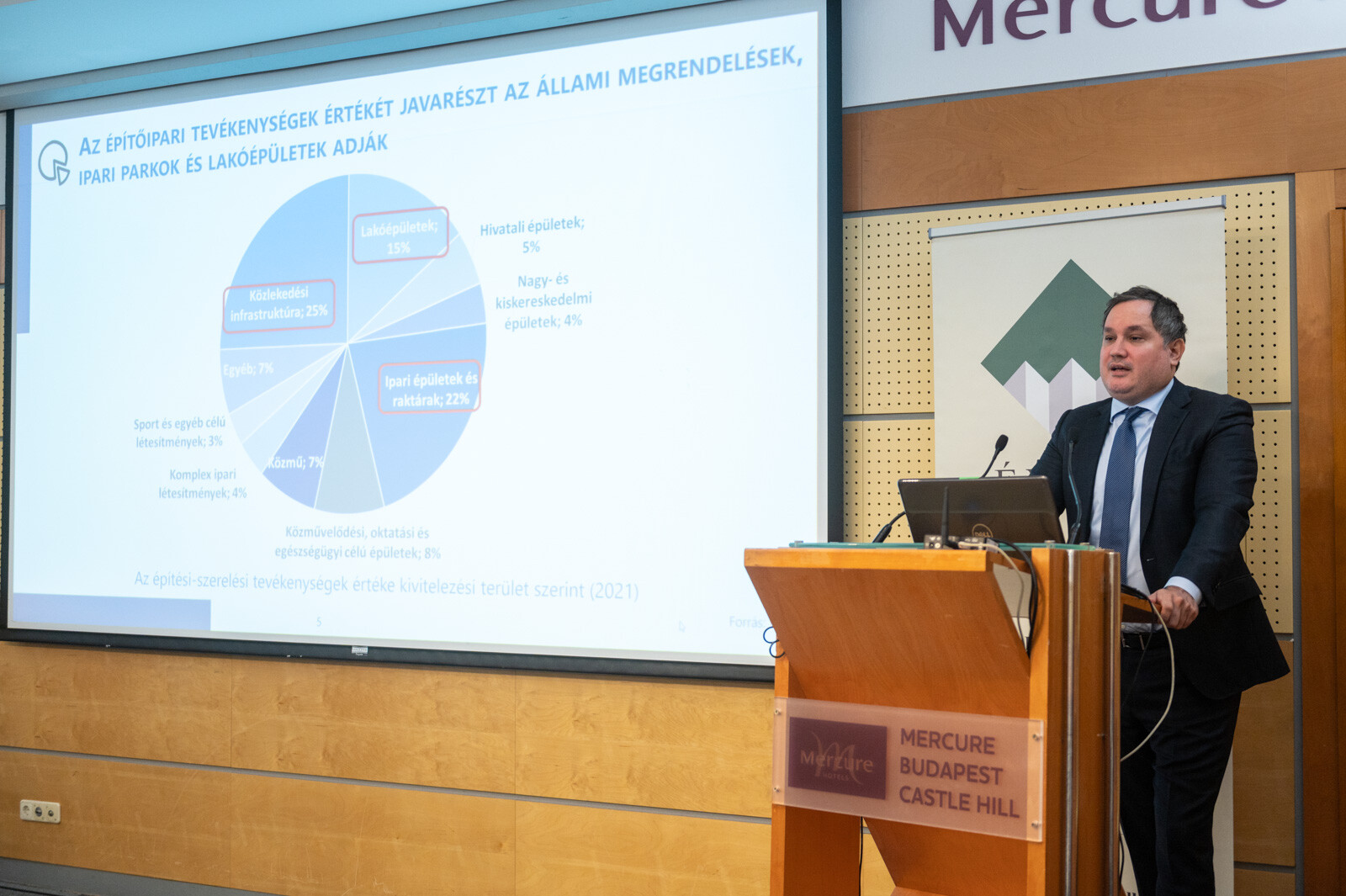 Az emelkedő költségek miatt kialakuló költségsokkról szólva a miniszter példaként említette, hogy míg az infláció 20 százalékos, az építőipari árindex - főként az anyagköltségek emelkedése nyomán - meghaladhatja a 30 százalékot. Kitért arra is, hogy az állami beruházások értéke 2020-ban tetőzött 3500 milliárd forinttal, idén ez az érték 2700 milliárd forintra, egy egészségesebb szintre fog csökkeni. Mindezen beruházások 60-70 százaléka tartozik az építőipari beruházások körébe - jelezte.