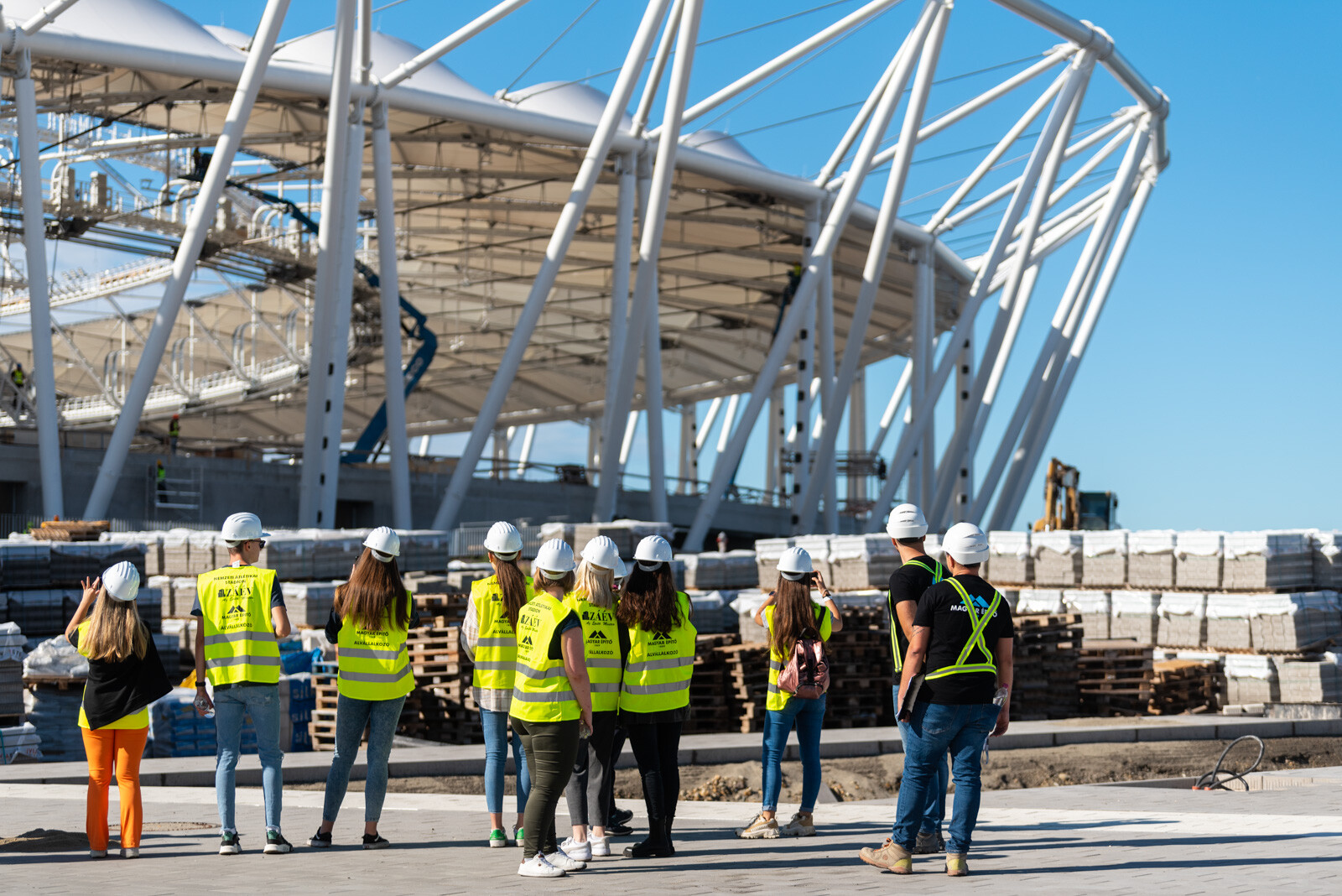 Ez idő alatt a hallgatók megtekinthették a létesítmény főbb projektelemeit, a stadion épületét, a 40 méteres főbejáratot, a 14 méteres aluljárót, és a 168 méter hosszú osztószigeti gyalogoshidat. A vállalat számára nagyon fontos, hogy a jövő munkavállalóit is be tudják vonni a kivitelezésbe, ezért szakmai gyakorlatos diákokat is szívesen fogadnak, sőt az elmúlt években érkeztek is Ybl karos hallgatók a Magyar Építő Zrt.-hez.