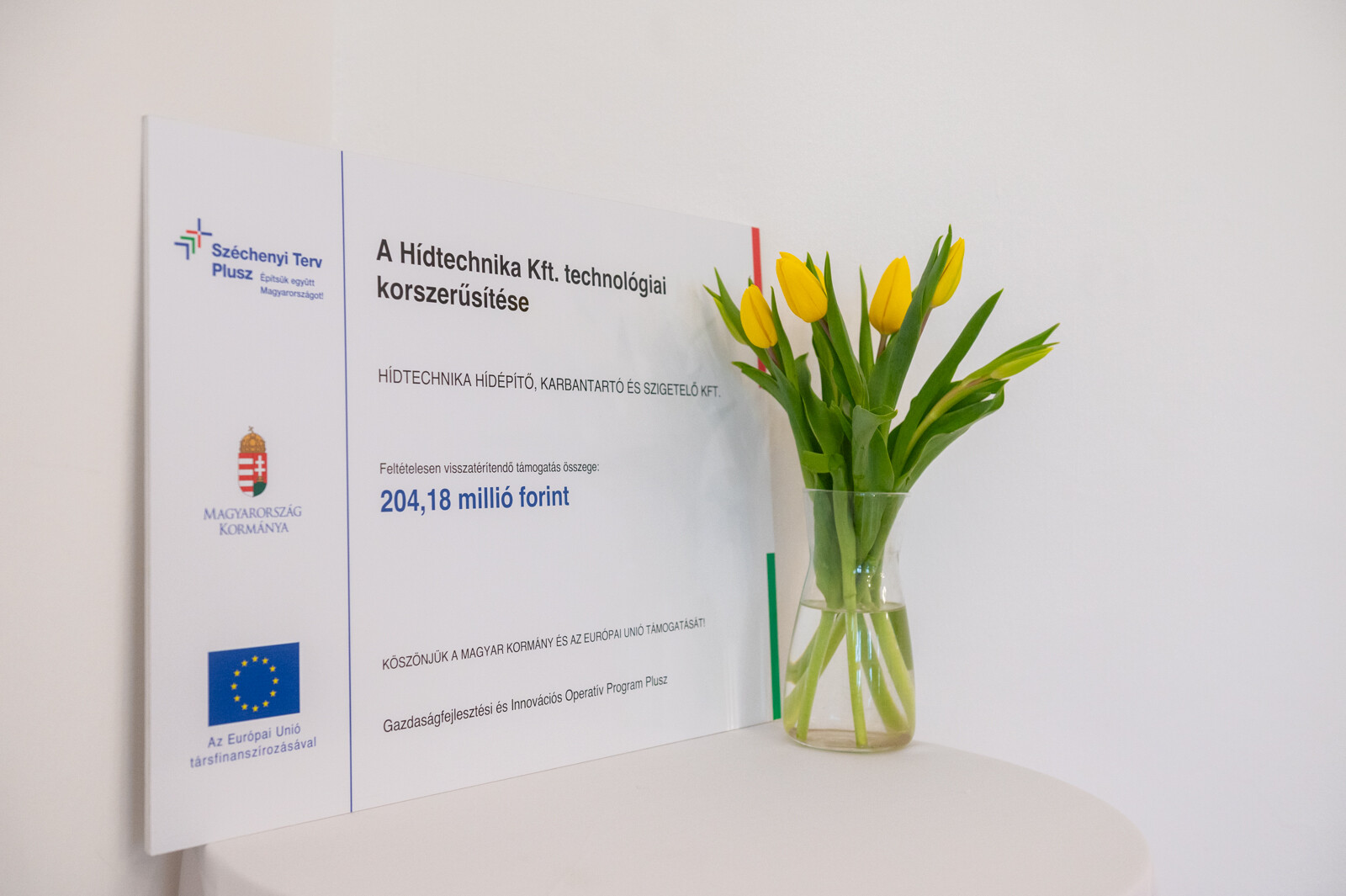 A Hídtechnika Hídépítő, Karbantartó és Szigetelő Kft. 291,69 millió forintot fordít technológiai korszerűsítésre - mondta a vállalat ügyvezetője február 1-jén sajtótájékoztatón Budapesten. Lipót Attila István közölte, hogy a fejlesztéshez 204,18 millió forintos, feltételesen visszatérítendő uniós támogatást nyertek el a Széchenyi Terv Plusz Programban.