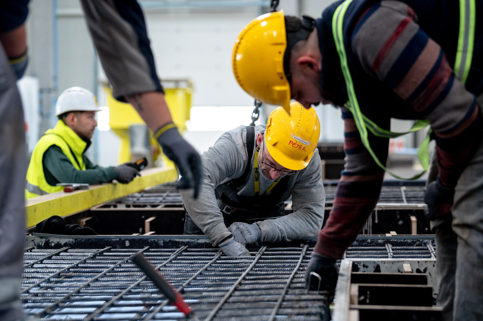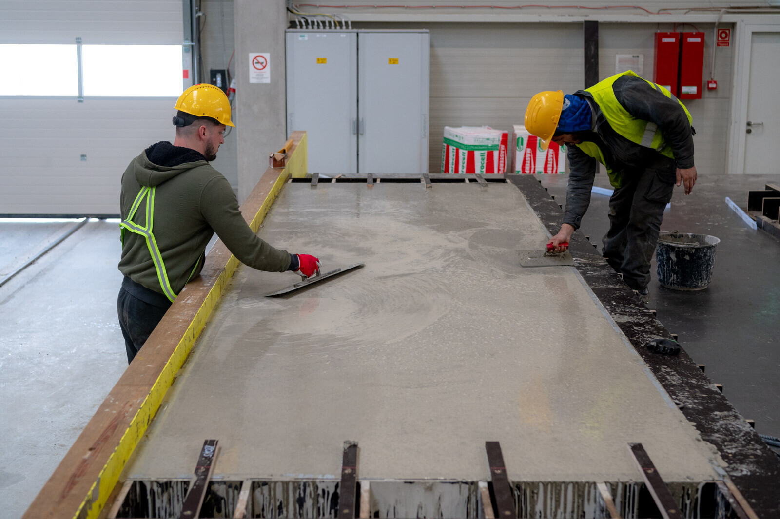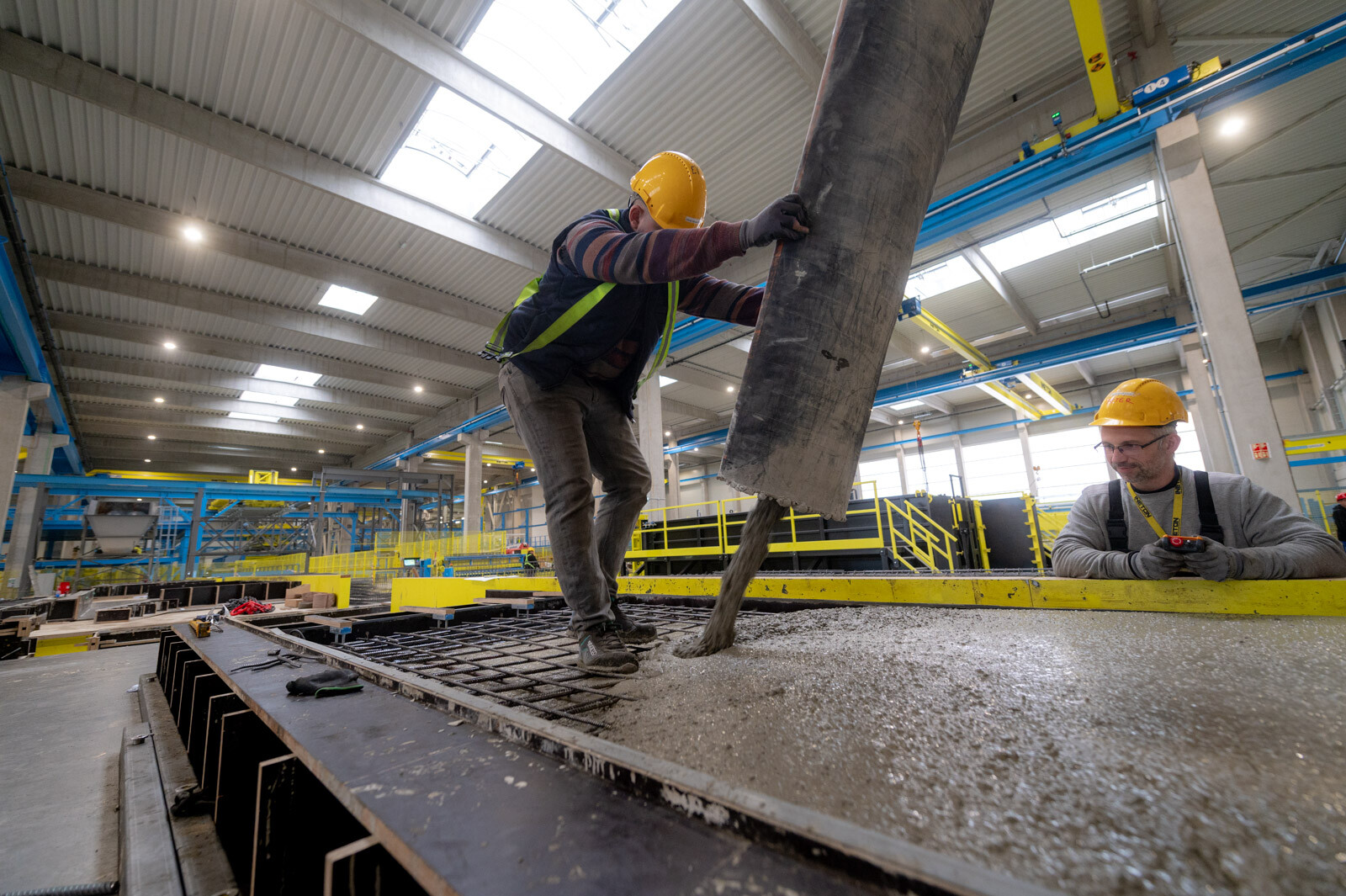 A pontosság kedvéért kifejtette, hogy a kéregszerkezetek esetében van helyszíni munka, acél elhelyezés és helyszíni betonozás, de már így is drasztikusan csökken a helyszíni munkaigény. „A födémek alsó vasalása elkészül a gyárban, kizárólag a toldó hálók és a felső vasalás kerül be a szerkezetbe a helyszínen, utóbbi szintén előregyártott hálós vasalás, amely így csak daruzást igényel. Ezután már kezdődhet a monolit rész elkészítése.