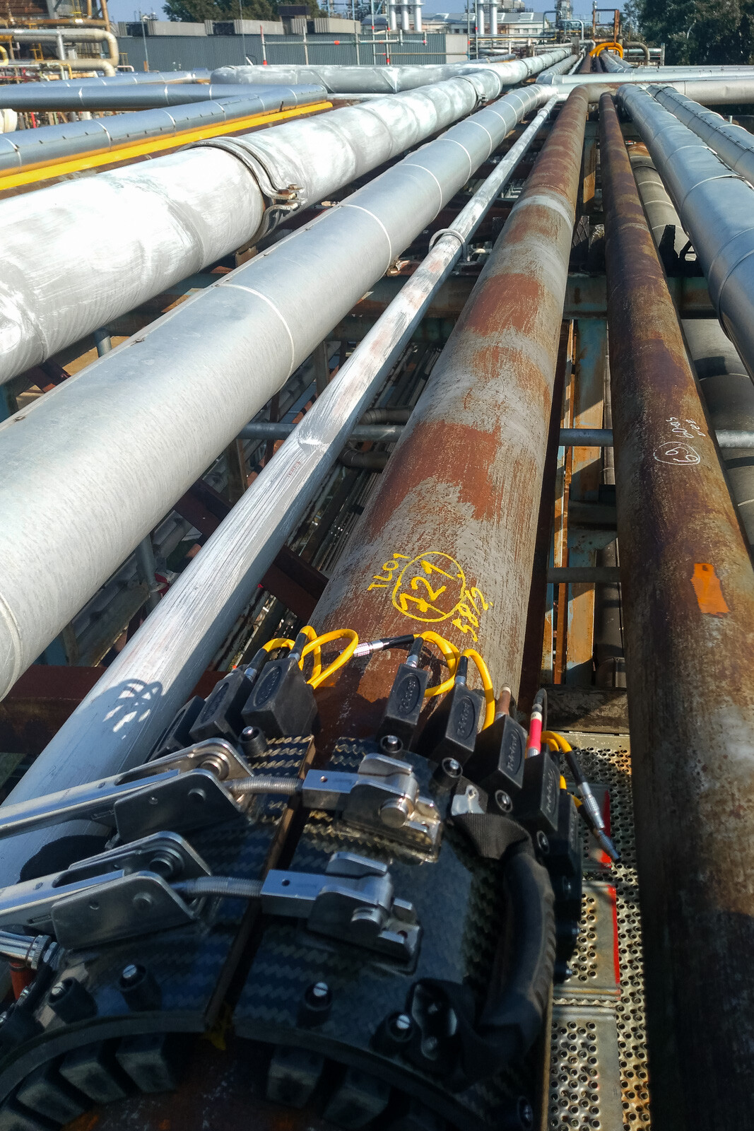 Utóbbira példát is mond a vezető. „Egyik ilyen nagyobb és érdekesebb fejlesztés volt a MOL Százhalombattai Finomító logisztikai vezetékhálózatának csődiagnosztikai állapotfelmérése. Ennek során egy hároméves időtartamban felmértük a finomító területén található 52 darab különböző vezeték korróziós állapotát.”