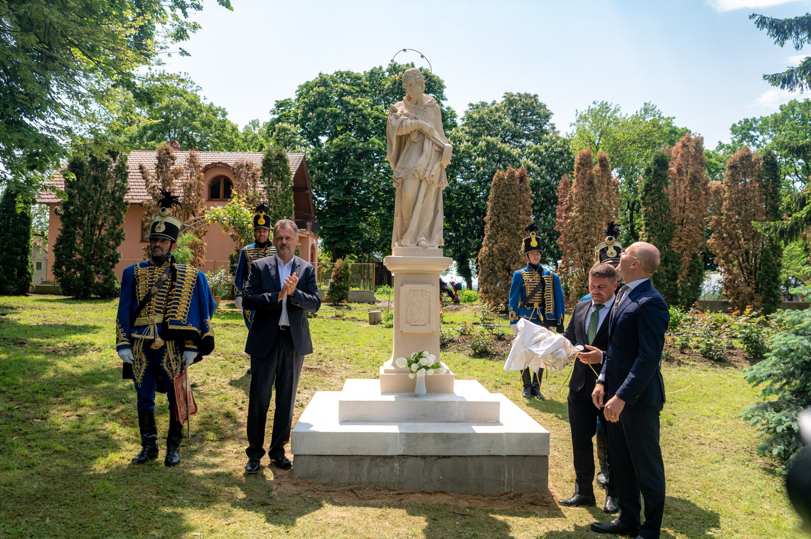 Ez a tizedik Nepomuki Szent János-szobor, ami felajánlásunknak köszönhetően a történelmi Magyarország területén megújult: a budapesti székházunk udvarán álló szobor után Óbuda, Soroksár, Gödöllő, Csömör, a felvidéki Tornalja, Kisbér, Budafok-Tétény és Nágocs után erre a jubileumi alkalomra aligha választhattunk volna jobb és alkalmasabb helyszínt Szentjobbnál.