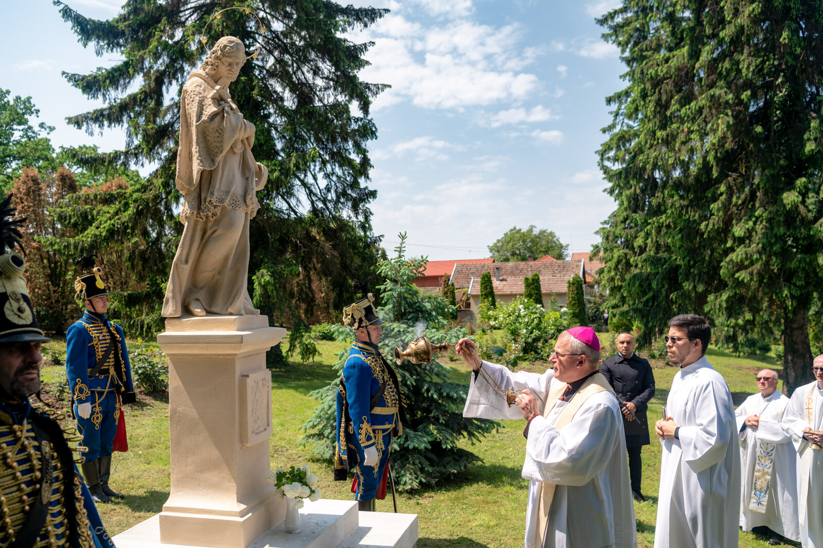 A misét celebráló Böcskei László püspök a szentszobor megáldása kapcsán kifejtette: az év második felében az apátságnak és a körülötte levő területnek a megújulása is elkezdődhet, ami azért jó, mert „nekünk feladatunk, hogy az elődeink által ránk hagyott örökséget ne csak megbecsüljük, hanem gyarapítsuk is a magunk módján és eszközeivel”. Szintén utalva arra, hogy Nepomuki Szent János a hidak védőszentje is, ezután szintén a hídépítés felvállalását emelte ki, hangsúlyozva, hogy a legfőbb hídépítő maga az Isten. „Nekünk is az a küldetésünk, hogy hídépítők legyünk, Nepomuki Szent János pedig példát és utat mutat nekünk, hogy helytállásban hogyan merjünk áldozatot vállalni” – mondta el.