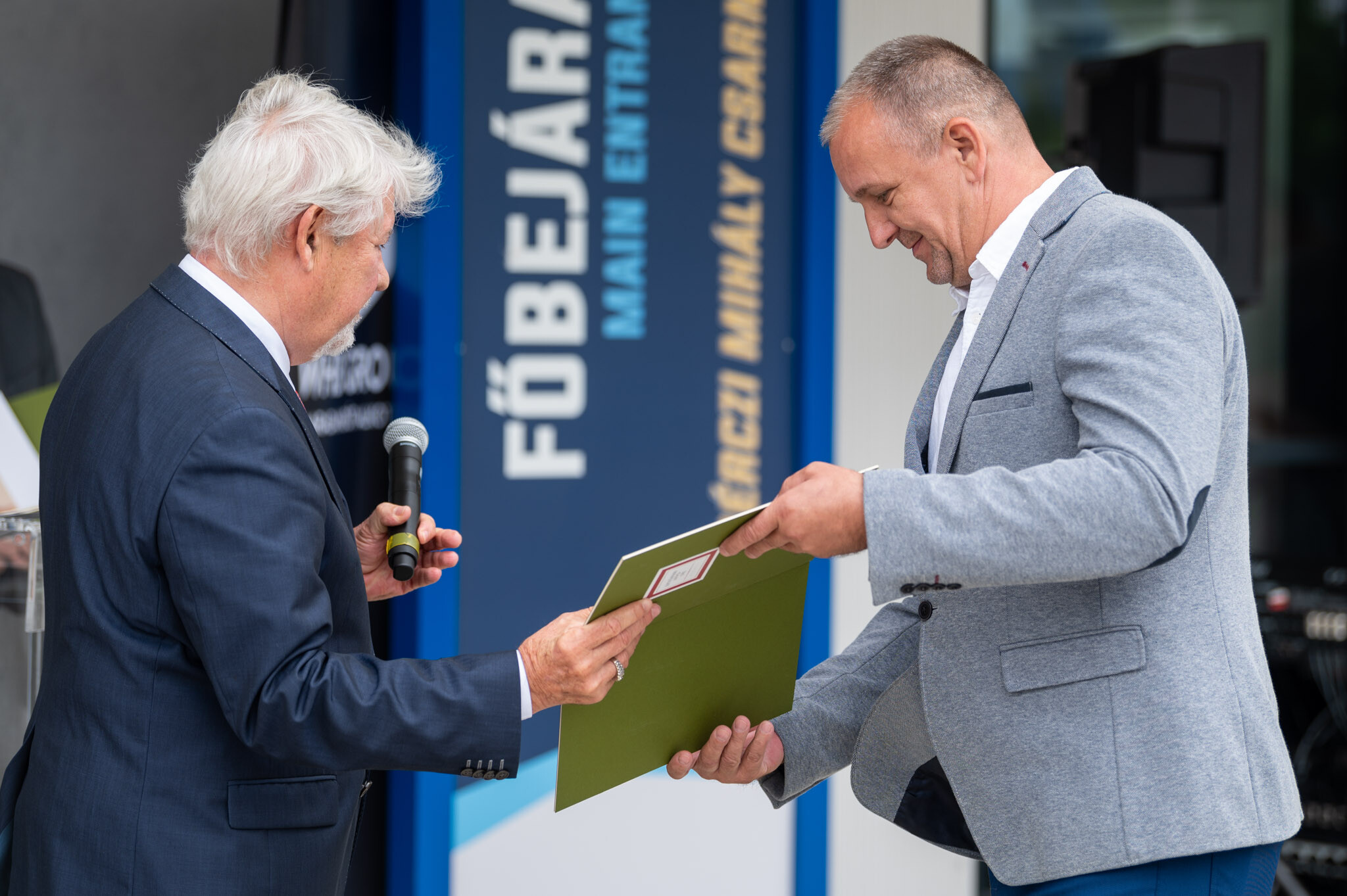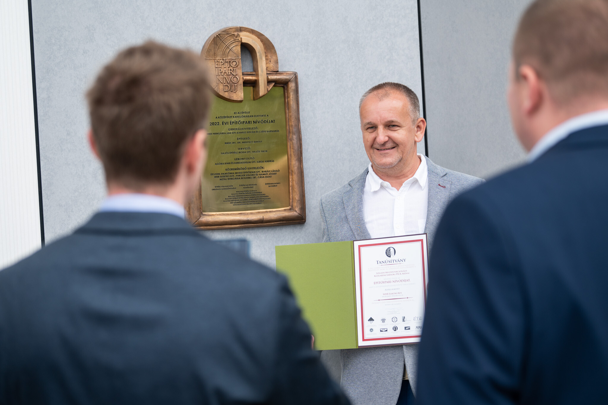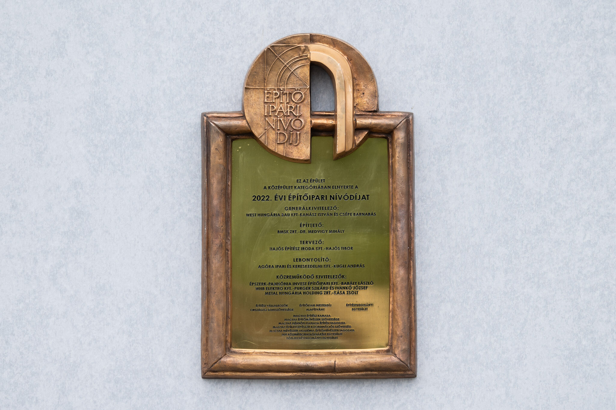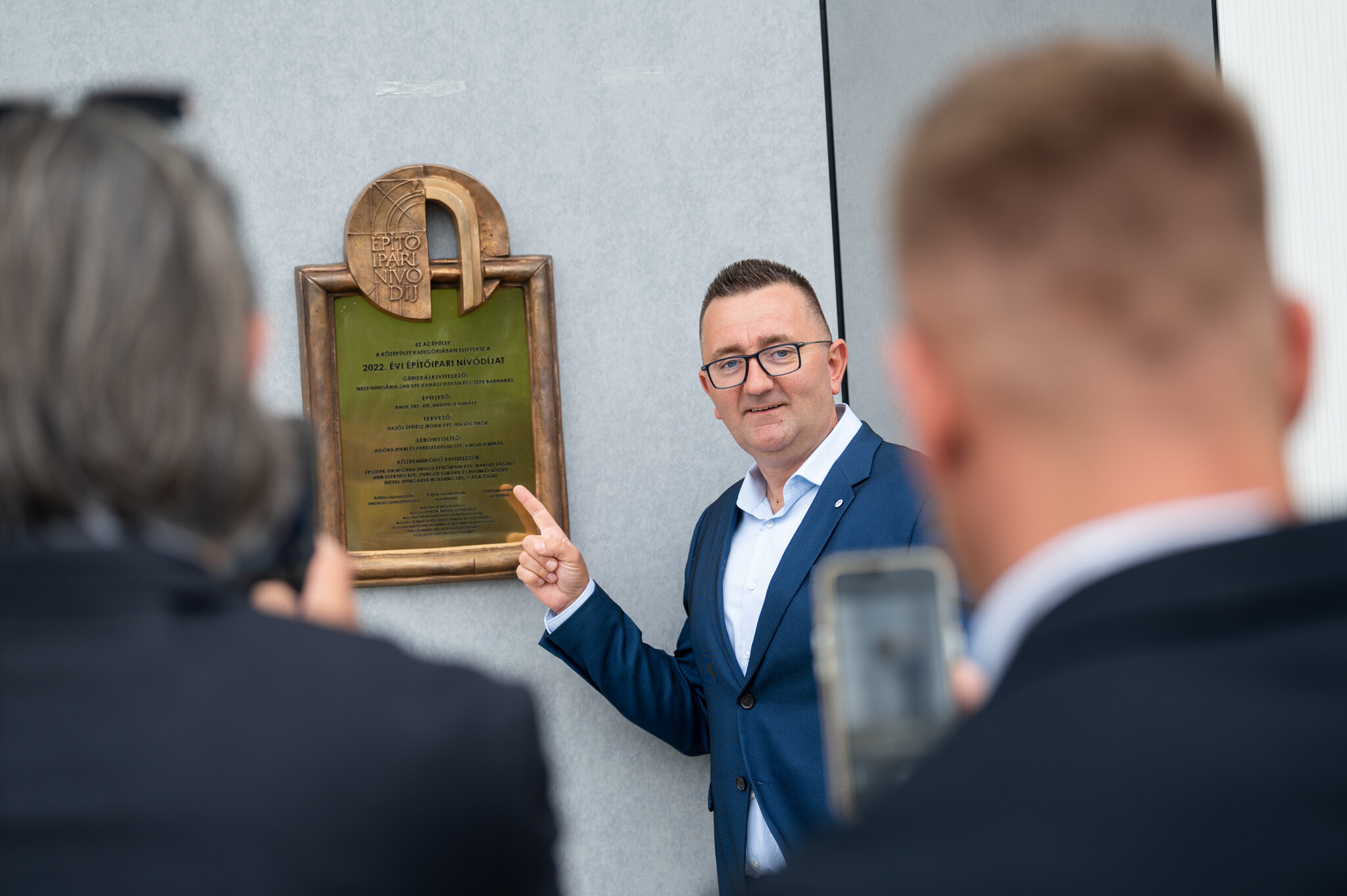 Arról is beszámoltunk, hogy a komplexum a 2022-es év végén megkapta a hazai építőipari szakma legnagyobb elismerését, az Építőipari Nívódíjat. Ahogyan az ágazat hagyományai előírják, a díjat elnyert építményekre a következő évben felkerül egy ünnepélyes ceremónia keretében a kiemelkedő színvonalukat jelző dísztábla, ezt avatták fel június 28-án Szegeden.