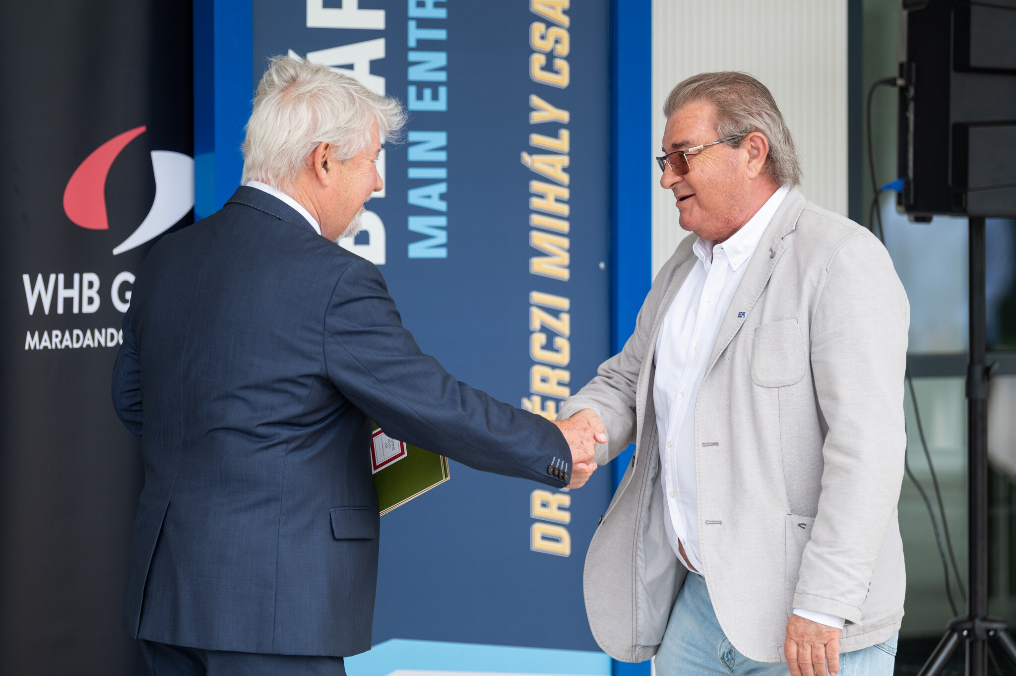 Rámutatott: voltak olyan napok, hogy mintegy 500-600 munkatárs dolgozott egyszerre a projekten – ennek és a közel 25-30 fő WHB-s kolléga áldozatos munkájának köszönhetően tudták ilyen rövid határidővel, de mégis olyan építészeti és kivitelezési minőségben megvalósítani a komplexumot, amely méltó a WHB szlogenjére: „MARADANDÓT ALKOTUNK”