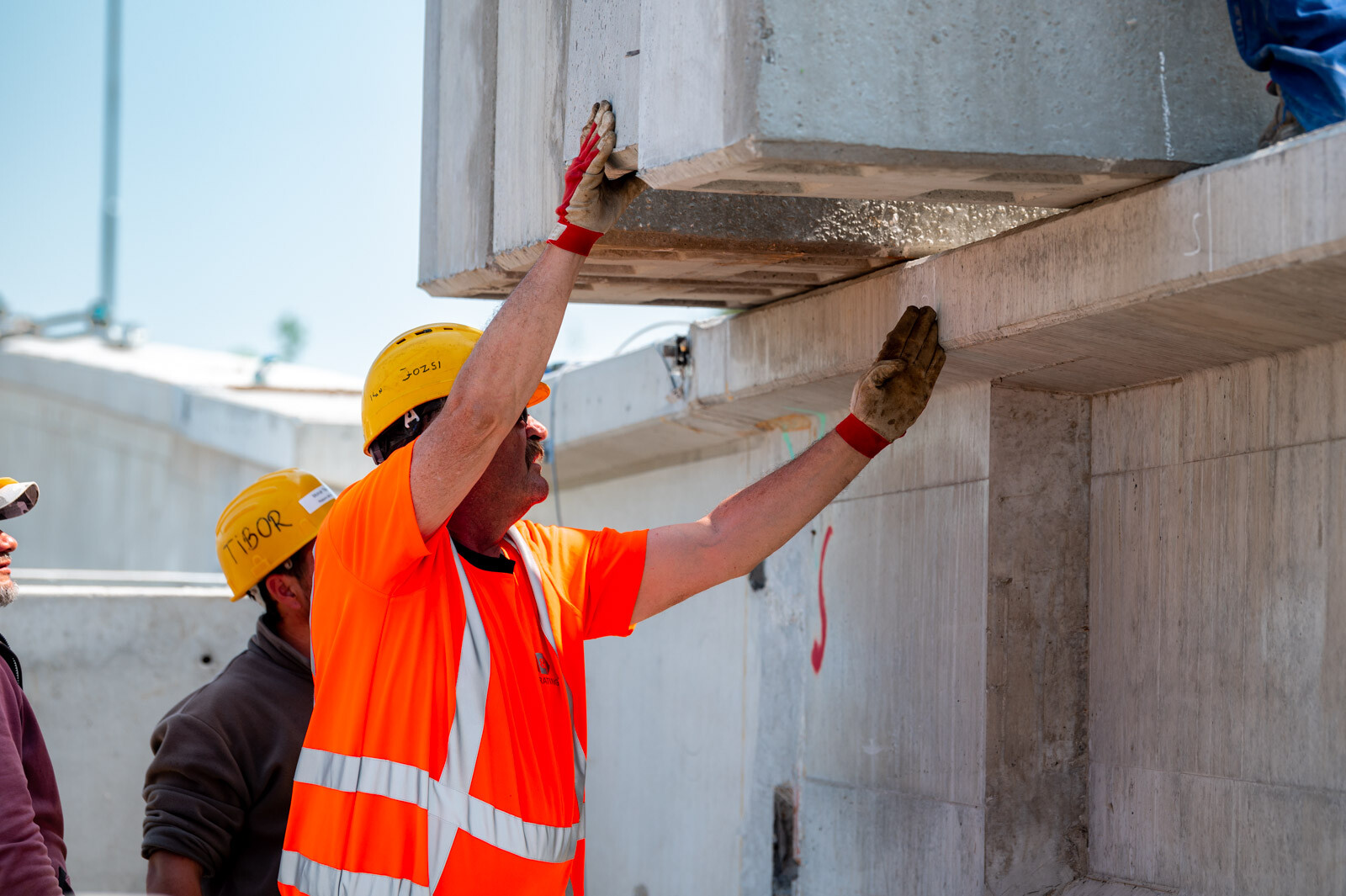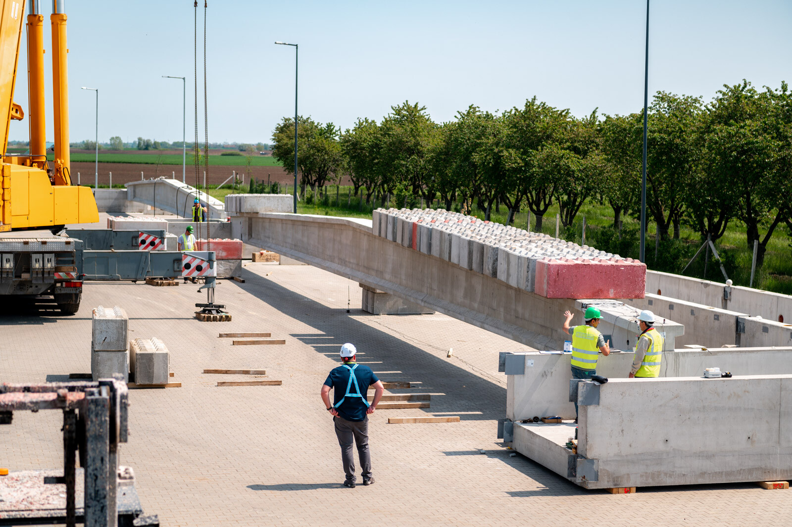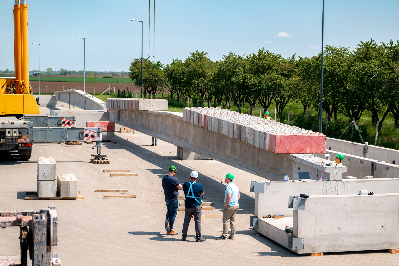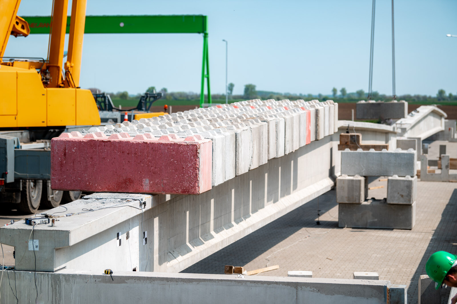 „Ekkor a PREbeton Zrt. a Murobau Kft. szakembereivel karöltve szerelvényekkel toldott feszített vasbeton gerendák gyártása mellett döntött. Ezzel a megoldással a gerenda hosszánál rövidebb feszítőpadokat is be tudtak vonni a gyártásba, jelentősen lerövidítve ezzel a kivitelezési időt.”