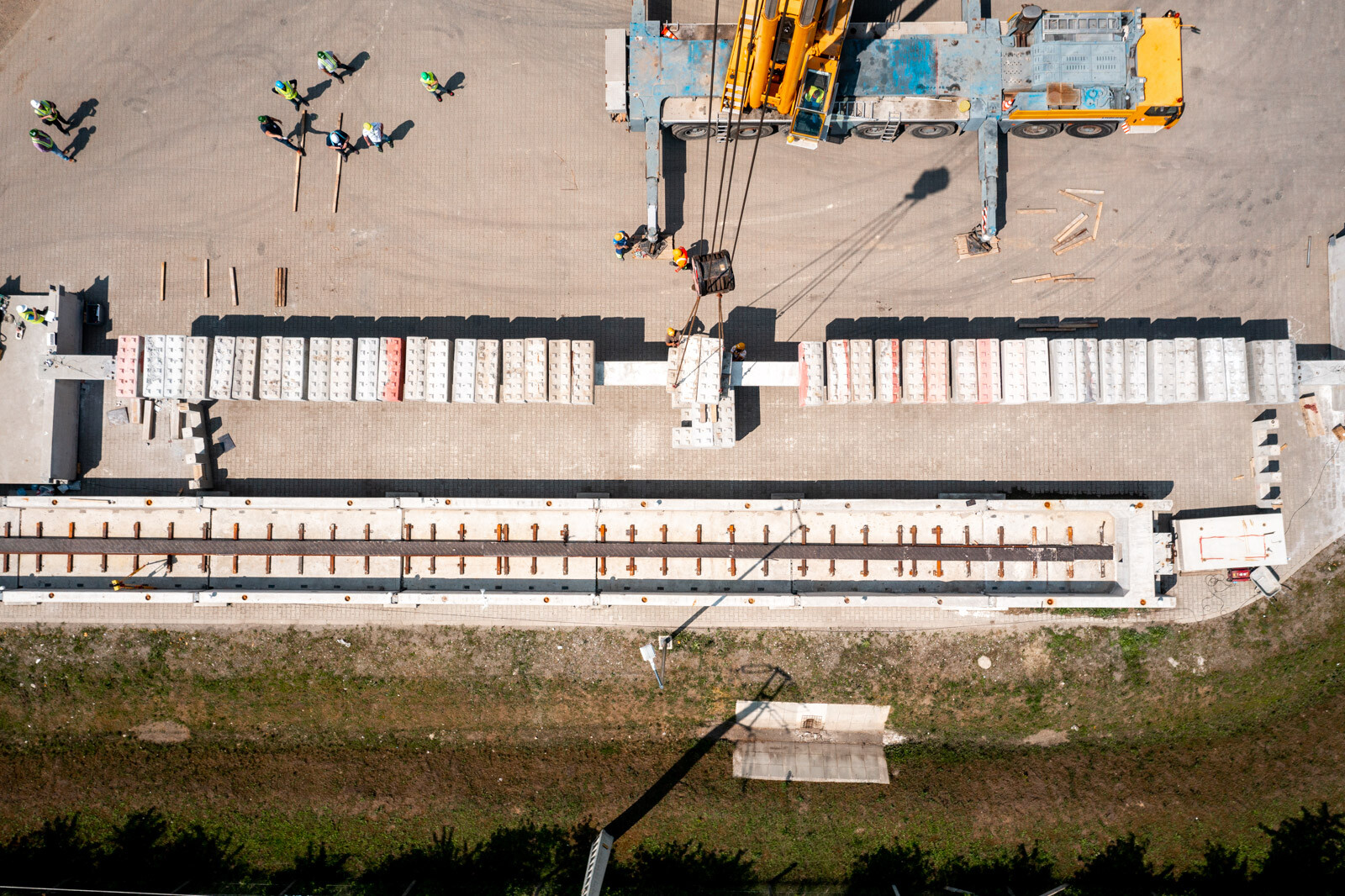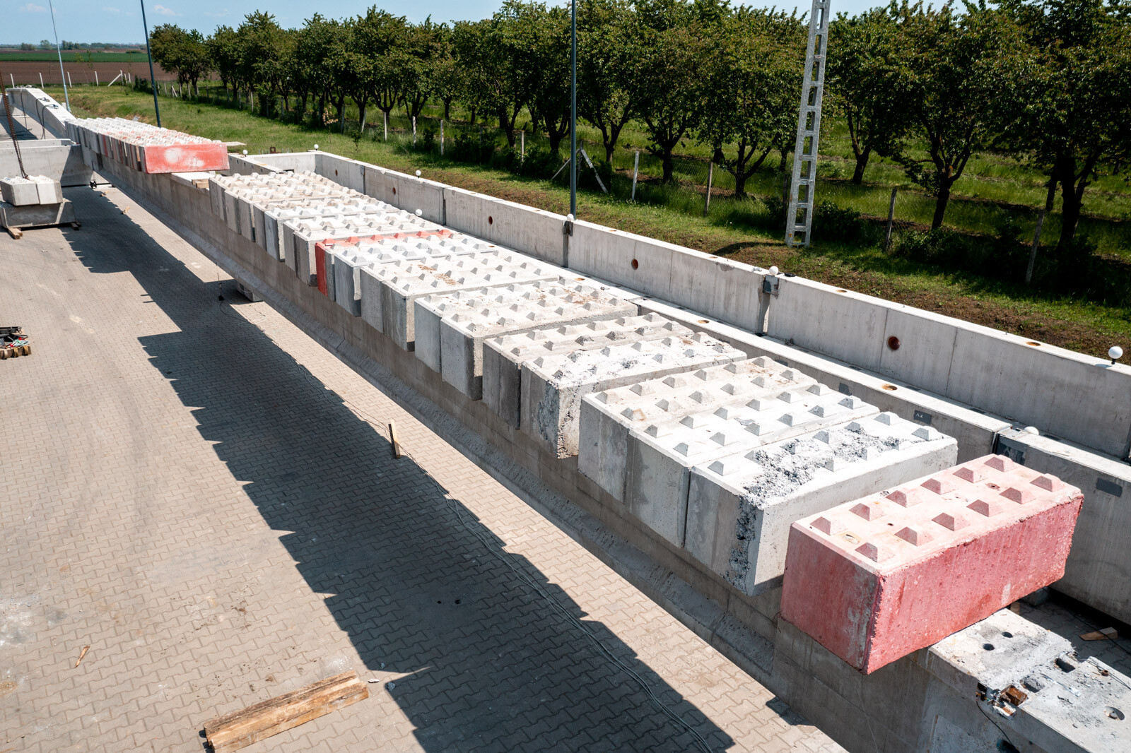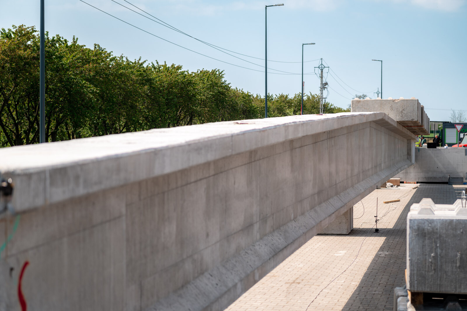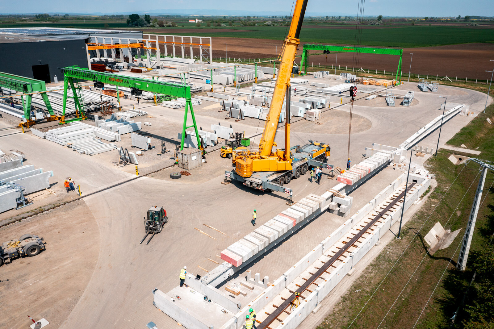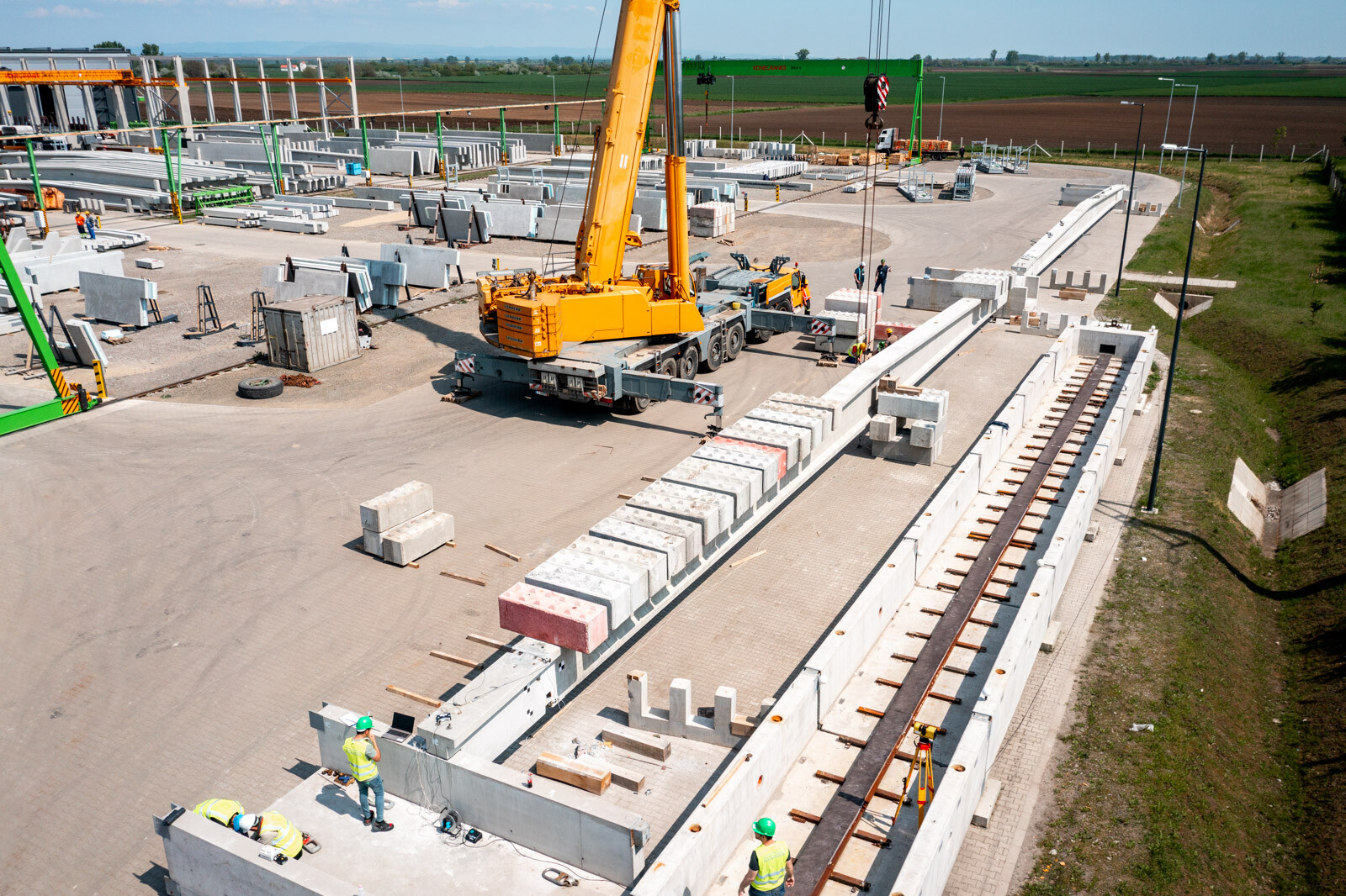 „Ekkor a PREbeton Zrt. a Murobau Kft. szakembereivel karöltve szerelvényekkel toldott feszített vasbeton gerendák gyártása mellett döntött. Ezzel a megoldással a gerenda hosszánál rövidebb feszítőpadokat is be tudtak vonni a gyártásba, jelentősen lerövidítve ezzel a kivitelezési időt.”