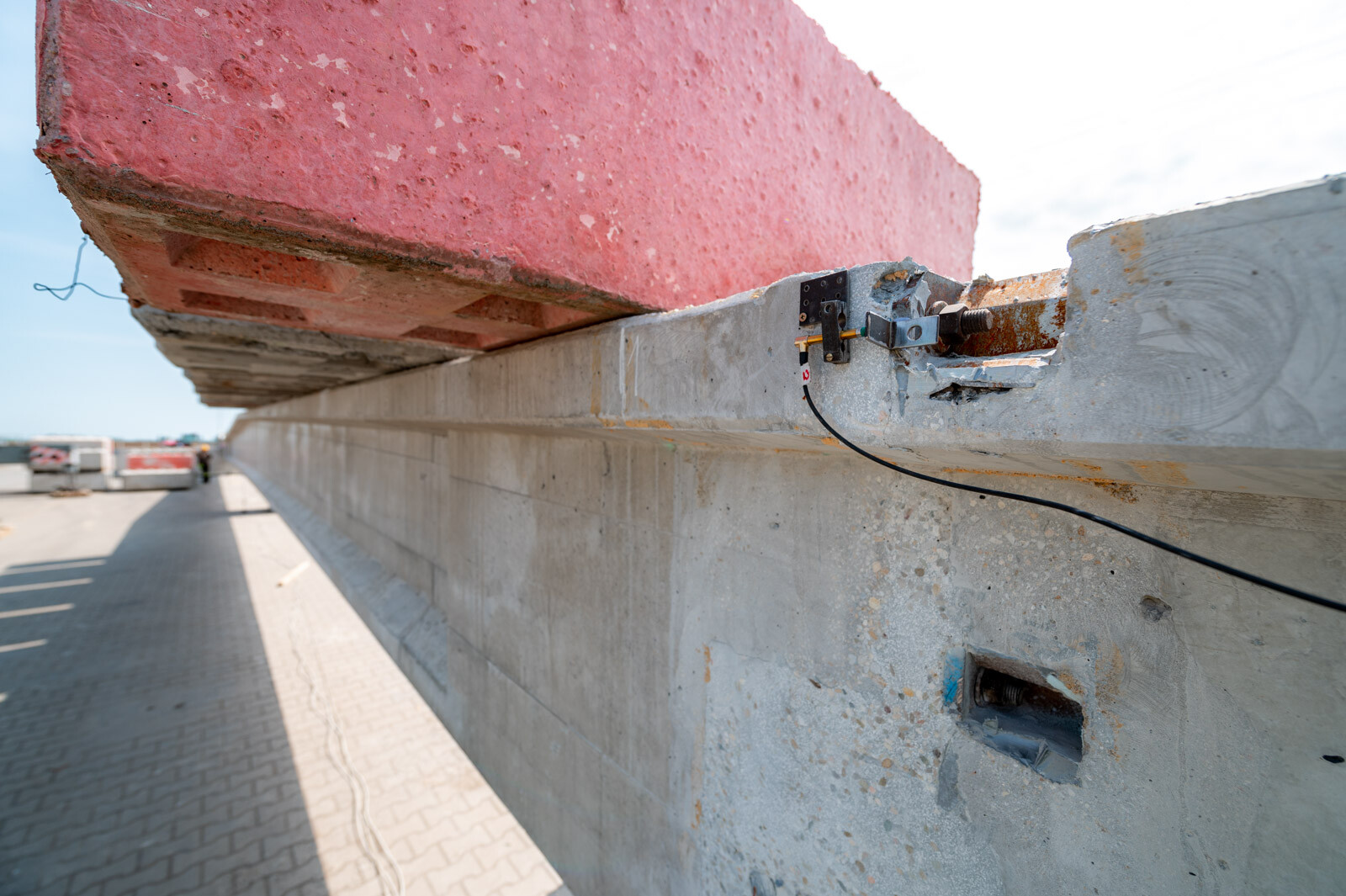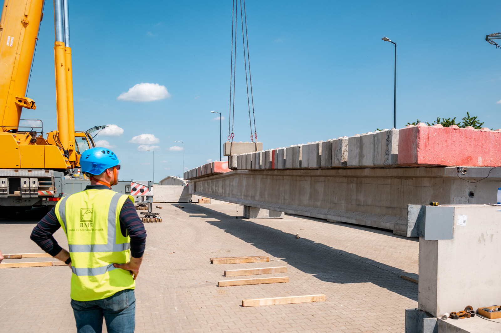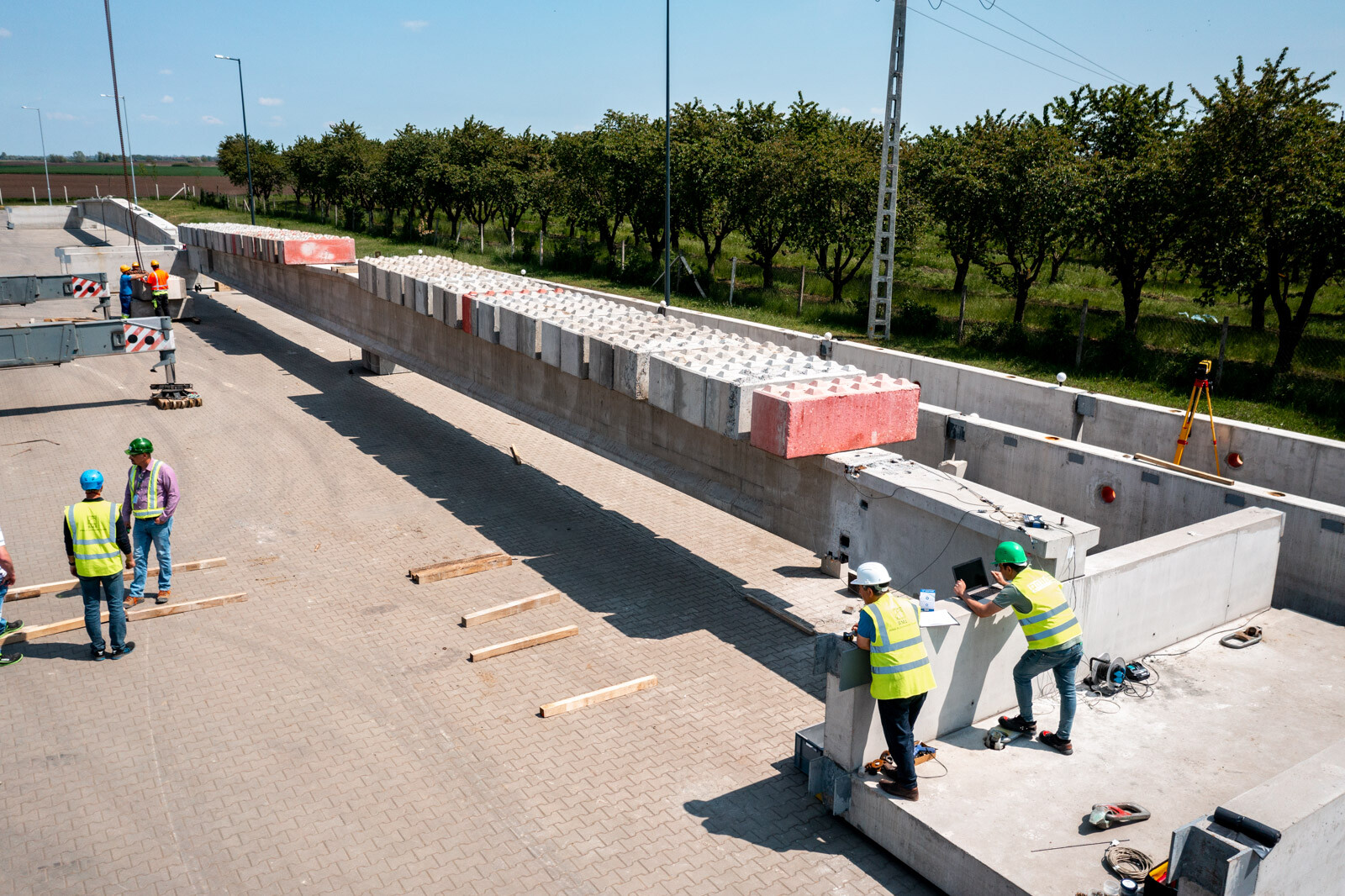 Ennek során összesen közel 30 köbméter betont és 6.100 kilogramm betonacélt használtunk fel. A látványos kísérletek sikeres lebonyolítását két targonca, egy 400 tonnás emelőkapacitású autódaru, valamint súlyelemként 44 darab másfél tonnás betonhasáb segítette. A kísérlethez a felfekvéseket biztosító betonelemekre is szükség volt.”