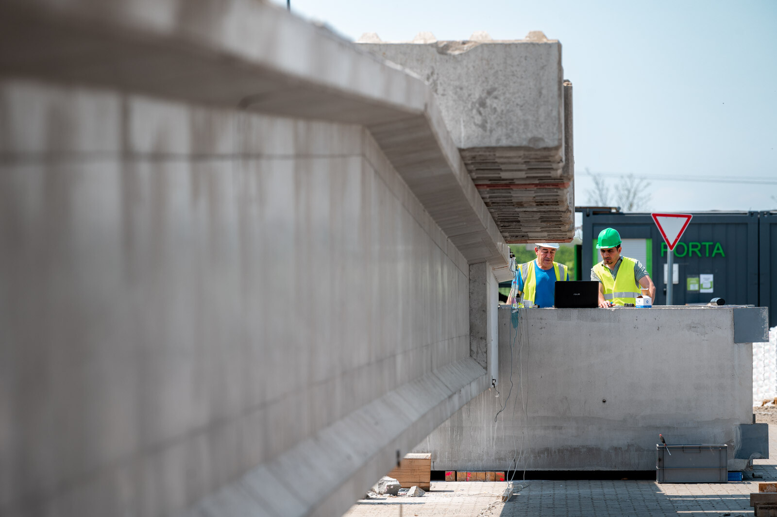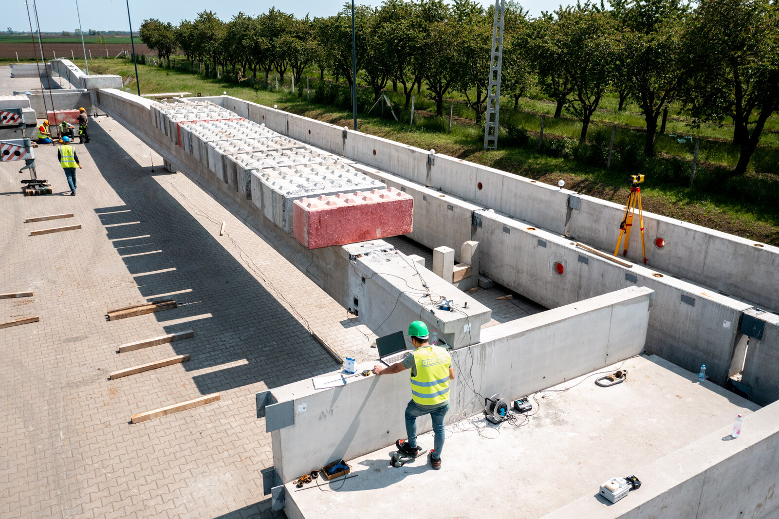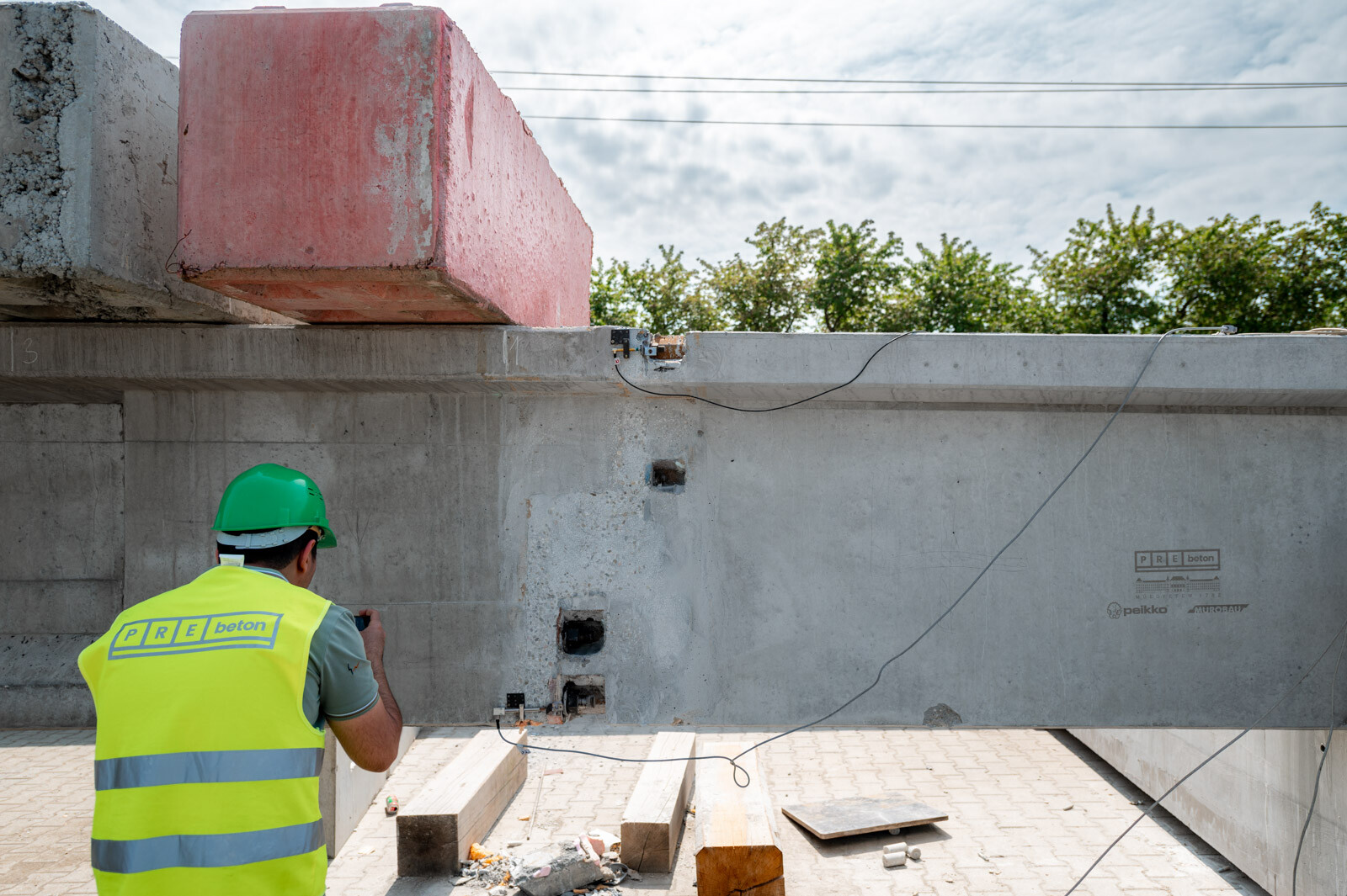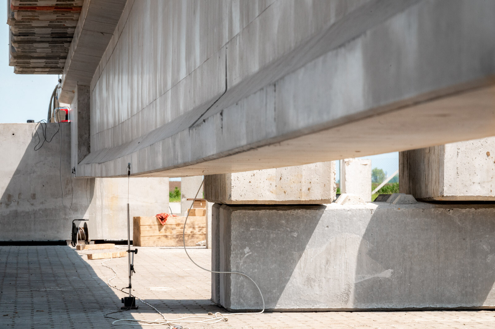 A vizsgálatokhoz szükséges előregyártott vasbeton gerendák teljeskörű gyártása és a telephelyi mérőhelyszín elkészítése mellett a PREbeton vállalta a vizsgálati elemek összeállítását, illetve a vizsgálat folyamán az állandó műszaki és fizikai jelenlétet is. „Emellett a szükséges eszköz- és géppark biztosítása, valamint az elemek utólagos megsemmisítése is a mi feladatunk volt.