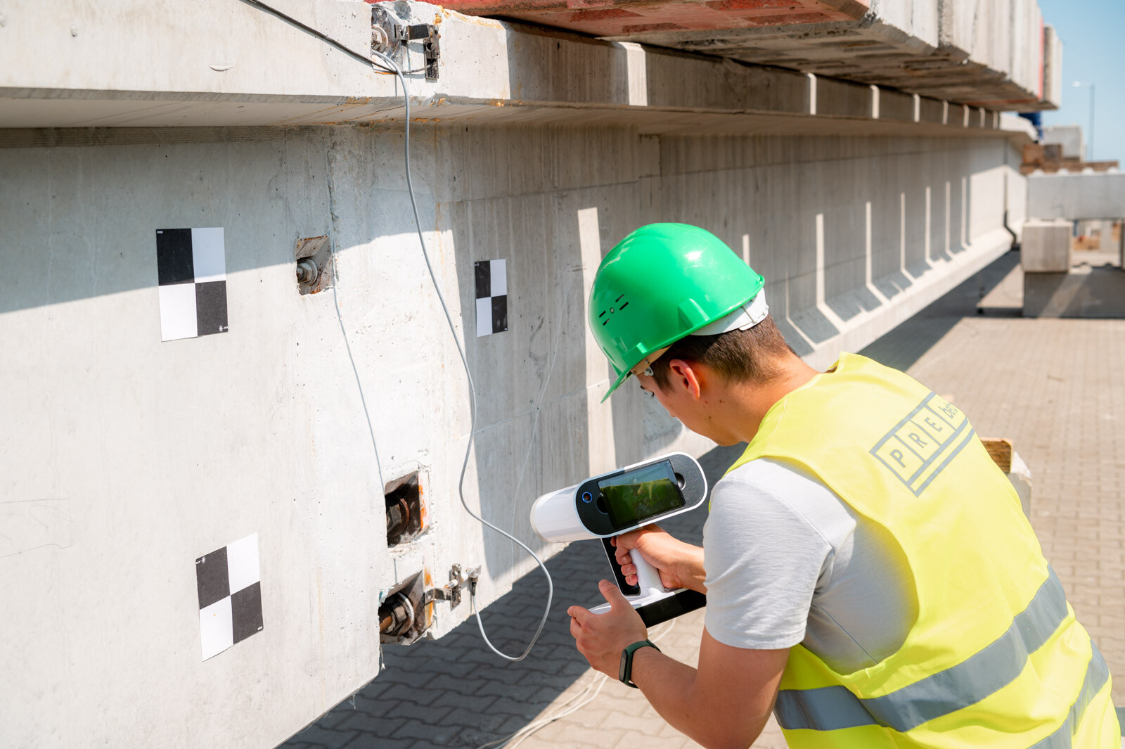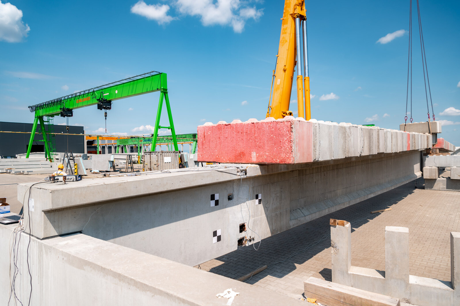 Az együttműködés keretében a PREbeton a BME részére felajánlotta további terheléses vizsgálatokhoz a debreceni ipari csarnokhoz készített, három darabból összeállítható, 39 méteres feszített gerendákat. „A továbbiakban vállaltuk, hogy legyártjuk a vizsgálatokhoz még szükséges elemeket, és az erdőtelki üzemterületen biztosítjuk a vizsgálat helyszínét és feltételeit” – árulta el a műszaki vezérigazgató-helyettes.