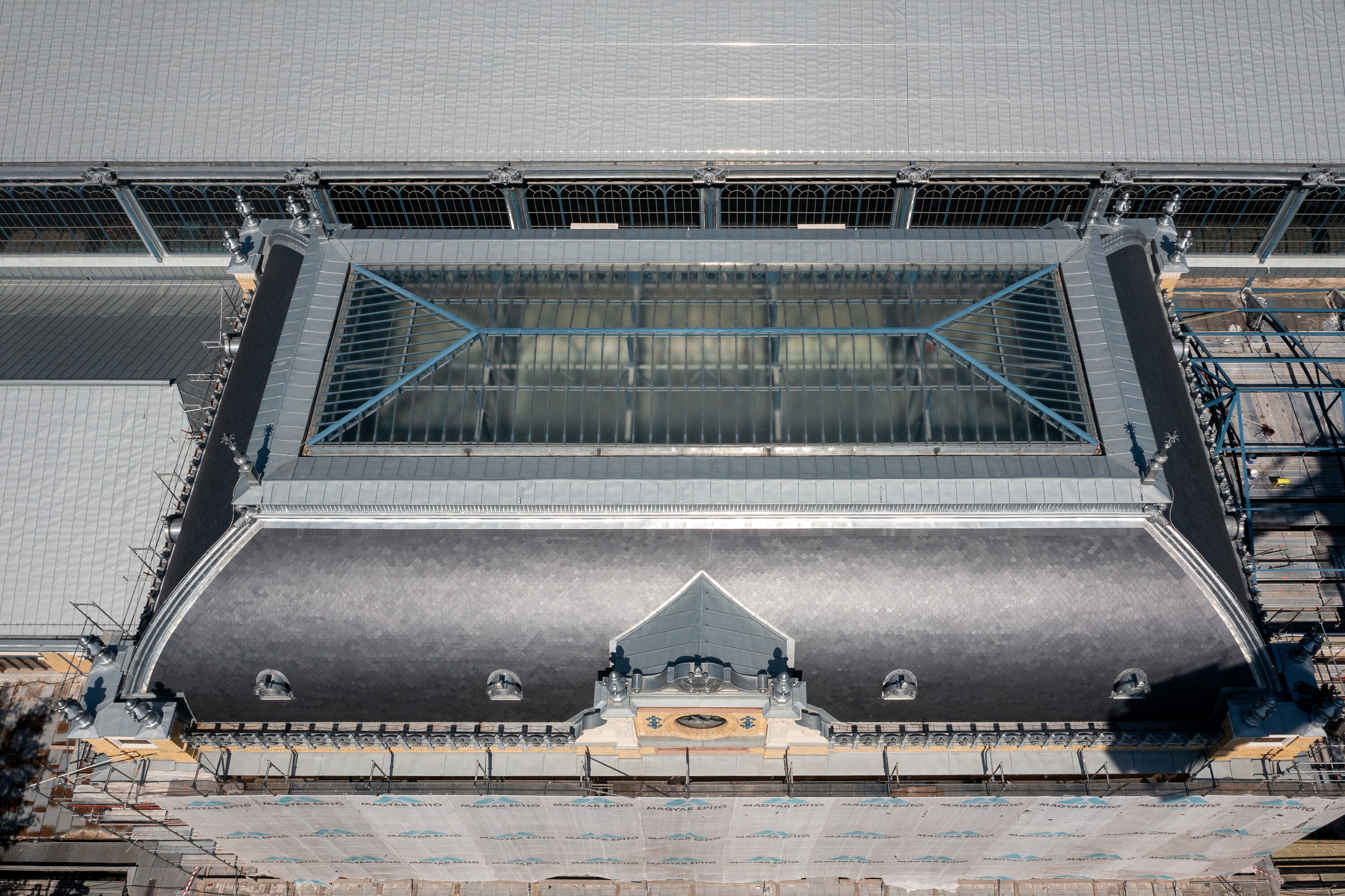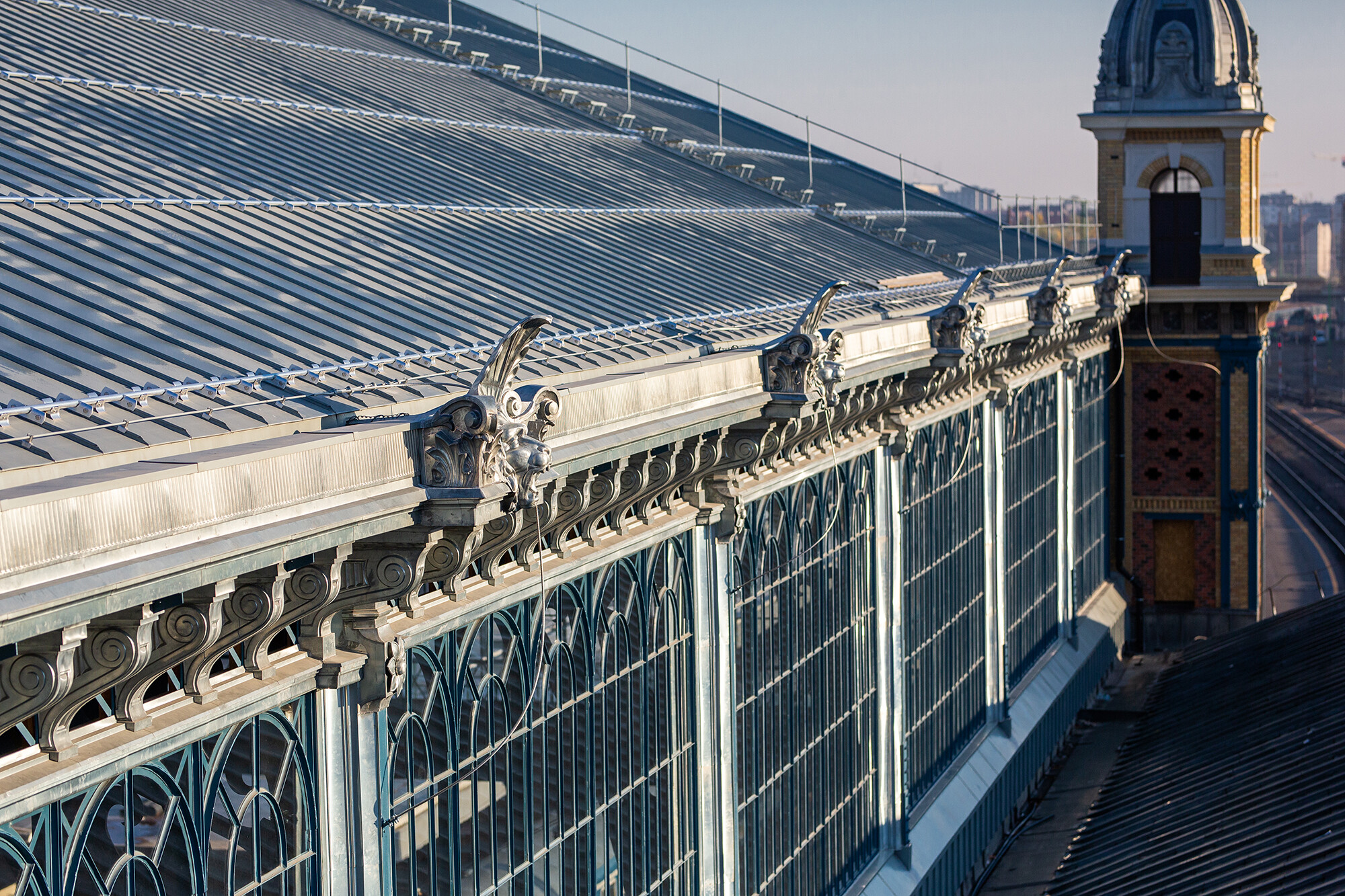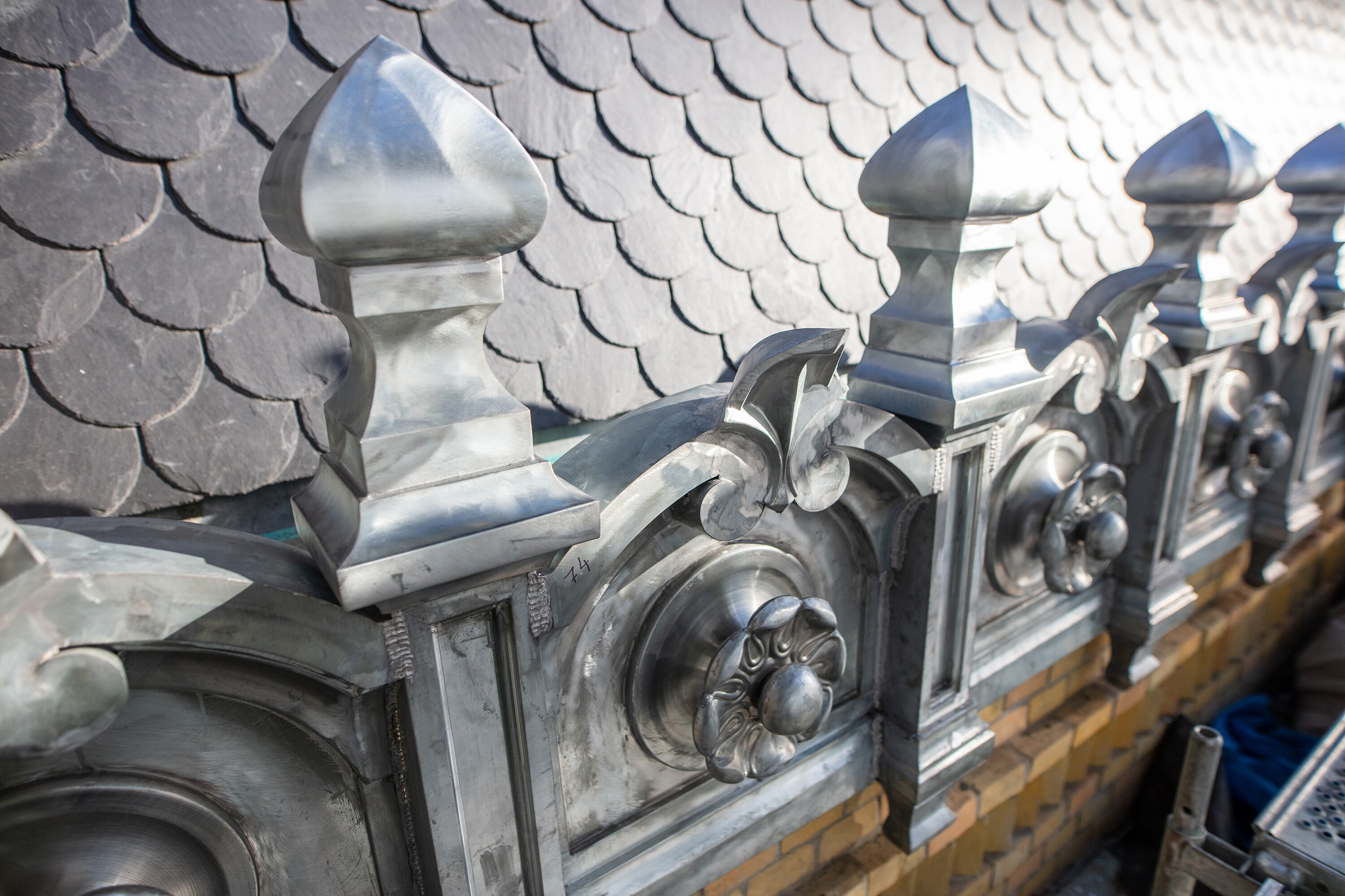 A díszműbádogos feladatokat alvállalkozóként a HOREX Kft. végezte el. Korábban Magyar Építő Zrt. társaságában exkluzív betekintés nyerhettünk a vállalat műhelyébe, ahol bemutatták a Nyugati pályaudvar egyik legfontosabb kézműves projektelemeinek megújítási folyamatait.