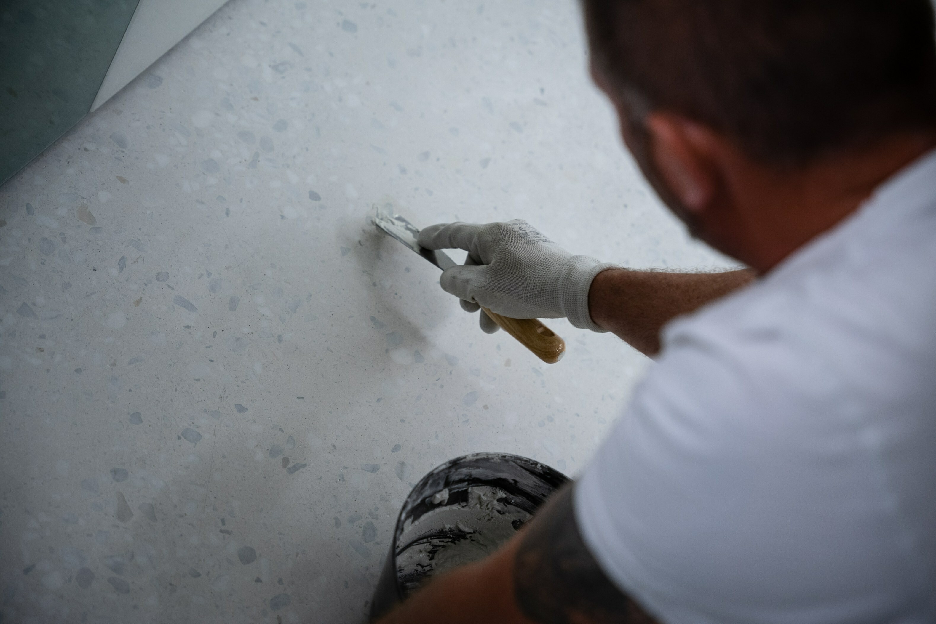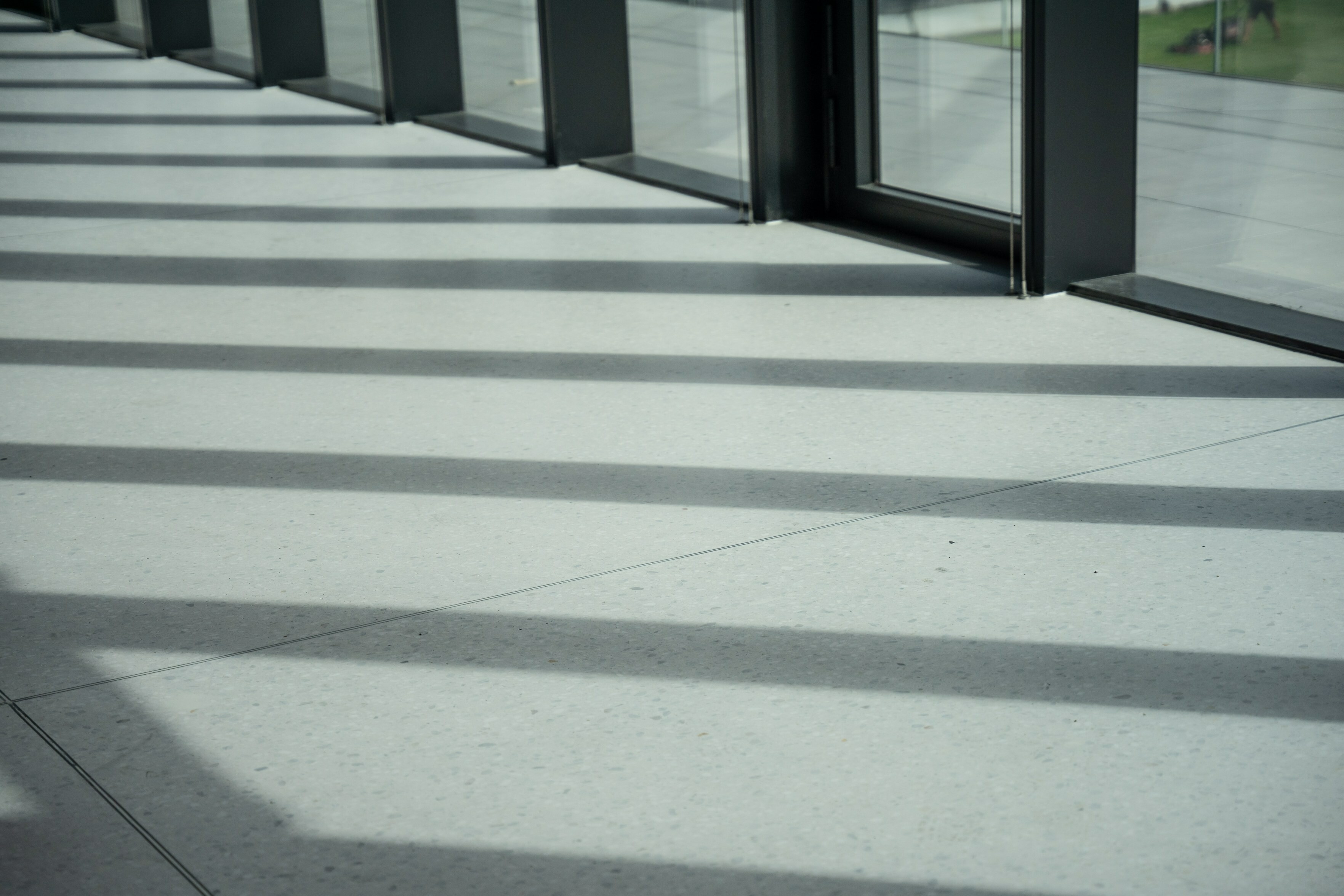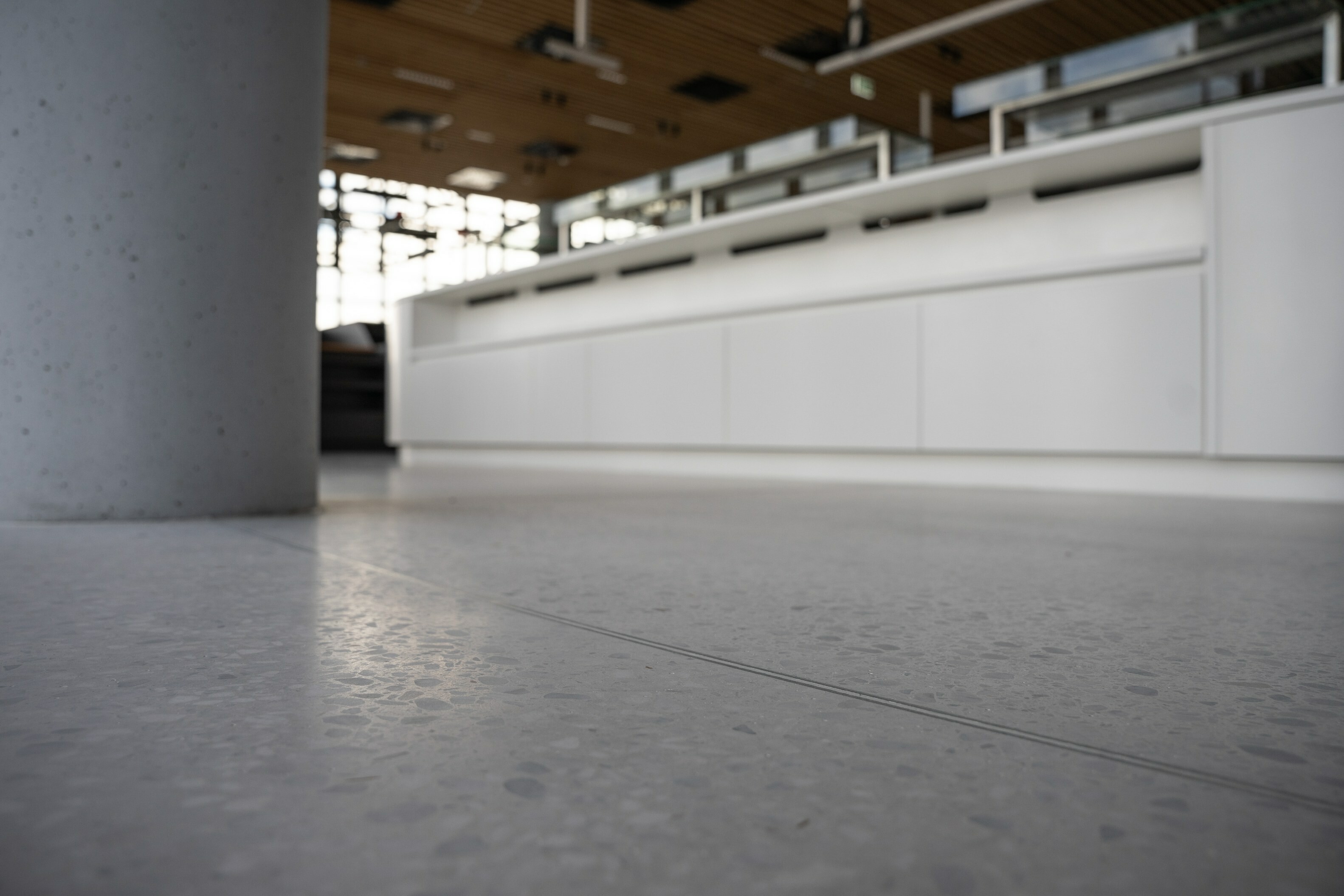 Terrazzo: Primer SN, Ultratop Extra White, Mapefloor I302SL, Mapefloor PU410, Mapecrete Stain Protection