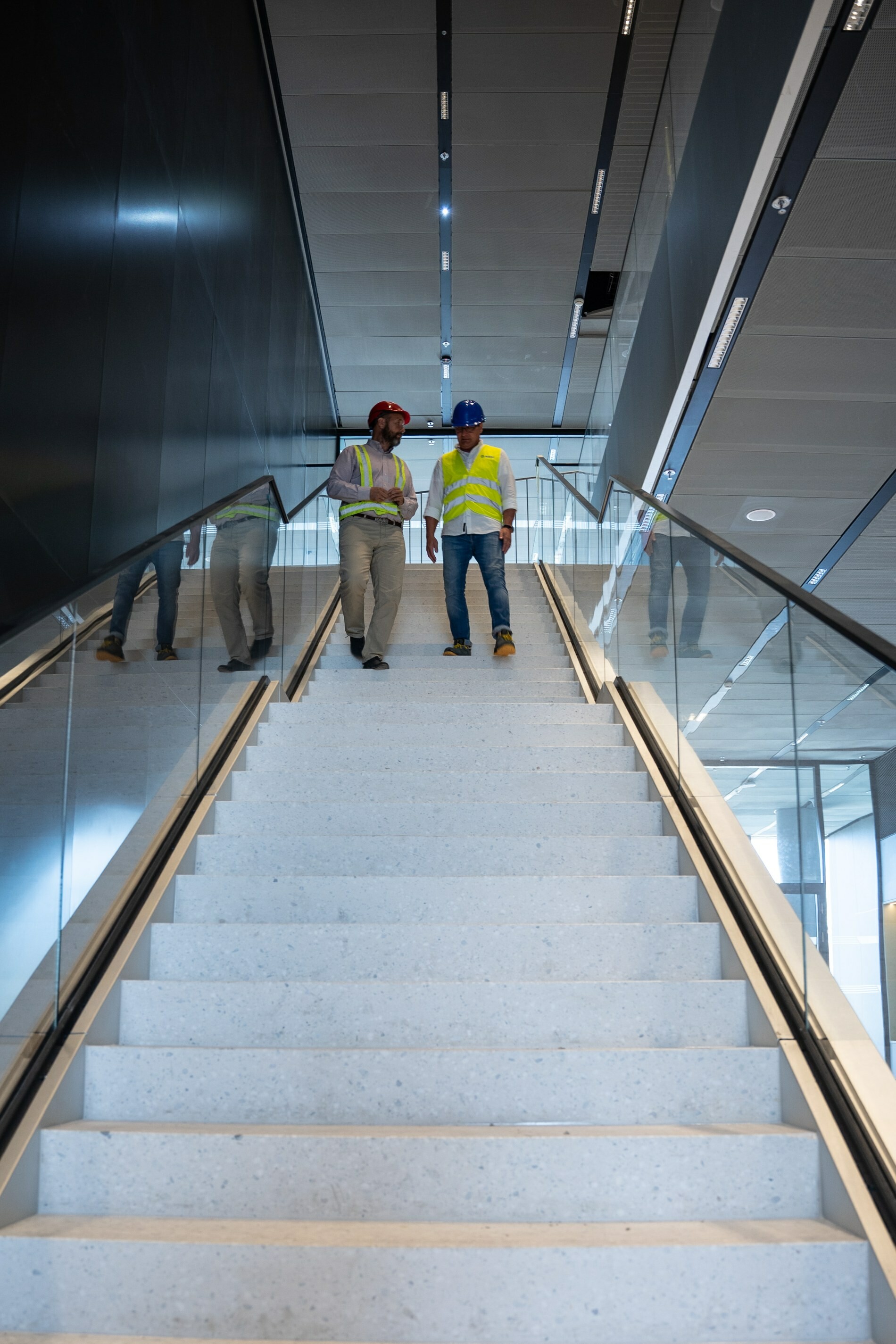 V.Z.: Én két dolgot szerettem benne. A lépcső egy nagyon különleges mutatvány volt. A másik, hogy a megrendelő szeretett volna egy logót látni a felületben, fém és ezüstszínben. Kellett találni két olyan fémet, ami jól csiszolható és bírja a csiszolás hőjét, valamint messziről értékelhetően eltérő színű, mindezt terrazzo-ba beépíteni. Össze kellett tudni úgy csiszolni egy kemény fémet, egy lágyabb terrazzo anyaggal, hogy az síkban folytonos legyen ...ez egy nagyon nehéz feladat volt.