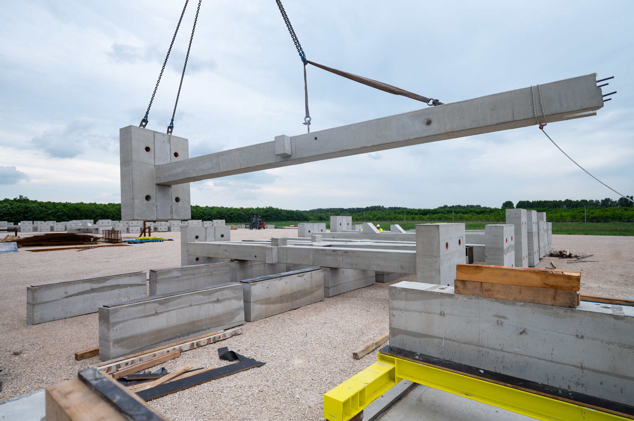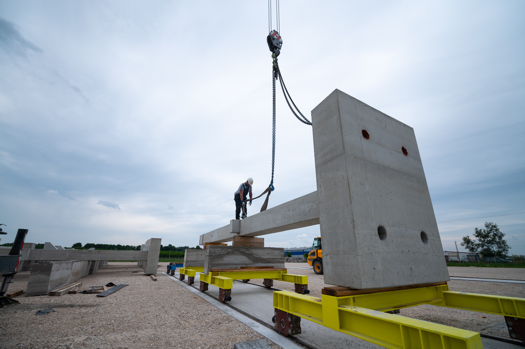 Az előregyártás újabb kérdéskörét megvizsgálva a talpas és a hagyományos pillérek alkalmazásának előnyeiről beszélgettünk az INETON Kft. gyártmánytervezési csoportvezetőjével. Szerencsés-Aranyos Donát a kétféle csoport legfőbb különbségeként azt emelte ki, hogy a talpas pillért már a gyárban összeszerelik a pontalappal. „Így nem kell helyszíni betonozást végezni, csak a szerelő betonozást, amit aláöntéssel véglegessé lehet tenni” – árulta el a szakember. A hagyományos pillérnél ugyanakkor technológiától is függ a helyszíni munka. „Magyarországon a kehelynyakas maegoldás az elterjedt, de használnak csavarozott kapcsolatokat, úgynevezett oszloppapucsokat is.” Hangsúlyozta, az INETON a fenti megoldások mindegyikét képes alkalmazni, annak függvényében, hogy adott projekthez és épülethez mi a legoptimálisabb.