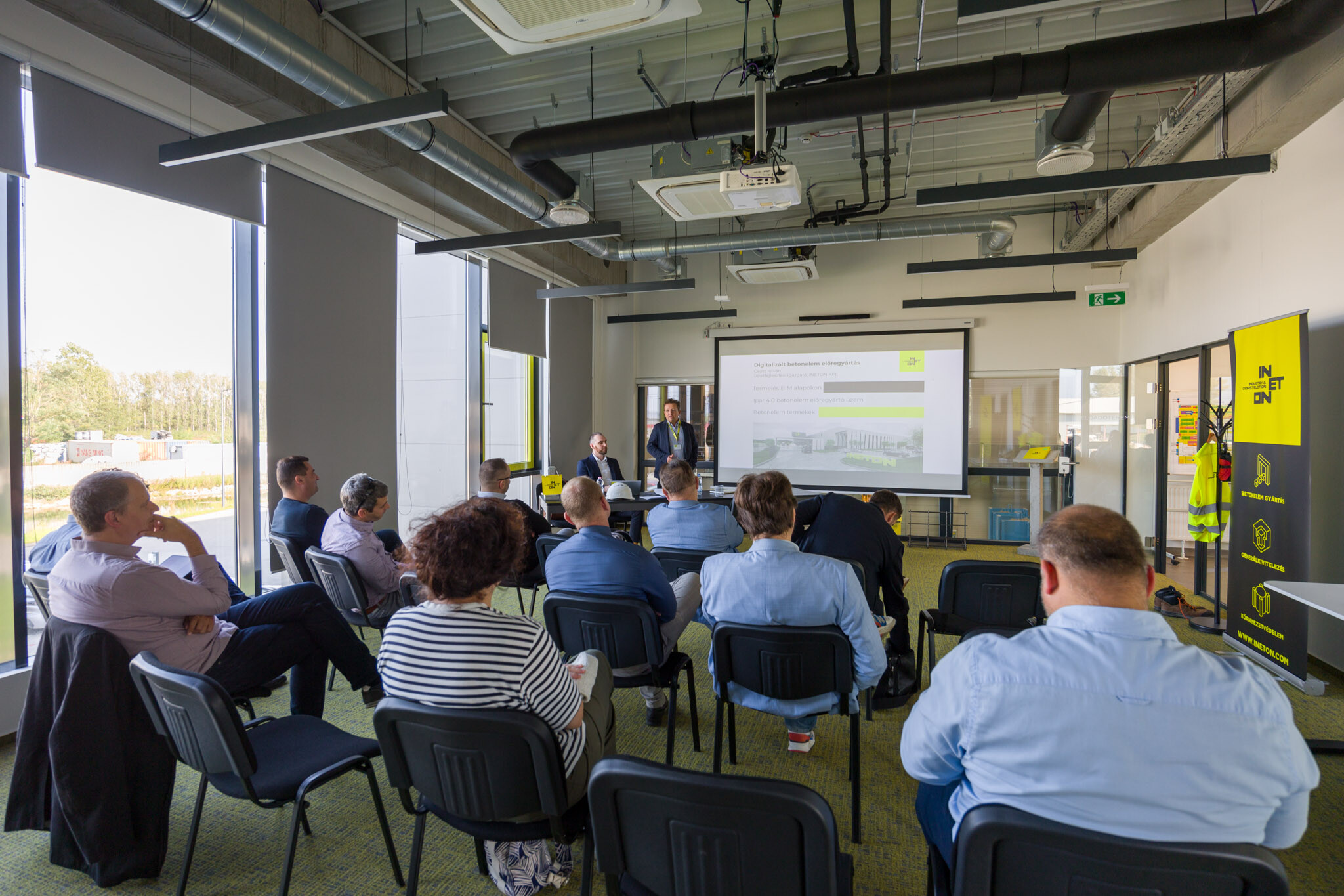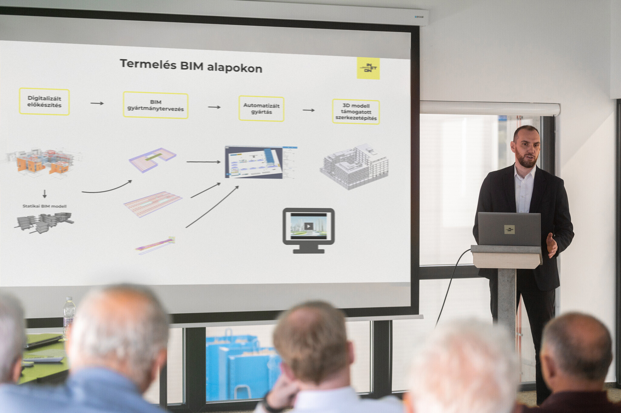 A szakmai nap során elnyerhető pluszt a vezető így fogalmazta meg: „A résztvevők megismerhetik a BIM alapú termelésnek a működését. Ez a projekt legelején elindul az INETON-nál: már az ajánlatokat is egy BIM-modell segítségével készítjük el, és ez alapján árazunk. Ezt a BIM alapú gyártmánytervezést ismerhetik meg a mérnökök, megnézhetik azokat a gyártmányterveket, amelyeket digitális úton, közvetlenül átadhatunk egy gépnek, anélkül, hogy kinyomtatnánk. A gép pedig ez alapján végzi el a zsaluzást, és ez alapján történik meg az acélfeldolgozás, továbbá a BIM-modell információi alapján valósul meg a betonkeverés is.”