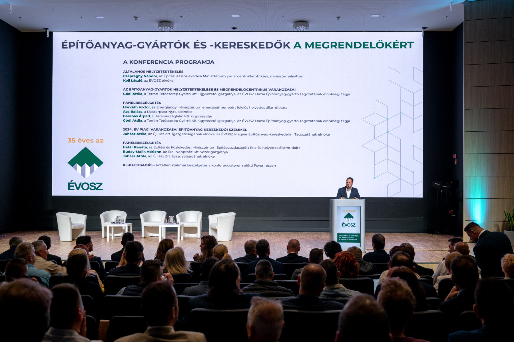 A konferenciát megnyitó beszédében Kincses Péter, az ÉVOSZ Médiatagozatának elnöke kihangsúlyozta: az eseményen a hazai építőanyag-gyártók és építőanyag-kereskedők legkurrensebb szereplői gyűltek össze és az ágazat legaktuálisabb kérdéseit, illetve kihívásait tárgyalják meg. Hangsúlyozta: a résztvevők a legmodernebb technológiákat alkalmazzák és az innováció élén járnak, ezért kulcsfontosságúak az építőipar fejlődésében és versenyképességében.
