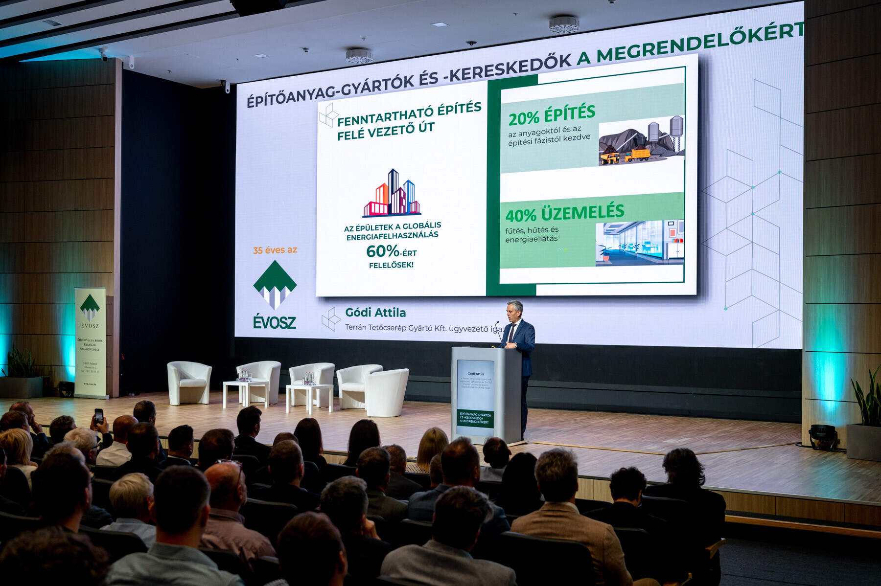 Ezt követően Gódi Attila, a Terrán Tetőcserép Gyártó Kft. ügyvezető igazgatója, az ÉVOSZ Hazai Építőanyag-gyártó Tagozatának elnökségi tagja pozitív helyzetet vázolt fel: az építési termékek, anyagok európai minőségben rendelkezésre állnak Magyarországon, a kereskedelmi csatorna és a disztribúciós struktúra felkészült a piac indulására. Mint mondta: az árak kedvezőek, ezen kívül mind a tervezői mind a kivitelezői háttér biztosított. A támogatások elérhetőek, a banki háttér is elfogadható költségszinten kínálja a finanszírozási forrásokat.