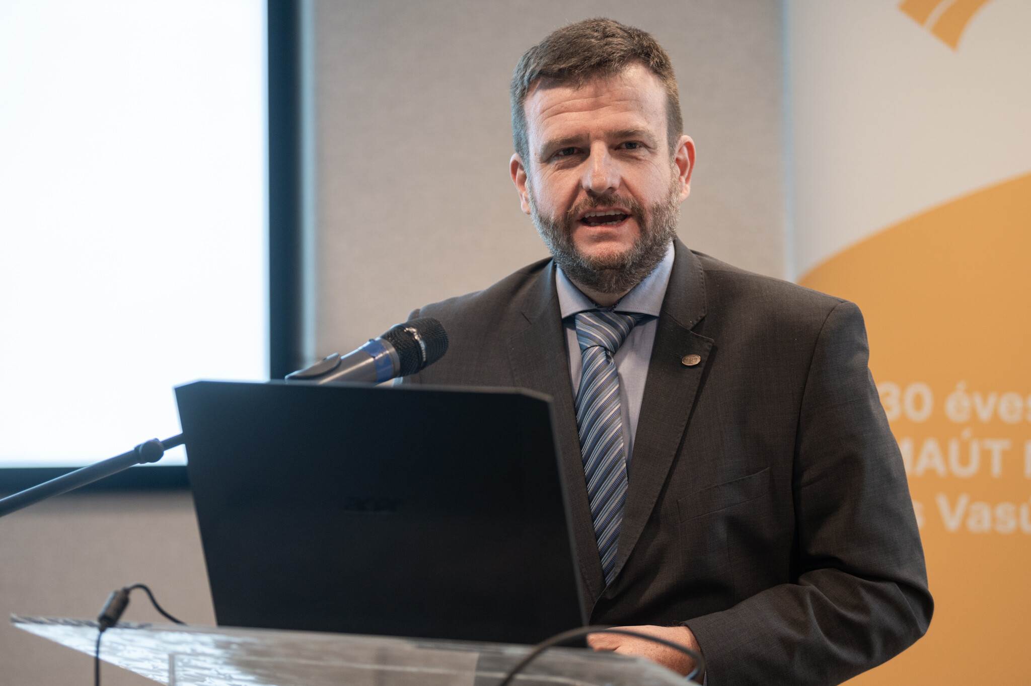 A díjátadások és a magas színvonalú előadások után Dr. Kerékgyártó János közlekedési hatósági ügyekért felelős helyettes államtitkár (ÉKM) a közlekedési hatósági feladatok aktualitásairól beszélt.